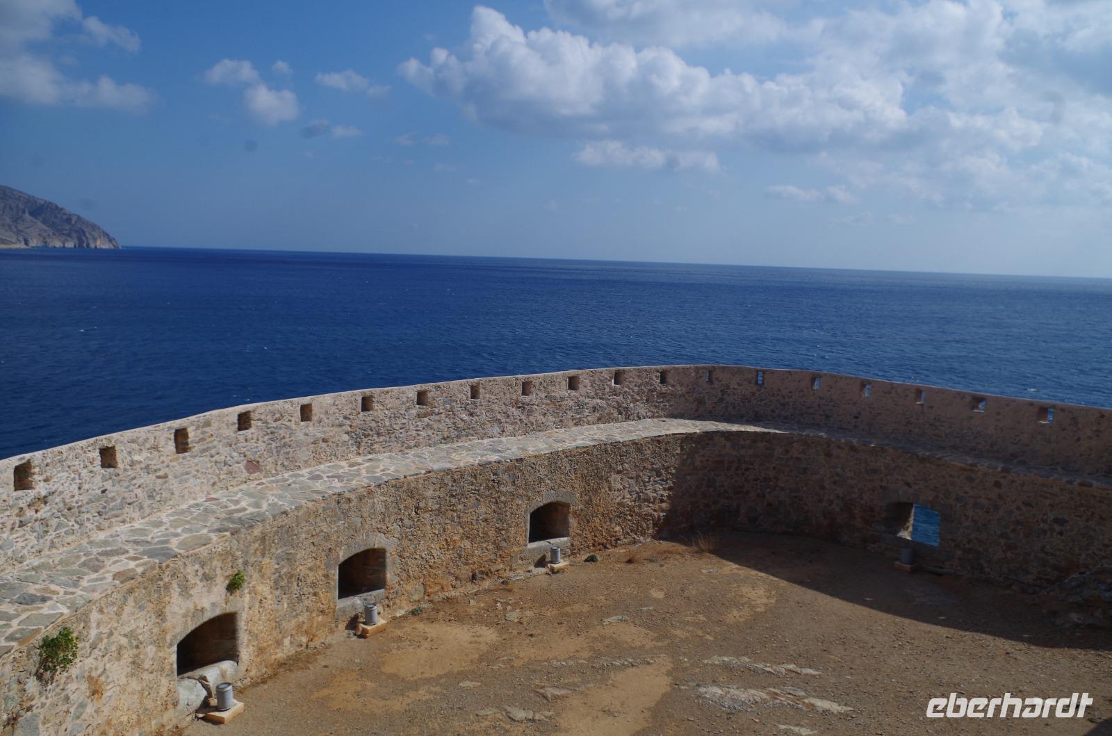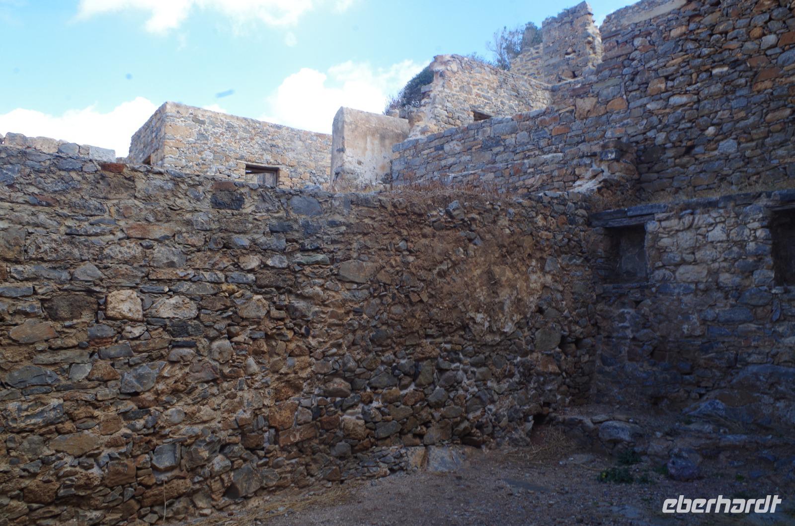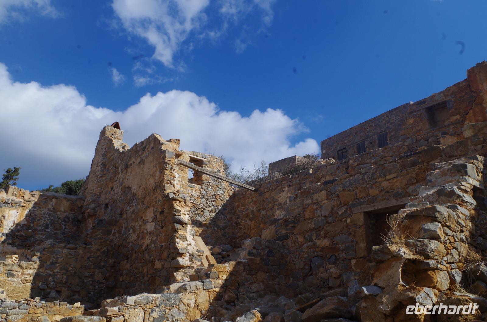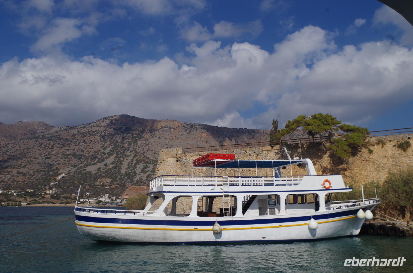 Nach dem Frühstück machten wir uns heute auf den Weg zur Insel Spinalonga. Mit dem Bus fuhren wir nach Elounda und stiegen dort gemeinsam mit der anderen Eberhardt Gruppe auf das Schiff. Die Fahrt dauert nicht lang, im Nu erreichten wir die Insel Spinalonga. Im 16. Jahrhundert erbauten die Venezianer dort eine Burg, später waren die Osmanen vorherrschend und von 1903-1957 lebten dort etwa 2.000 Leprakranke. Sie waren dort isoliert von der Außenwelt, um niemanden anzustecken. Wer einmal auf der Insel war, durfte nie wieder zurück, bis 1957 endlich ein Heilmittel entwickelt wurde und auch die letzte Leprakolonie Europas auch sein Ende fand. Auf unserer Rückfahrt mit dem Schiff drehten wir noch einmal eine Runde um Spinalonga, das Wasser war glasklar und glitzerte im Sonnenschein.