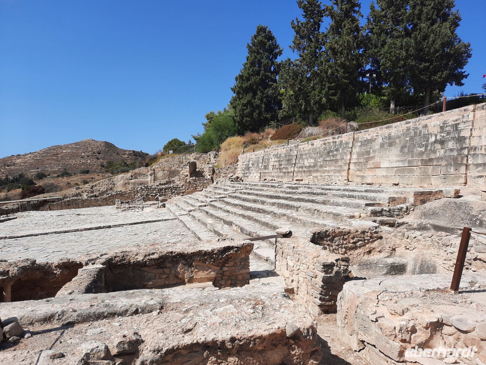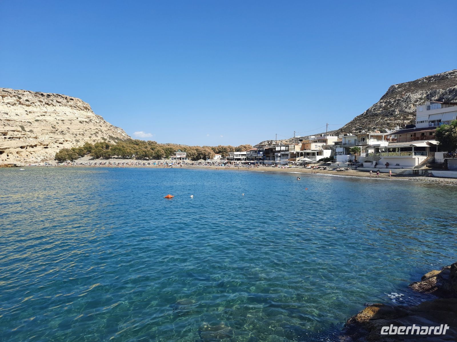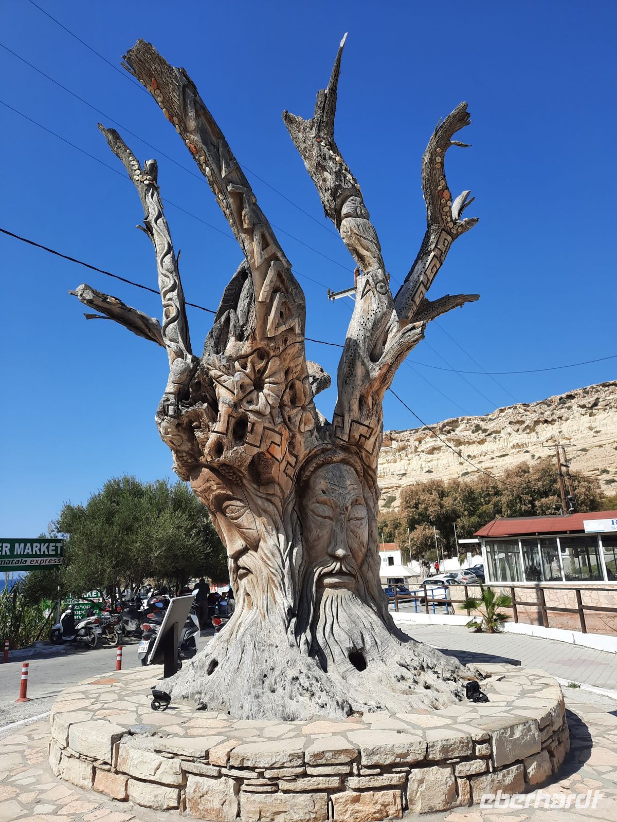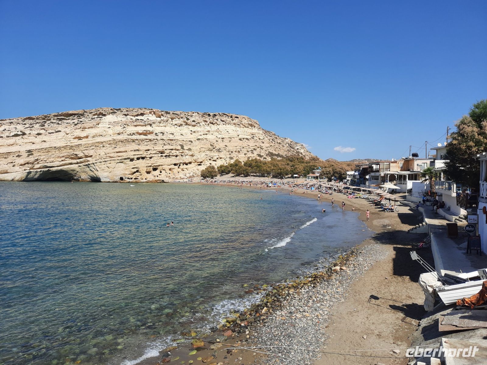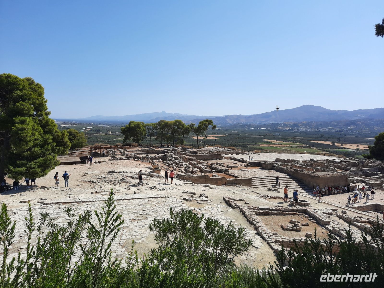 Immer die imposanten Gipfel des Ida-Gebirges und den schlafenden Zeus im Blick, fuhren wir heute in Richtung Süden. Am Dorf Agia Varvara, der Heiligen Barbara vorbei, passierten wir gleichzeitig auch den Mittelpunkt Kretas. Es ist auch das längste Dorf der Insel und für den Kirschanbau bekannt. Die sich anschließende Messara-Ebene liegt zwischen Ida- und Asterousia-Gebirge und wird hauptsächlich für den Getreide- und Gemüseanbau genutzt. In dieser fruchtbaren Tiefebene liegt auch die antike Stadt Gortys, einst kretische Hauptstadt in der Römerzeit. Im römisch-hellenistischen Odeon ist der älteste Gesetzeskodex Europas zu sehen. Imposant auch die Titus-Basilika, des ersten Bischofs von Kreta. Nach dieser eindrucksvollen Besichtigung fuhren wir zum nur wenige Kilometer entfernten hochmodernen Weingut "Zacharioudakis", welches sich seit dem Jahr 2000 auf dem 500 Meter hohen Hügel des Orthi Petra befindet. Genau hier an dieser Stelle, so erfuhren wir, werden die rein kretischen Rebsorten wie die rote Rebe "Kotsifali“ und die weißen Reben "Vidianó", "Vilana" und "Malvazia di Candia" angebaut. Die Weine reifen in einer hohen Qualität und dazu trägt in erster Linie auch das wunderbare kretische Klima mit vielen Sonnenstunden und wenig Regen bei. Bei einer kleinen Weinverkostung konnten wir uns von der wunderbaren Qualität überzeugen. Ein kleines Stück weiter liegt auf einem kleinen Plateau der Ort Festos. Die Minoer waren sehr kluge Leute, denn über der ausgedehnten Messara-Ebene, die damals wie heute Kornkammer Kretas war, bauten sie auf einem alles überblickenden Hügel ihr zentrales Heiligtum und den Palast ihres Herrschers. Der Mythos nennt übrigens Rhadamanthys, einen Bruder des Minos, als ersten Herrscher über Festos. Erste Siedlungsspuren stammen bereits aus dem 4. Jahrtausend v. Chr. Eine erste Palaststadt entstand dann um 1900 v. Chr. und nach deren Zerstörung wurde wie in Knossos ein neuer Palast erbaut. Bis ins 2. Jahrhundert hinein wohnten noch Menschen in Festos, bevor die Siedlung schließlich durch Krieger aus dem aufstrebenden, benachbarten Stadtstaat Gortys endgültig zerstört wurde. Immer wieder entzückte uns zudem ein wundervoller Panoramablick in das von Gebirgen umschlossene Tal und die Messara-Ebene. Bei einem Ausflug an die Südküste Kretas durfte natürlich auch ein Besuch des kleinen Dorfes Matala nicht fehlen und somit gelangten wir am Nachmittag in das sogenannte "Hippie-Dorf" der Insel. Hier suchten in den zahlreichen das Dorf umgebenen Höhlen Aussteiger und Hippies vor allem in den 1960-er Jahren nach den Genüssen des einfachen Lebens. Die Höhlen boten selbstverständlich keinen großen Komfort, von Elektrizität und fließendem Wasser ganz zu schweigen. Doch das einfache Leben war für die Hippies der gesuchte Kontrast zum normalen Leben und Matala war einfach perfekt, um auszubrechen und allen Verpflichtungen zu entfliehen. Neben den weltbekannten Hippiehöhlen fanden wir hier auch einen wunderschönen Strand, der den ein oder anderen zum Baden einlud. Außerdem konnten wir es uns in den zahlreichen typisch griechische Tavernen so richtig gut gehen lassen...