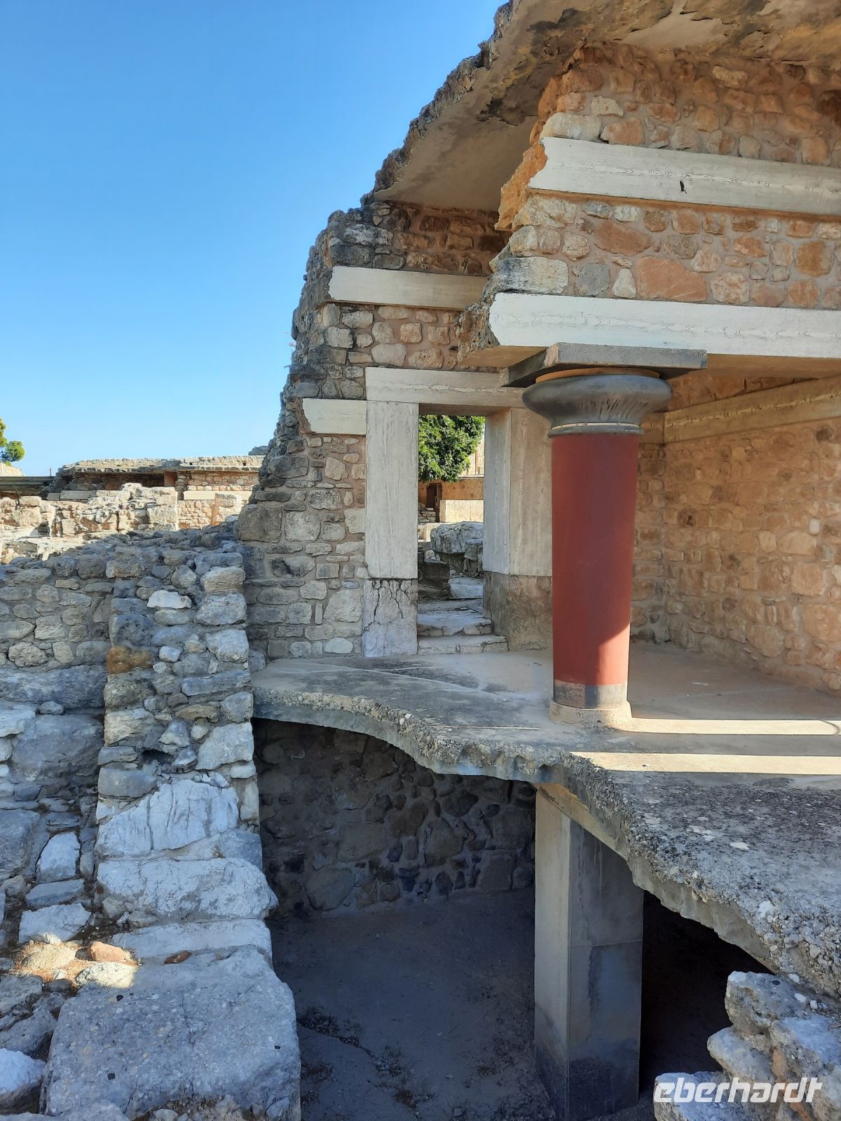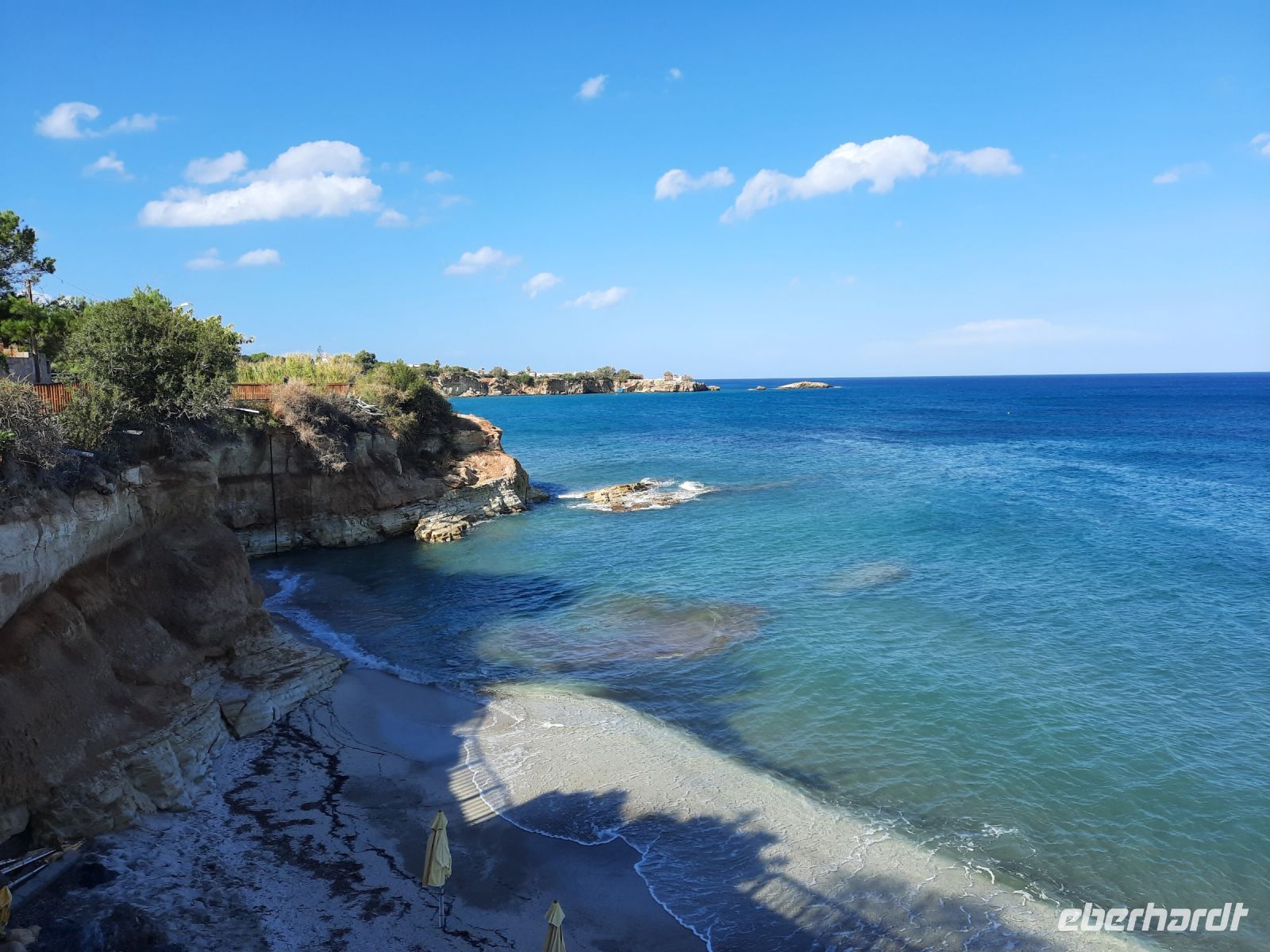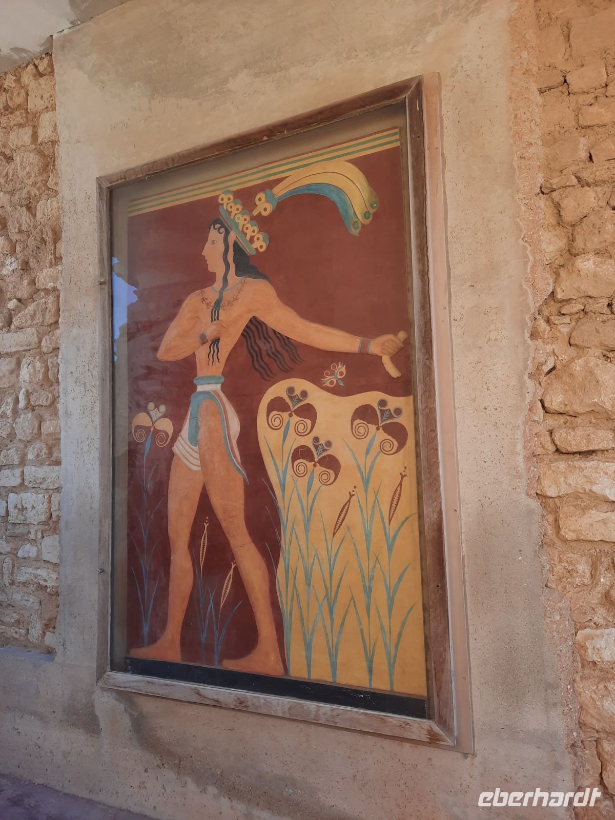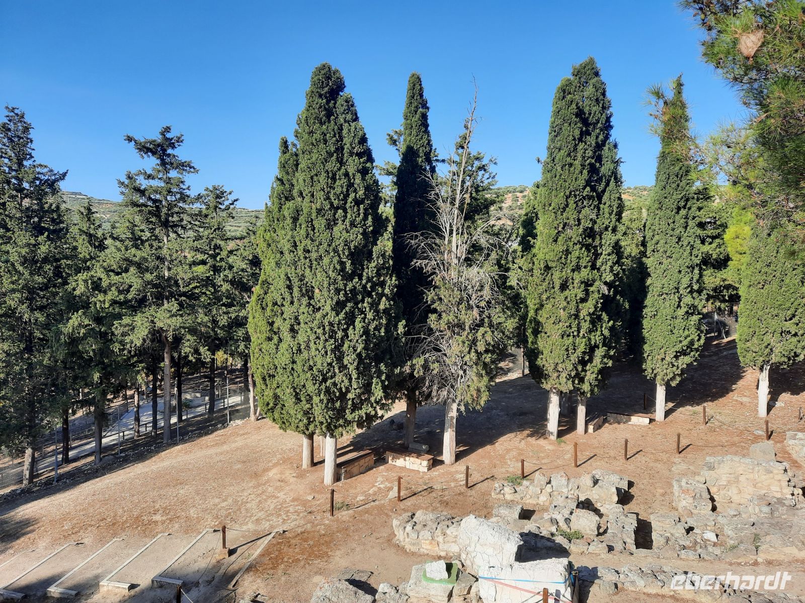 Immer die imposanten Gipfel des Ida-Gebirges und den schlafenden Zeus im Blick, fuhren wir heute in Richtung Süden. Am Dorf Agia Varvara, der Heiligen Barbara vorbei, passierten wir gleichzeitig auch den Mittelpunkt Kretas. Es ist auch das längste Dorf der Insel und für den Kirschanbau bekannt. Die sich anschließende Messara-Ebene liegt zwischen Ida- und Asterousia-Gebirge und wird hauptsächlich für den Getreide- und Gemüseanbau genutzt. In dieser fruchtbaren Tiefebene liegt auch die antike Stadt Gortys, einst kretische Hauptstadt in der Römerzeit. Im römisch-hellenistischen Odeon ist der älteste Gesetzeskodex Europas zu sehen. Imposant auch die Titus-Basilika, des ersten Bischofs von Kreta. Nach dieser eindrucksvollen Besichtigung fuhren wir zum nur wenige Kilometer entfernten hochmodernen Weingut "Zacharioudakis", welches sich seit dem Jahr 2000 auf dem 500 Meter hohen Hügel des Orthi Petra befindet. Genau hier an dieser Stelle, so erfuhren wir, werden die rein kretischen Rebsorten wie die rote Rebe "Kotsifali“ und die weißen Reben "Vidianó", "Vilana" und "Malvazia di Candia" angebaut. Die Weine reifen in einer hohen Qualität und dazu trägt in erster Linie auch das wunderbare kretische Klima mit vielen Sonnenstunden und wenig Regen bei. Bei einer kleinen Weinverkostung konnten wir uns von der wunderbaren Qualität überzeugen. Ein kleines Stück weiter liegt auf einem kleinen Plateau der Ort Festos. Die Minoer waren sehr kluge Leute, denn über der ausgedehnten Messara-Ebene, die damals wie heute Kornkammer Kretas war, bauten sie auf einem alles überblickenden Hügel ihr zentrales Heiligtum und den Palast ihres Herrschers. Der Mythos nennt übrigens Rhadamanthys, einen Bruder des Minos, als ersten Herrscher über Festos. Erste Siedlungsspuren stammen bereits aus dem 4. Jahrtausend v. Chr. Eine erste Palaststadt entstand dann um 1900 v. Chr. und nach deren Zerstörung wurde wie in Knossos ein neuer Palast erbaut. Bis ins 2. Jahrhundert hinein wohnten noch Menschen in Festos, bevor die Siedlung schließlich durch Krieger aus dem aufstrebenden, benachbarten Stadtstaat Gortys endgültig zerstört wurde. Immer wieder entzückte uns zudem ein wundervoller Panoramablick in das von Gebirgen umschlossene Tal und die Messara-Ebene. Bei einem Ausflug an die Südküste Kretas durfte natürlich auch ein Besuch des kleinen Dorfes Matala nicht fehlen und somit gelangten wir am Nachmittag in das sogenannte "Hippie-Dorf" der Insel. Hier suchten in den zahlreichen das Dorf umgebenen Höhlen Aussteiger und Hippies vor allem in den 1960-er Jahren nach den Genüssen des einfachen Lebens. Die Höhlen boten selbstverständlich keinen großen Komfort, von Elektrizität und fließendem Wasser ganz zu schweigen. Doch das einfache Leben war für die Hippies der gesuchte Kontrast zum normalen Leben und Matala war einfach perfekt, um auszubrechen und allen Verpflichtungen zu entfliehen. Neben den weltbekannten Hippiehöhlen fanden wir hier auch einen wunderschönen Strand, der den ein oder anderen zum Baden einlud. Außerdem konnten wir es uns in den zahlreichen typisch griechische Tavernen so richtig gut gehen lassen...