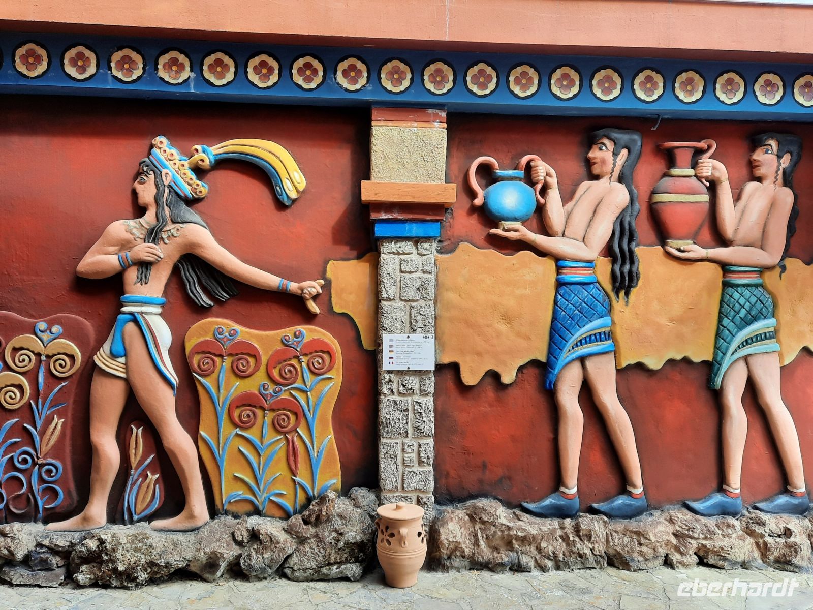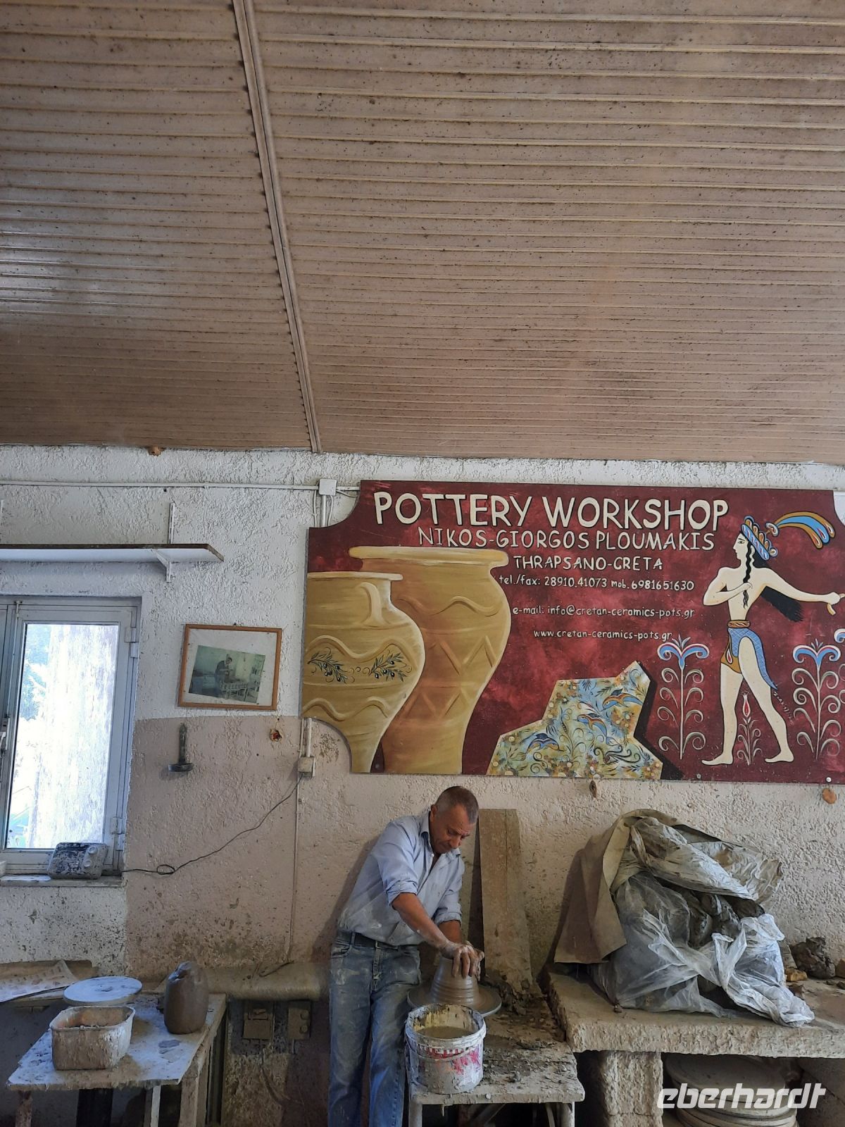 Am Morgen begrüßten wir zunächst die restlichen Gäste, die erst am späten Abend des Vortages angereist waren. Nun war unsere Gruppe mit insgesamt 23 Gästen komplett und unser erster Ausflugstag konnte beginnen. Gemeinsam mit unserer örtlichen Reiseleiterin Rena fuhren wir heute in die minoische Vergangenheit. Wir besuchten den über 3500 Jahre alten Palast der Minoer. Der Palast von Knossos gehört immerhin zu den größten Kulturschätzen der gesamten Insel. Ja - Königspalast, oder vielleicht doch das Labyrinth des Minotaurus, so recht sollte diese Frage nicht geklärt sein. Für uns war es jedenfalls ein gigantisches Bauwerk und voller Staunen erkundeten wir die Anlage. Im Anschluss fuhren wir ins kleine Töpferstädtchen Thrapsano, wo uns Niko die Kunst des Töpferns auf eindrucksvolle und künstlerische Weise demonstrierte. Hier wird dieses traditionelle Handwerk in Ehren gehalten und Tongefäße werden noch manuell hergestellt. Zur Mittagszeit erreichten wir dann die kretische Hauptstadt Heraklion. Von der Kathedrale aus schlenderten wir durch die Gassen der Altstadt bis zum Löwenbrunnen. Weiter zog es einige Gäste ins Archäologische Museum. Hier konnte man schließlich die originalen Exponate der Minoer, der ersten Hochkultur Europas, bestaunen. Wiederum andere nutzten die Zeit für einen ausgiebigen Spaziergang am venezianischen Hafen der Stadt. Mit viel neuem Wissen ging es am Nachmittag ins Hotel zurück.