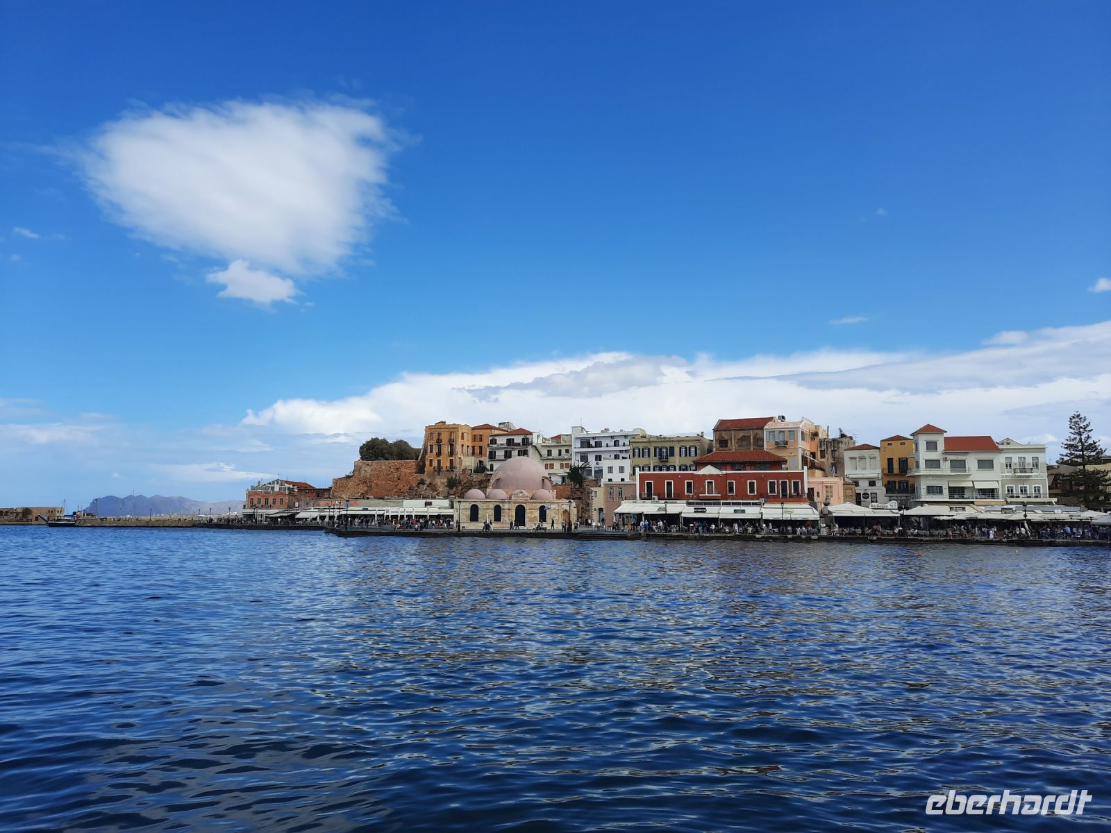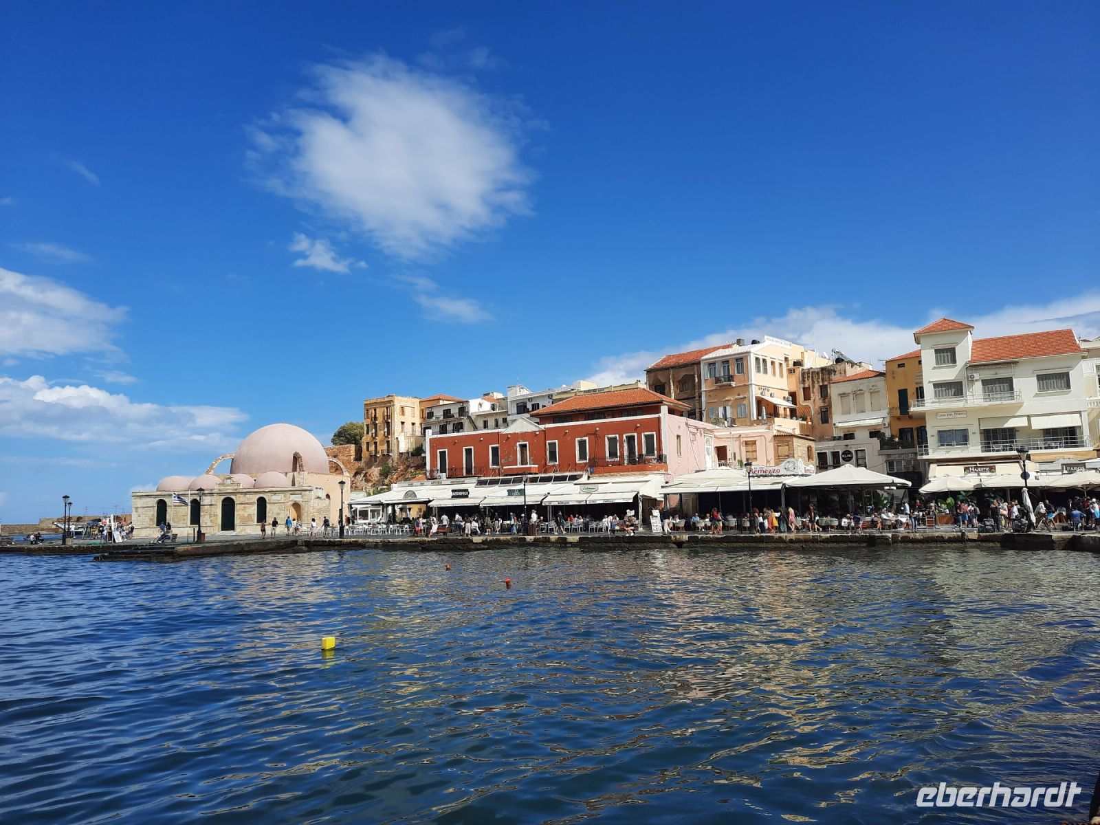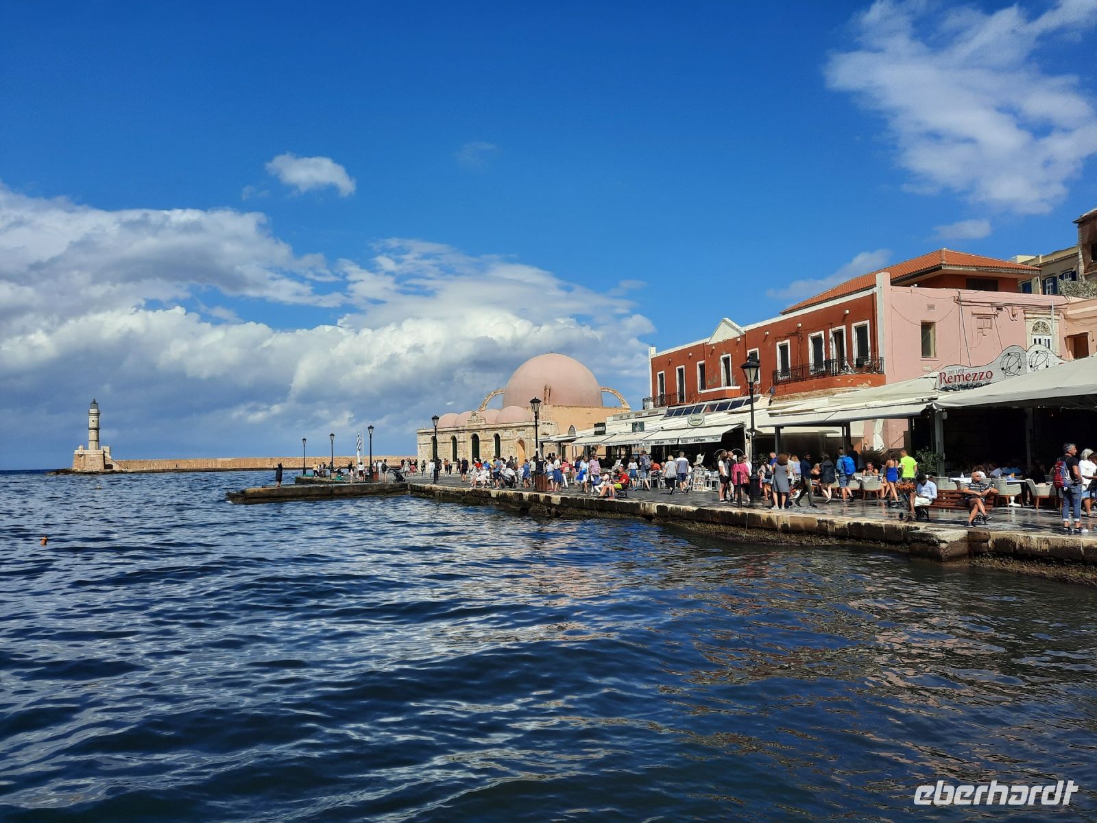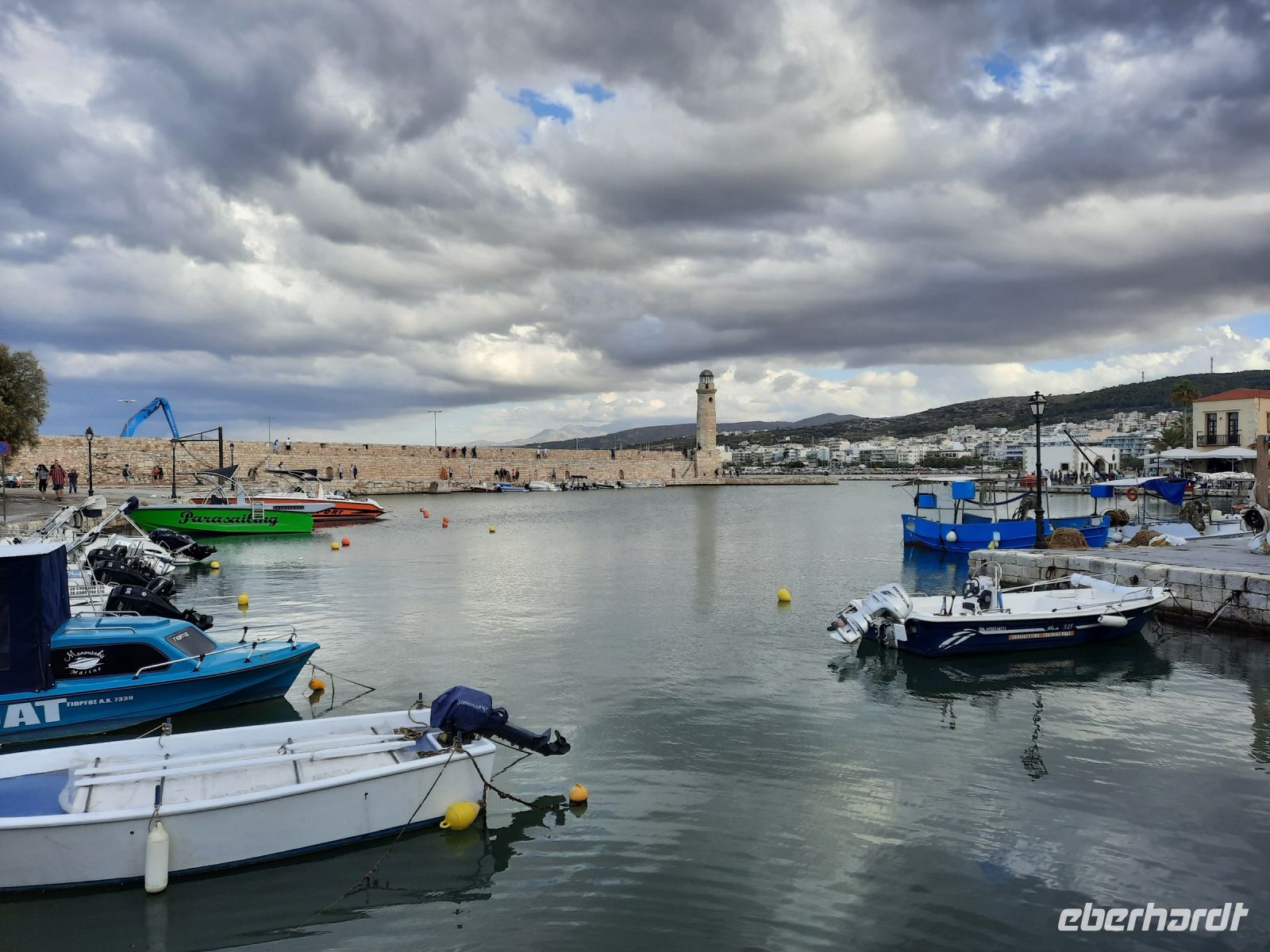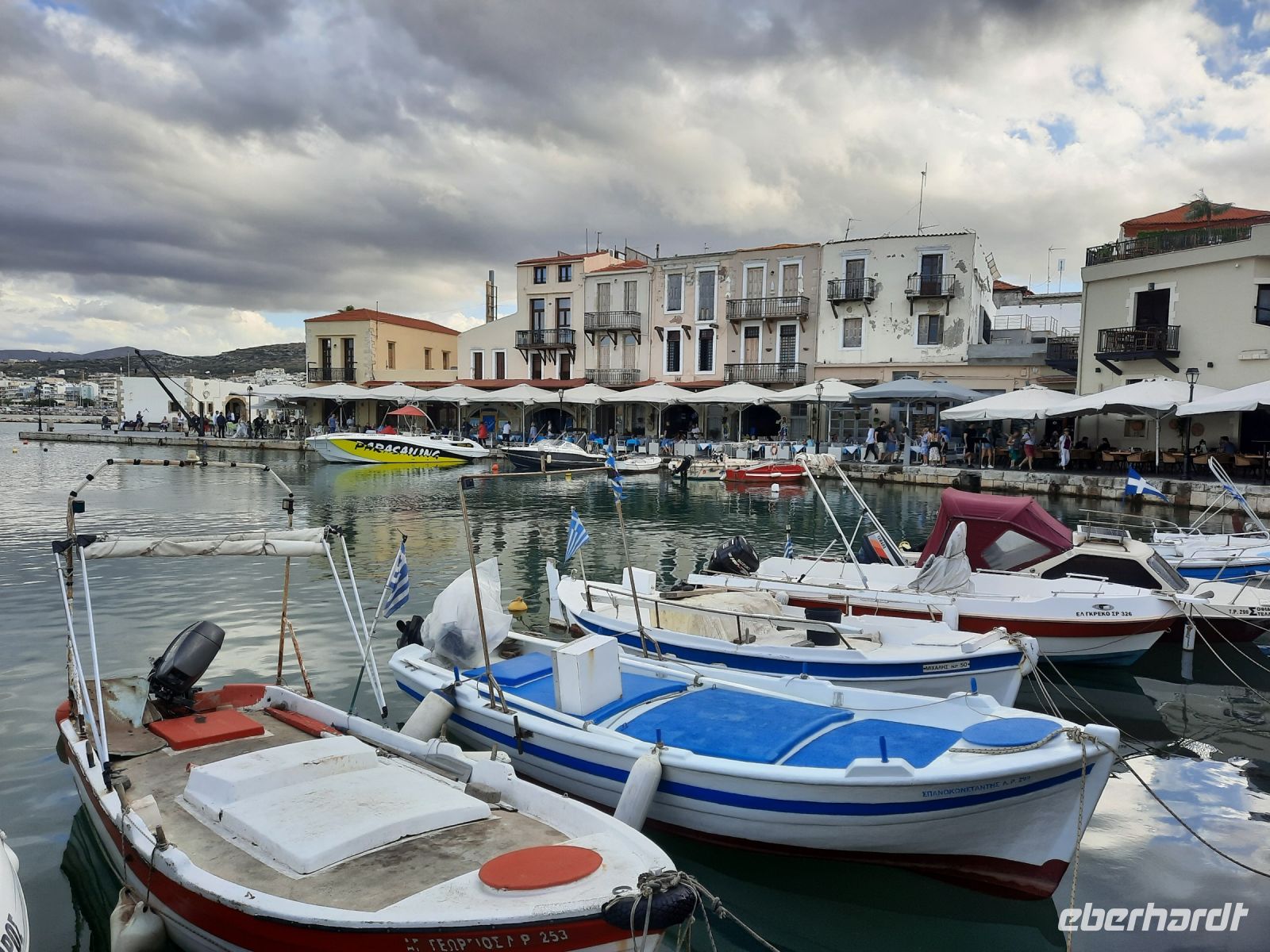 Der heutige Tag stand ganz unter dem Motto "Go West..."! Bis kurz vor Rethymnon wählten wir die Schnellstraße, ehe eine kleine einsame Straße, gesäumt von alten Olivenbäumen, uns zum Männerkloster Arkadi führte. Das festungsähnliche Kloster gilt heute als wichtigstes Symbol des kretischen Widerstandes gegen die osmanischen Herrscher. Von den Freiheitskämpfern 1866, bei dem Angriff der Osmanen gesprengt und schon 1870 wieder aufgebaut, sind heute die verschiedensten Ausstellungen zu sehen. Anschließend erreichten wir Chania, Kretas zweitgrößte Stadt und "Metropole am Fuße der Weißen Berge". Bei unserer Ankunft regnete es heftig und ein Aussteigen aus dem Bus war zunächst unmöglich! Wir harrten aus und hofften auf Besserung... Ein "Stoßgebet" an den Zeus und nach etwa 20 Minuten war der große Regen vorüber. Wir flanierten nun zur Markthalle und weiter durch die wundervolle Altstadt bis zum malerischen venezianischen Hafen der Stadt. Die Einflüsse der verschiedensten Kulturen erkannten wir sofort - genau das macht diesen Ort einzigartig und voller Charme! Unter der Stadthaltung von Prinz Georgios war Chania sogar die Inselhauptstadt, musste diesen Status allerdings 1972 an Heraklion abtreten. Zurück fuhren wir wieder am Meer entlang und legten einen Stopp in Rethymnon ein. Während Chania als "Schöne" bezeichnet wird, trägt Rethymnon den Namen "Stadt der Künstler". Thronend sitzt die Festung Fortezza am venezianischen Hafen, obwohl die Häuser größtenteils sehr osmanisch geprägt sind. Auch hier unternahmen wir einen Bummel entlang der Kaimauern und durch die stimmungsvolle Altstadt, ehe es am Abend nach Hersonissos zurück ging. Ein langer, aber sehr eindrucksvoller Tag endete mit einem wiederum schmackhaften Abendessen im Hotel.
