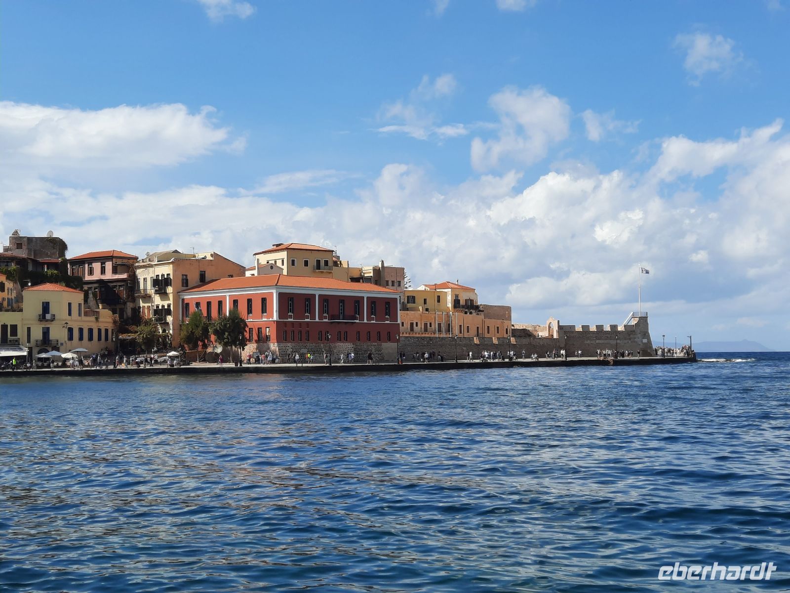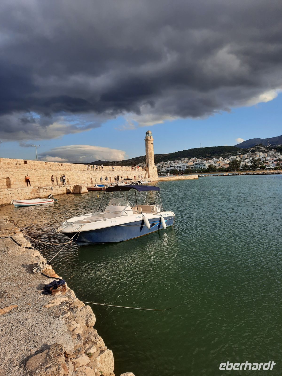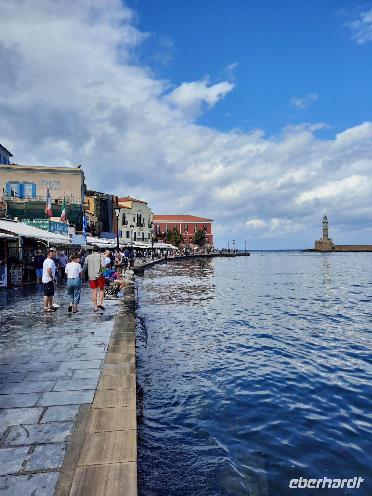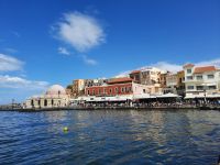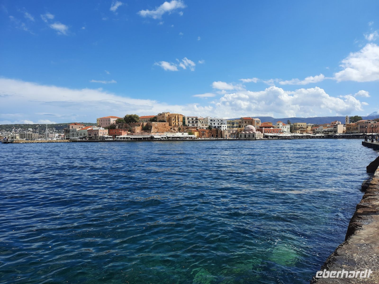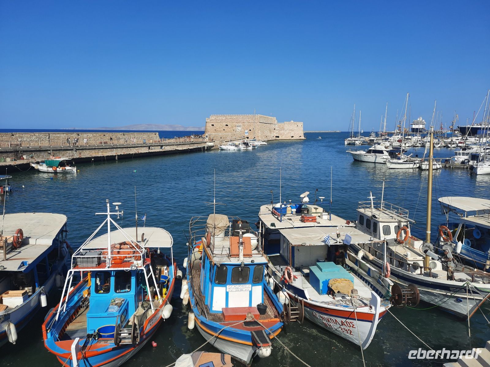 Der heutige Tag stand ganz unter dem Motto "Go West..."! Bis kurz vor Rethymnon wählten wir die Schnellstraße, ehe eine kleine einsame Straße, gesäumt von alten Olivenbäumen, uns zum Männerkloster Arkadi führte. Das festungsähnliche Kloster gilt heute als wichtigstes Symbol des kretischen Widerstandes gegen die osmanischen Herrscher. Von den Freiheitskämpfern 1866, bei dem Angriff der Osmanen gesprengt und schon 1870 wieder aufgebaut, sind heute die verschiedensten Ausstellungen zu sehen. Anschließend erreichten wir Chania, Kretas zweitgrößte Stadt und "Metropole am Fuße der Weißen Berge". Bei unserer Ankunft regnete es heftig und ein Aussteigen aus dem Bus war zunächst unmöglich! Wir harrten aus und hofften auf Besserung... Ein "Stoßgebet" an den Zeus und nach etwa 20 Minuten war der große Regen vorüber. Wir flanierten nun zur Markthalle und weiter durch die wundervolle Altstadt bis zum malerischen venezianischen Hafen der Stadt. Die Einflüsse der verschiedensten Kulturen erkannten wir sofort - genau das macht diesen Ort einzigartig und voller Charme! Unter der Stadthaltung von Prinz Georgios war Chania sogar die Inselhauptstadt, musste diesen Status allerdings 1972 an Heraklion abtreten. Zurück fuhren wir wieder am Meer entlang und legten einen Stopp in Rethymnon ein. Während Chania als "Schöne" bezeichnet wird, trägt Rethymnon den Namen "Stadt der Künstler". Thronend sitzt die Festung Fortezza am venezianischen Hafen, obwohl die Häuser größtenteils sehr osmanisch geprägt sind. Auch hier unternahmen wir einen Bummel entlang der Kaimauern und durch die stimmungsvolle Altstadt, ehe es am Abend nach Hersonissos zurück ging. Ein langer, aber sehr eindrucksvoller Tag endete mit einem wiederum schmackhaften Abendessen im Hotel.
