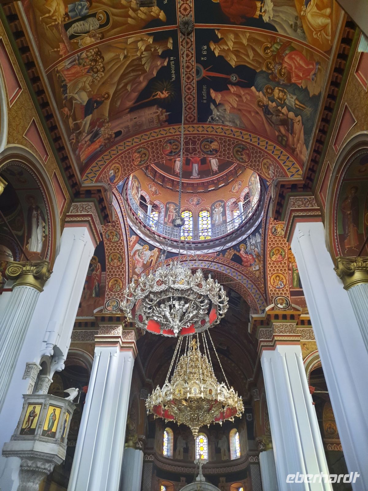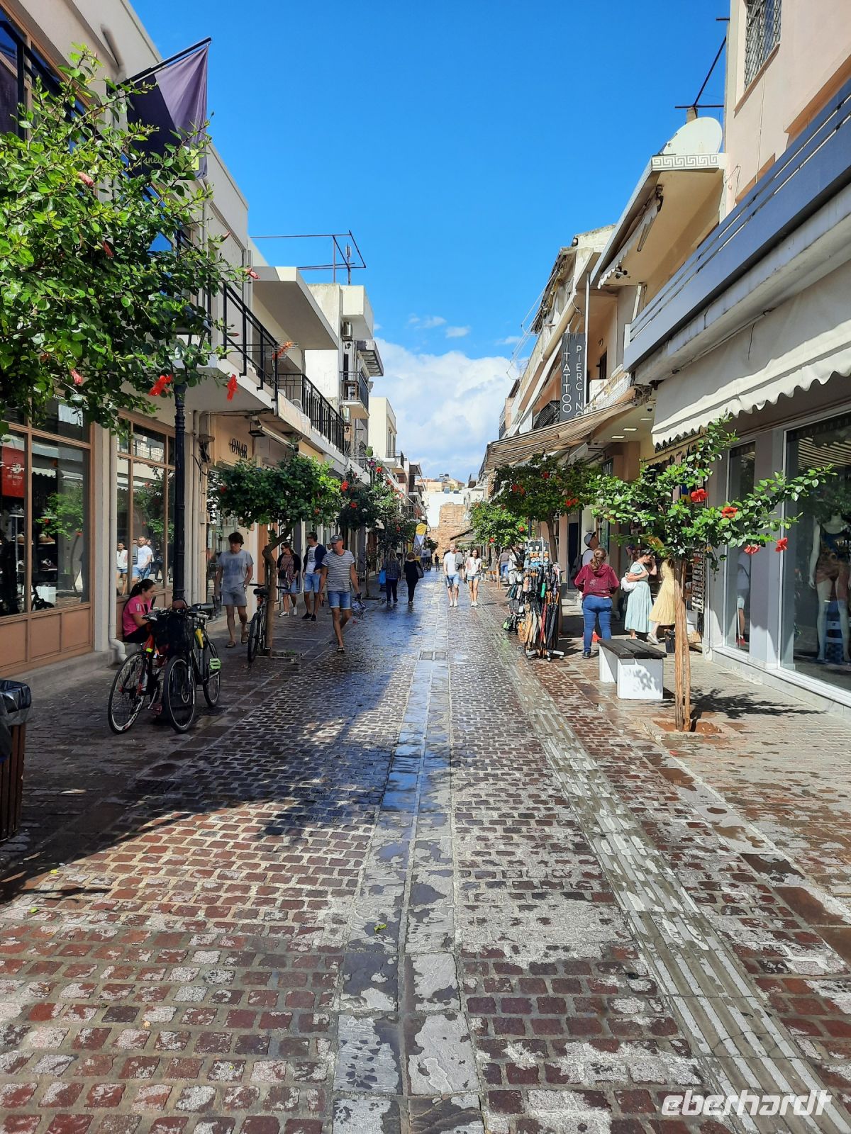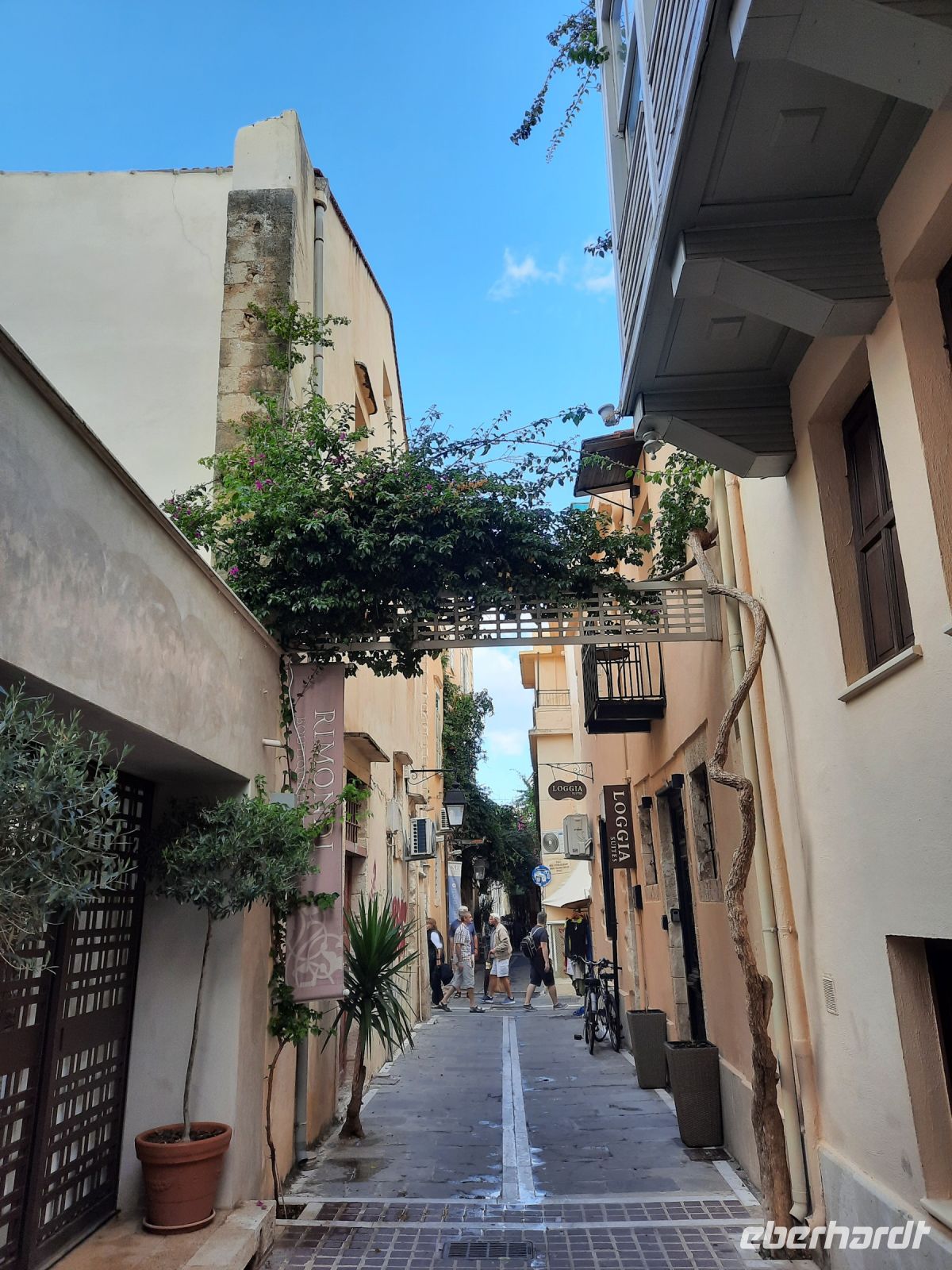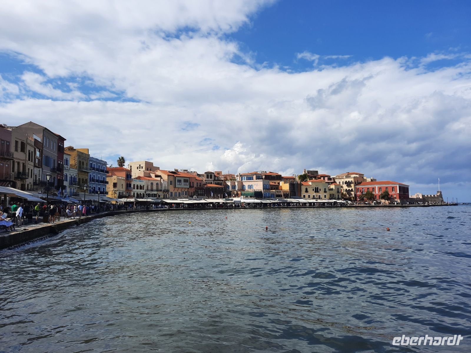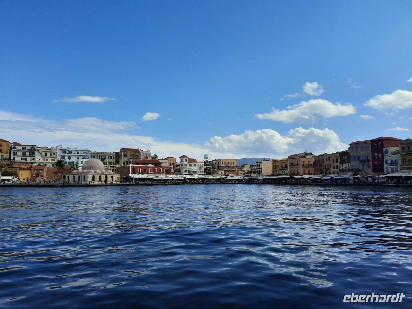 Der heutige Tag stand ganz unter dem Motto "Go West..."! Bis kurz vor Rethymnon wählten wir die Schnellstraße, ehe eine kleine einsame Straße, gesäumt von alten Olivenbäumen, uns zum Männerkloster Arkadi führte. Das festungsähnliche Kloster gilt heute als wichtigstes Symbol des kretischen Widerstandes gegen die osmanischen Herrscher. Von den Freiheitskämpfern 1866, bei dem Angriff der Osmanen gesprengt und schon 1870 wieder aufgebaut, sind heute die verschiedensten Ausstellungen zu sehen. Anschließend erreichten wir Chania, Kretas zweitgrößte Stadt und "Metropole am Fuße der Weißen Berge". Bei unserer Ankunft regnete es heftig und ein Aussteigen aus dem Bus war zunächst unmöglich! Wir harrten aus und hofften auf Besserung... Ein "Stoßgebet" an den Zeus und nach etwa 20 Minuten war der große Regen vorüber. Wir flanierten nun zur Markthalle und weiter durch die wundervolle Altstadt bis zum malerischen venezianischen Hafen der Stadt. Die Einflüsse der verschiedensten Kulturen erkannten wir sofort - genau das macht diesen Ort einzigartig und voller Charme! Unter der Stadthaltung von Prinz Georgios war Chania sogar die Inselhauptstadt, musste diesen Status allerdings 1972 an Heraklion abtreten. Zurück fuhren wir wieder am Meer entlang und legten einen Stopp in Rethymnon ein. Während Chania als "Schöne" bezeichnet wird, trägt Rethymnon den Namen "Stadt der Künstler". Thronend sitzt die Festung Fortezza am venezianischen Hafen, obwohl die Häuser größtenteils sehr osmanisch geprägt sind. Auch hier unternahmen wir einen Bummel entlang der Kaimauern und durch die stimmungsvolle Altstadt, ehe es am Abend nach Hersonissos zurück ging. Ein langer, aber sehr eindrucksvoller Tag endete mit einem wiederum schmackhaften Abendessen im Hotel.