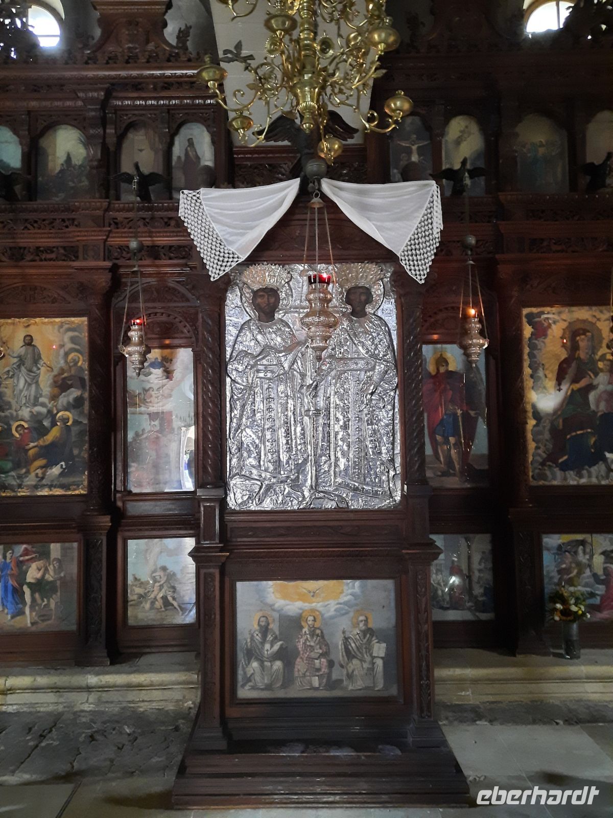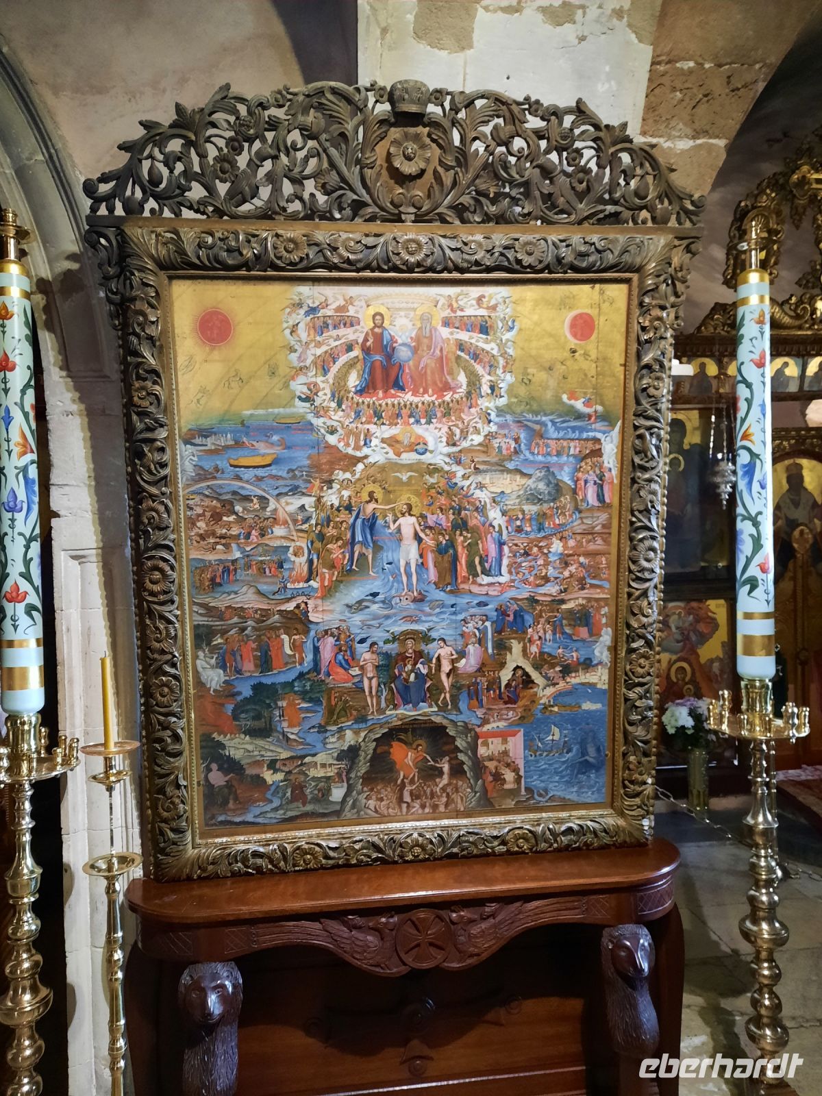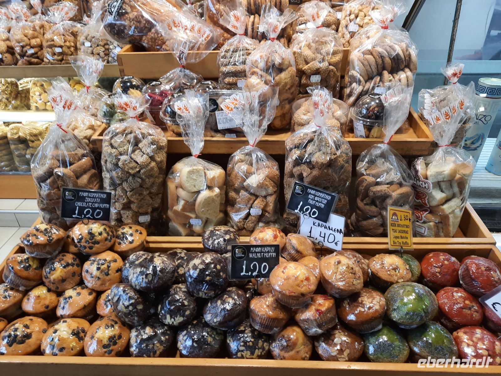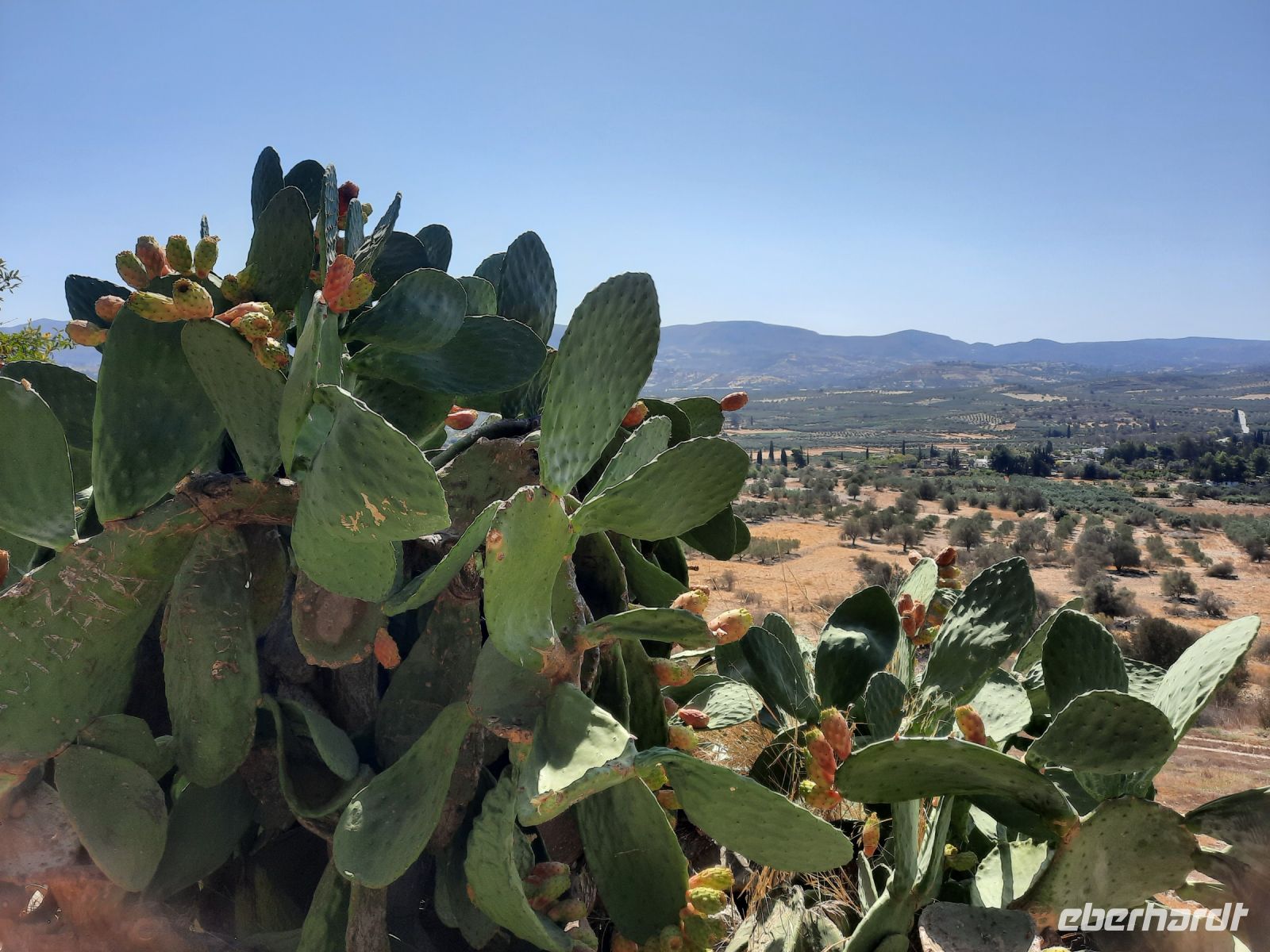 Unsere Ausflugsziele lagen heute im Osten der Insel. An Malia und an der Schlucht des Heiligen Georg vorbei, verließen wir zunächst die Küste, um in den waldlosen und eher karg wirkenden Osten Kretas zu gelangen. An der Hafenstadt Gournia legten wird einen kurzen Fotostopp ein. Hier in den Hügeln sind immerhin die Reste der antiken Hafenstadt aus minoischer Zeit zu sehen. Weiter fuhren wir durch wundervolle Gebirgslandschaften und wenig später an schier endlosen Mandel-und Olivenhainen vorbei. Vereinzelt waren sogar noch venezianische Getreidemühlen zu sehen. In der Nähe von Platanos hielten wir an einem kleinen Café mit tollen Ausblicken auf die Nordostküste Kretas. Vorbei an Sitia ging es über eine Serpentinenstraße ins trockene, felsige Bergland hinein. Schon von weitem konnten wir den Glockenturm des Klosters Toplou erkennen. Diese festungsähnliche Anlage gehört immerhin noch heute zu den reichsten Klöstern Kretas. Unsere Augen erfreuten sich an der Ikonensammlung und der schönen Innenhof-Gestaltung. Am Nachmittag zog es uns dann bei herrlichen Temperaturen um die 27 Grad ans Meer. Wir hatten dementsprechend ein Ziel und wollten den berühmten Palmenstrand von Vai genießen. Wir fühlten uns übrigens wie an der Südsee und träumen vor uns hin... Zurück fuhren wir später die gleiche Strecke, allerdings nicht ohne einen Halt bei einer Bananen-Händlerin, wo wir typisch kretische Früchte und andere Produkte kaufen konnten.