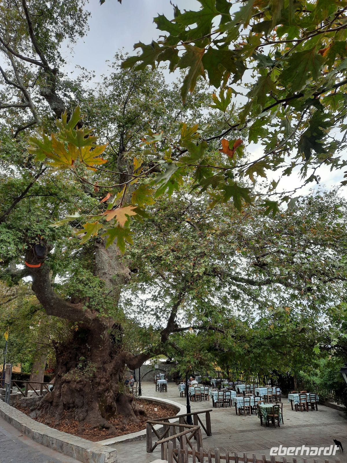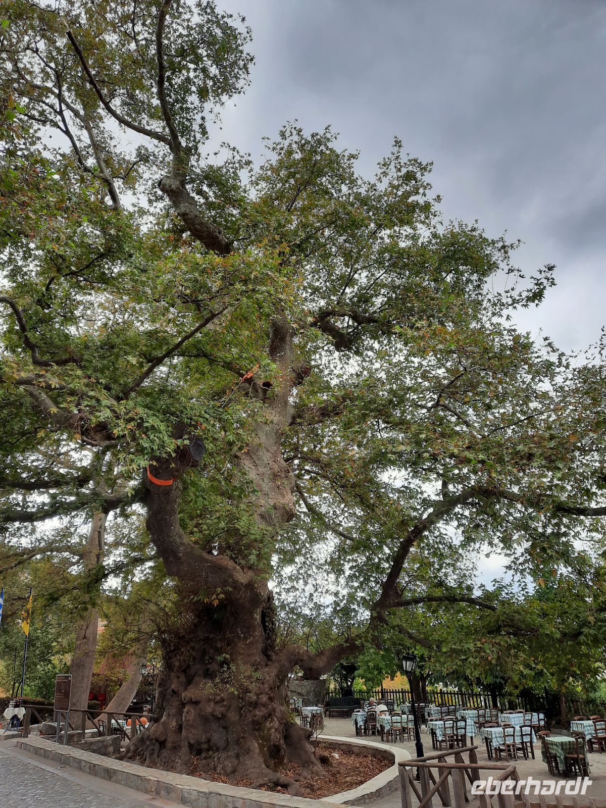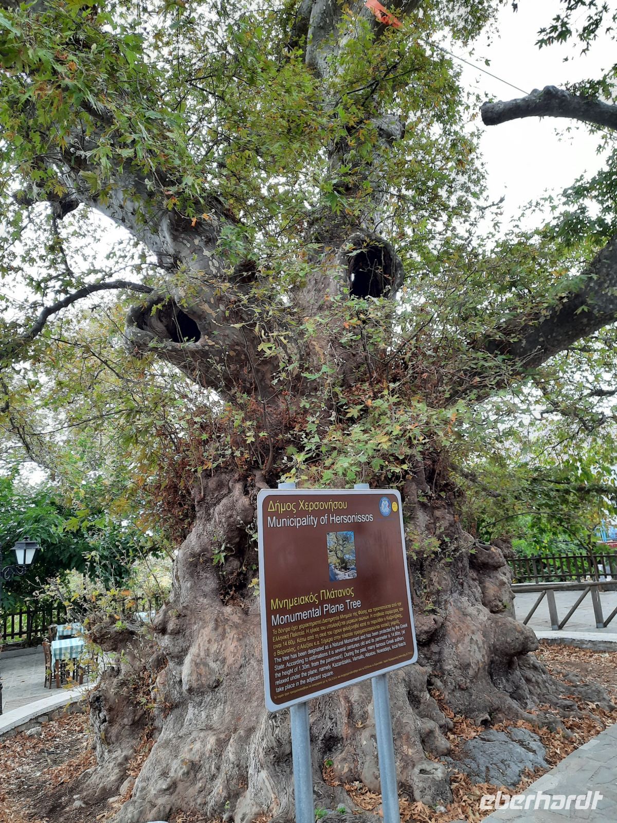 Heute fuhren wir ins Hinterland der Nordküste - in die Bergwelt mit all ihren unbekannten Schätzen - hinein. Eine atemberaubende Panoramafahrt erwartete uns... Unser Bus brachte uns zuerst zum Nonnenkloster Kera. Das historische Kloster befindet sich in einem bewaldeten Gebiet des nördlichen Dikti-Gebirges. Das genaue Datum der Gründung ist unbekannt, aber es wird angenommen, dass die Gründung des Klosters mit der wunderbaren Ikone der Jungfrau Maria verbunden wird, nach der es seinen Namen hat (Kera bedeutet unsere Dame). Auf der Weiterfahrt erreichten wir dann die Lassithi-Hochebene. Hier konnten wir an vielen Stellen noch die alten Windmühlen aus der venezianischen Zeit bewundern. In Psychro wollten wir eigentlich auf den Spuren von Zeus wandeln, denn laut Überlieferung soll der Göttervater Zeus in der hiesigen Diktäischen Höhle geboren sein. Leider gab es in den letzten Wochen auf Kreta einige starke Erdbeben und somit war die Höhle aus Sicherheitsgründen gesperrt. Schade, aber Sicherheit geht eben vor! Trotzdem wagte ein Großteil unserer Gruppe den Aufstieg bis zum Höhleneingang und wir wurde nicht enttäuscht, denn immer wieder verzauberten uns grandiose Blicke auf die ca. 800 Meter hohe Lassithi-Hochebene. Außerdem hatten wir hier in Psychro auch die Gelegenheit, dem neuen Mythologischen Themenpark einen Besuch abzustatten. Für jeden, der nur einen Funken Interesse an griechischer Mytholgie besitzt, ist der Themenpark absolut zu empfehlen. In liebevoller Arbeit wurden im Park über 50 Szenen aus Mythologie und minoischer Kultur mithilfe von Bildern und Skulpturen nachgestellt. Wir erfuhren viel Spannendes aus der Mythologie und wissen nun mehr über Kronos und Gaia und warum Zeus in Höhlen versteckt wurde, was Stierspringer sind und welche Götter für welchen Bereich verantwortlich waren. Nach so viel Sagenwelt setzten wir unsere Rundfahrt auf der Lassithi-Hochebene fort. Abschließend gelangten wir in das kleine Dorf Krasi um einen der ältesten und den größten Platanenbaum der Insel Kreta zu bewundern. In dem Dorf schien wahrhaft irgendwie die Zeit stehen geblieben zu sein, aber die alten Häuser versprühten dennoch einen besonderen Charme. Wir verkosteten noch einige Kleinigkeiten und kehrten anschließend ins Hotel zurück. Am Abend wurden wir dann in der Taverne "Sofas" in Ano Hersonissos zum Abendessen erwartet. Es wurde gegessen, getrunken, viel gelacht und sogar getanzt. Ein wunderschöner Abend und die Temperaturen ließen es sogar zu, dass wir draußen sitzen konnten!