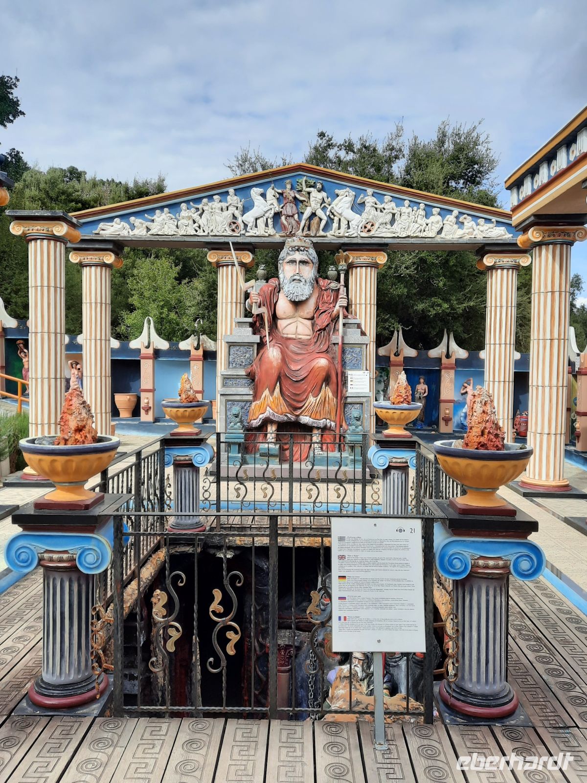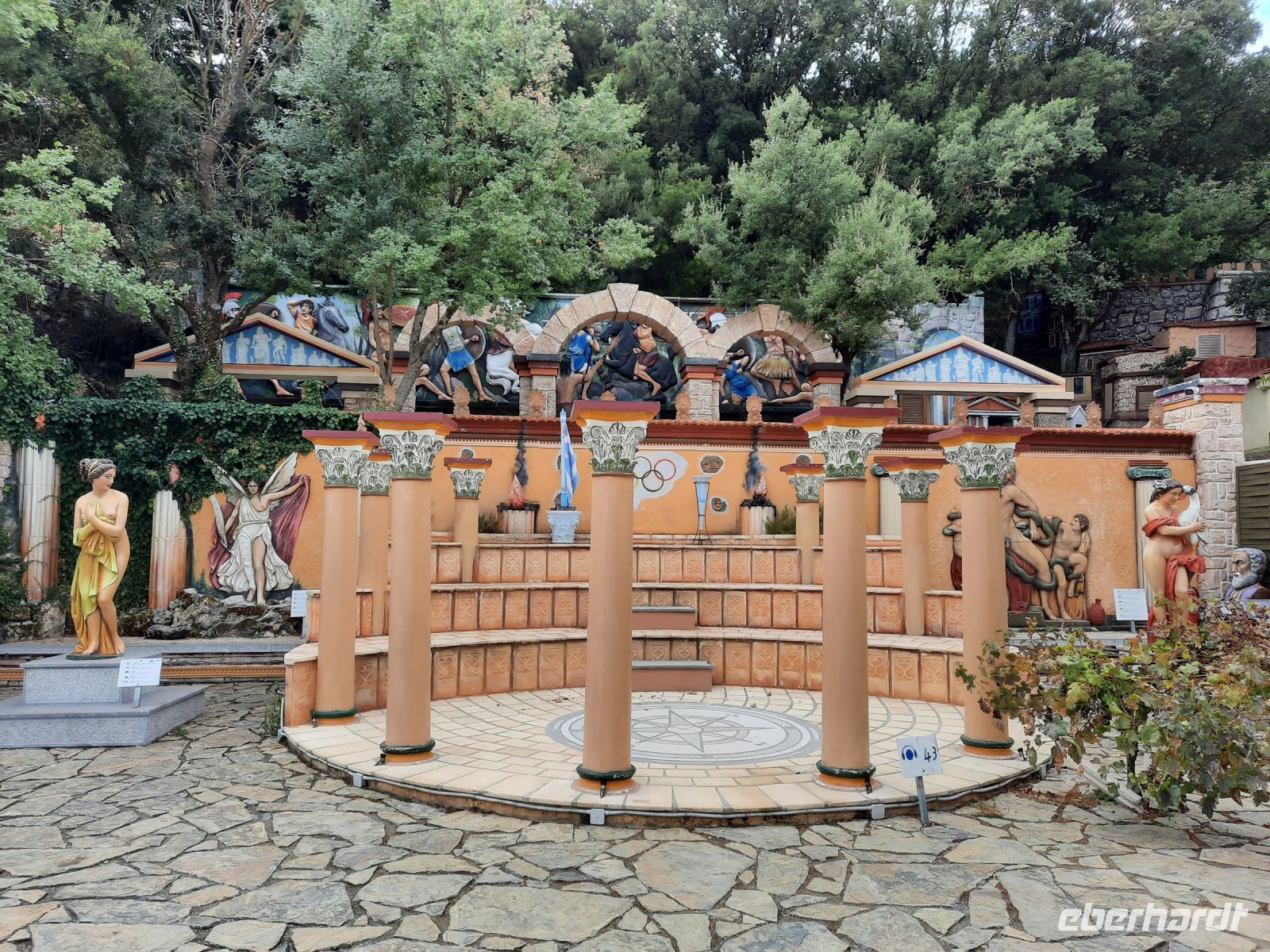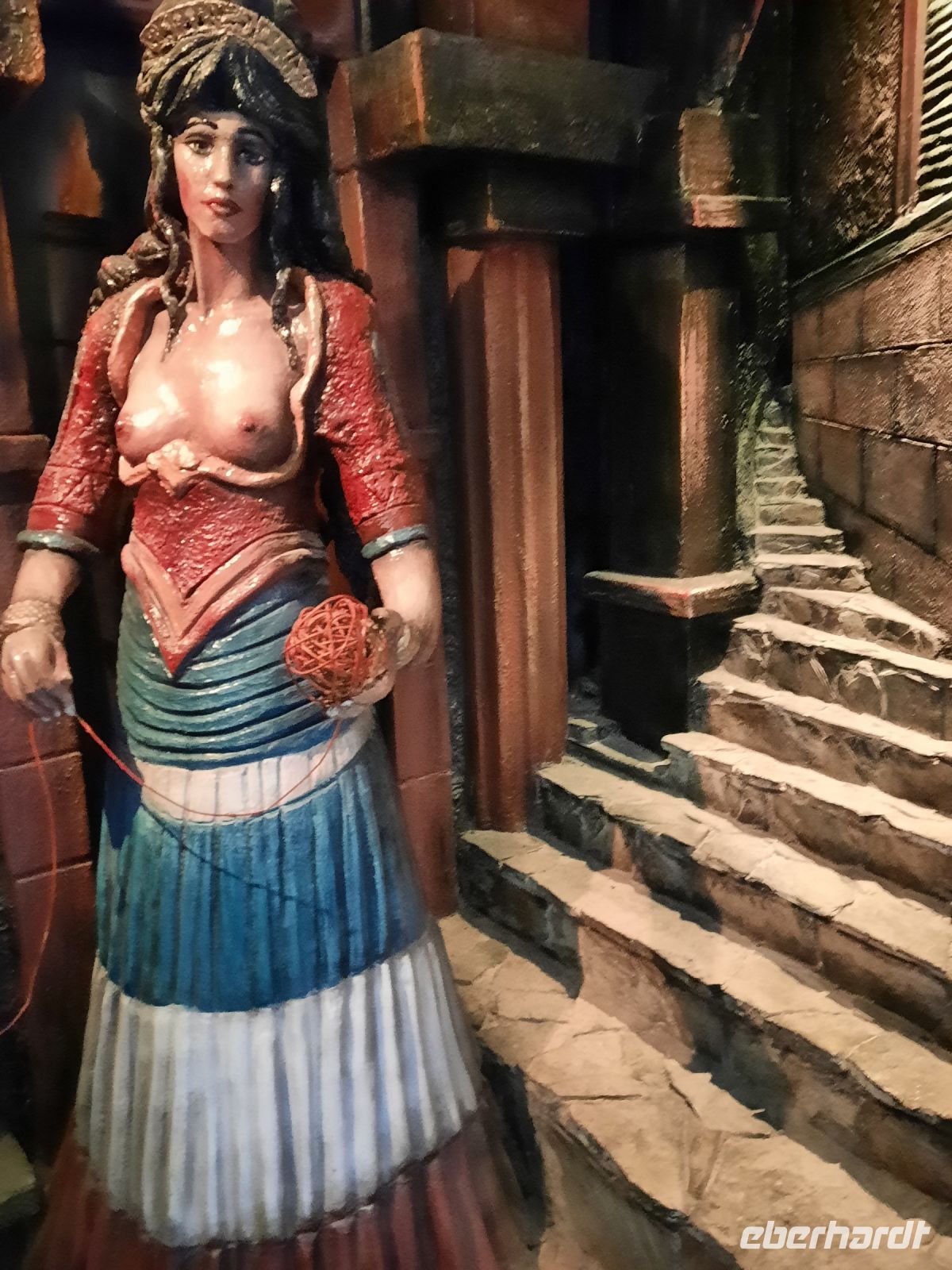 Heute fuhren wir ins Hinterland der Nordküste - in die Bergwelt mit all ihren unbekannten Schätzen - hinein. Eine atemberaubende Panoramafahrt erwartete uns... Unser Bus brachte uns zuerst zum Nonnenkloster Kera. Das historische Kloster befindet sich in einem bewaldeten Gebiet des nördlichen Dikti-Gebirges. Das genaue Datum der Gründung ist unbekannt, aber es wird angenommen, dass die Gründung des Klosters mit der wunderbaren Ikone der Jungfrau Maria verbunden wird, nach der es seinen Namen hat (Kera bedeutet unsere Dame). Auf der Weiterfahrt erreichten wir dann die Lassithi-Hochebene. Hier konnten wir an vielen Stellen noch die alten Windmühlen aus der venezianischen Zeit bewundern. In Psychro wollten wir eigentlich auf den Spuren von Zeus wandeln, denn laut Überlieferung soll der Göttervater Zeus in der hiesigen Diktäischen Höhle geboren sein. Leider gab es in den letzten Wochen auf Kreta einige starke Erdbeben und somit war die Höhle aus Sicherheitsgründen gesperrt. Schade, aber Sicherheit geht eben vor! Trotzdem wagte ein Großteil unserer Gruppe den Aufstieg bis zum Höhleneingang und wir wurde nicht enttäuscht, denn immer wieder verzauberten uns grandiose Blicke auf die ca. 800 Meter hohe Lassithi-Hochebene. Außerdem hatten wir hier in Psychro auch die Gelegenheit, dem neuen Mythologischen Themenpark einen Besuch abzustatten. Für jeden, der nur einen Funken Interesse an griechischer Mytholgie besitzt, ist der Themenpark absolut zu empfehlen. In liebevoller Arbeit wurden im Park über 50 Szenen aus Mythologie und minoischer Kultur mithilfe von Bildern und Skulpturen nachgestellt. Wir erfuhren viel Spannendes aus der Mythologie und wissen nun mehr über Kronos und Gaia und warum Zeus in Höhlen versteckt wurde, was Stierspringer sind und welche Götter für welchen Bereich verantwortlich waren. Nach so viel Sagenwelt setzten wir unsere Rundfahrt auf der Lassithi-Hochebene fort. Abschließend gelangten wir in das kleine Dorf Krasi um einen der ältesten und den größten Platanenbaum der Insel Kreta zu bewundern. In dem Dorf schien wahrhaft irgendwie die Zeit stehen geblieben zu sein, aber die alten Häuser versprühten dennoch einen besonderen Charme. Wir verkosteten noch einige Kleinigkeiten und kehrten anschließend ins Hotel zurück. Am Abend wurden wir dann in der Taverne "Sofas" in Ano Hersonissos zum Abendessen erwartet. Es wurde gegessen, getrunken, viel gelacht und sogar getanzt. Ein wunderschöner Abend und die Temperaturen ließen es sogar zu, dass wir draußen sitzen konnten!