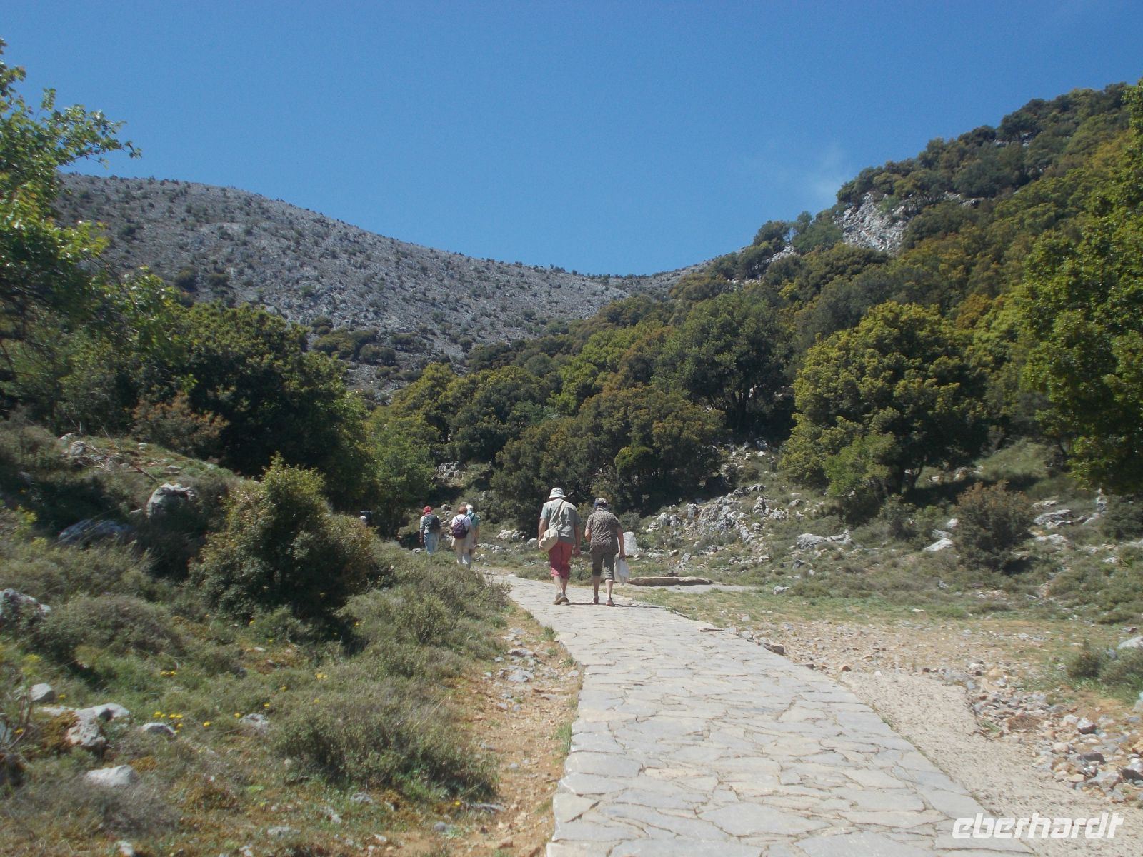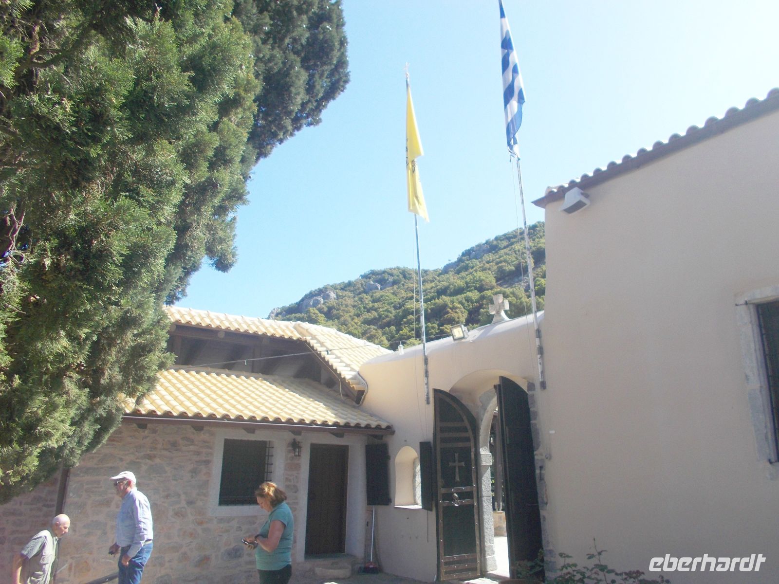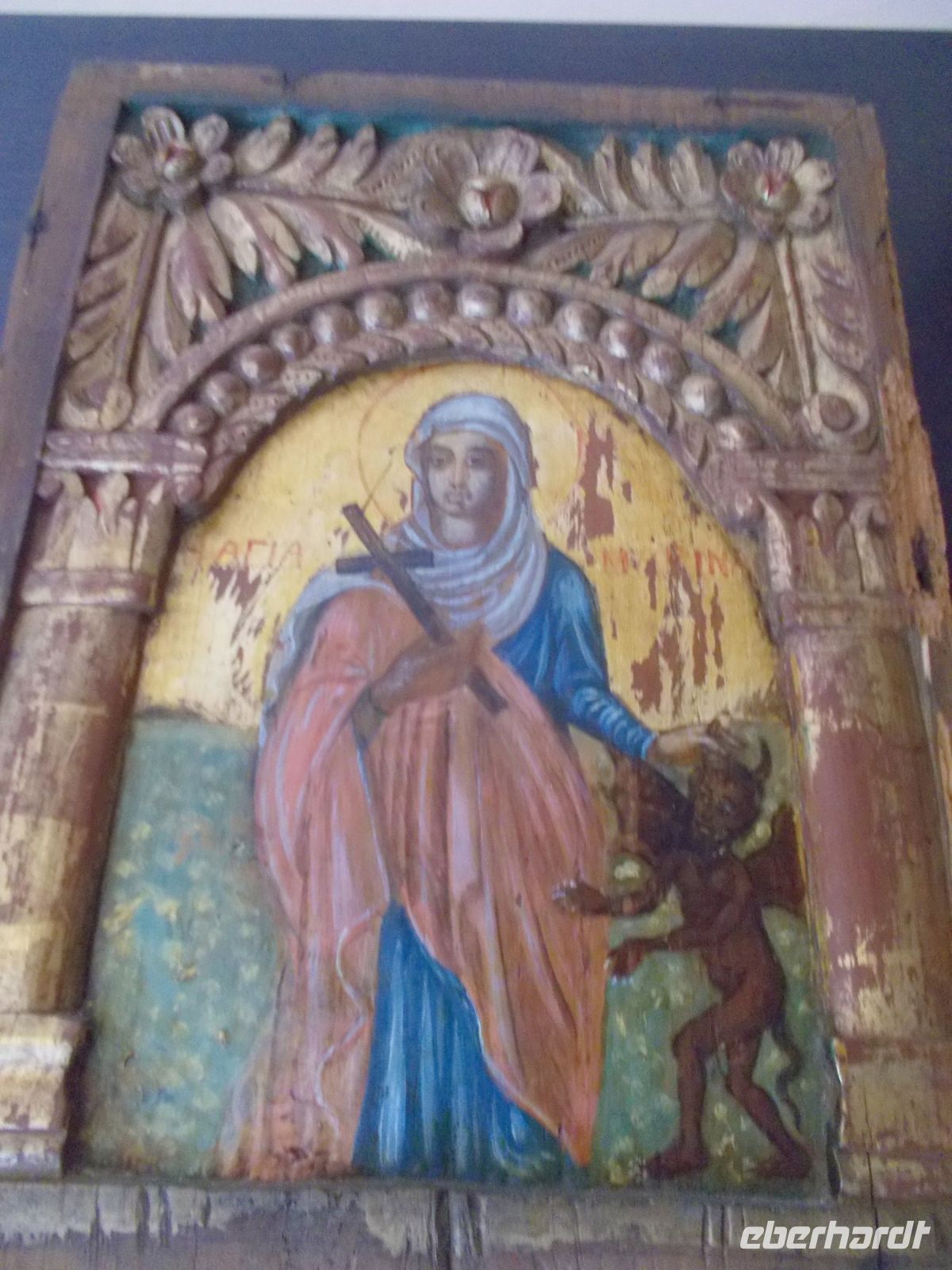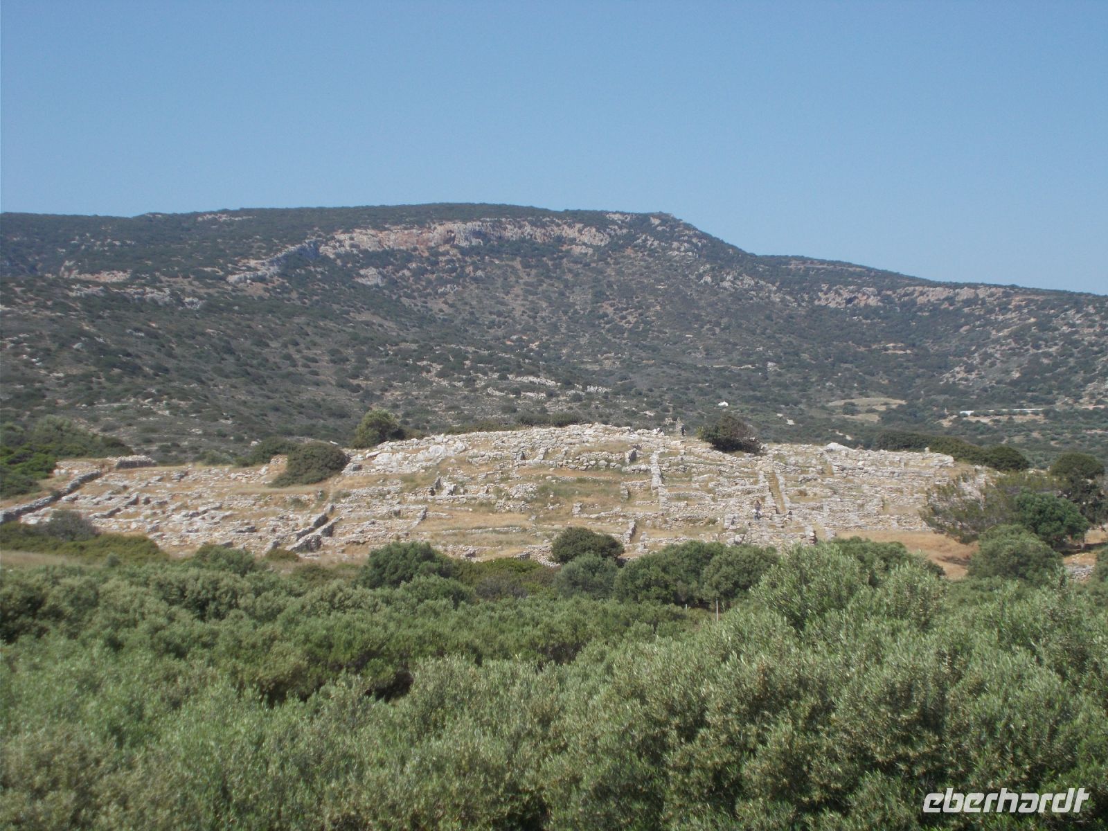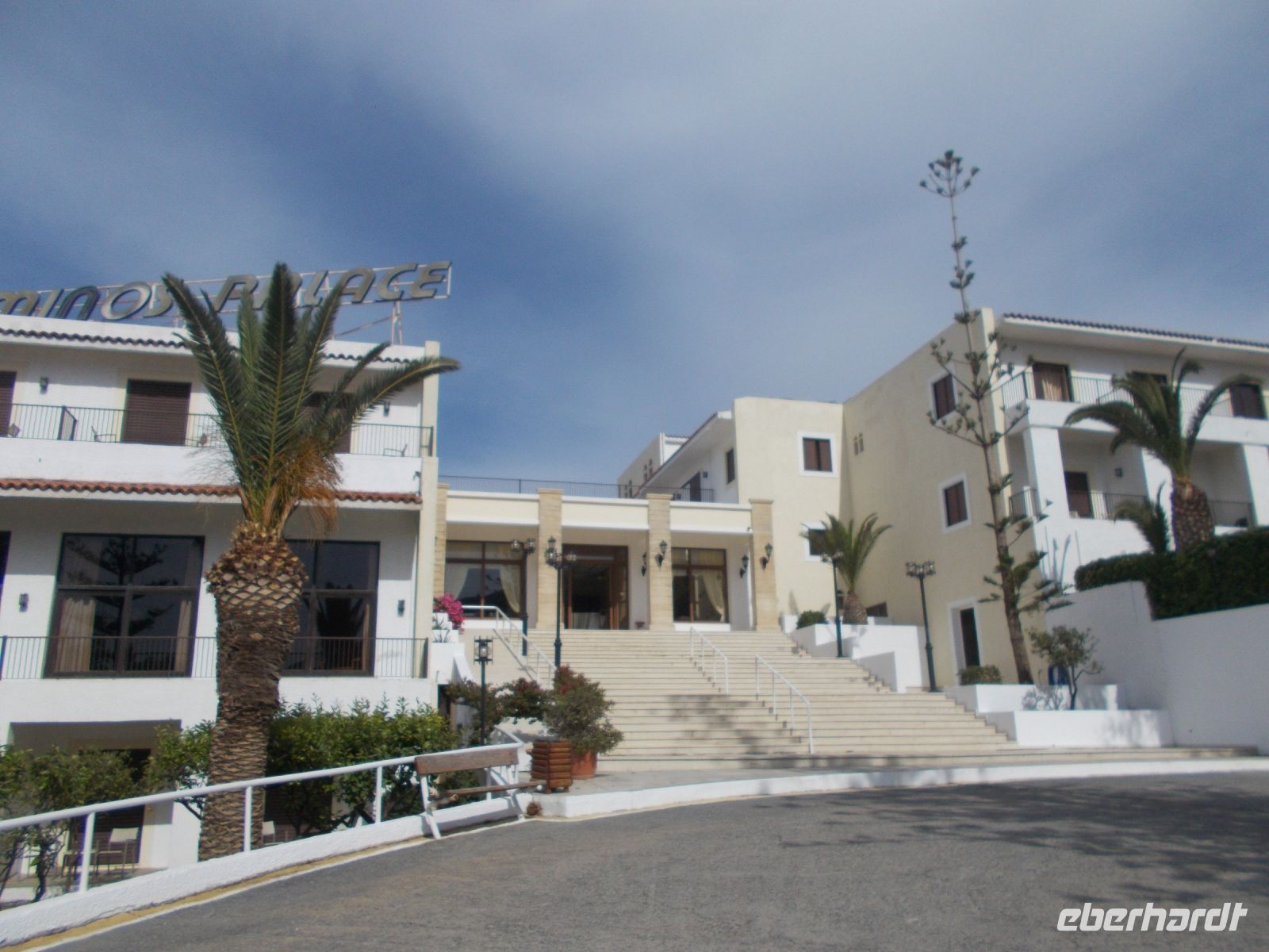 Von der Nordküste bis zum östlichsten Kap sollte unsere Reise heute gehen. Den ersten Stopp machten wir bei Gournia, der antiken Hafenstadt aus minorischer Zeit. Die Ausgrabungen wurden eingerahmt von der blühenden Mittelmeer-Fauna. Der Blick zur Laus- Insel ließ uns schon wieder die Fotoapparate zücken.Wir fuhren durch die ständig wechselnde Landschaft des Diktigebirges und hatten immer wieder mal einen tollen Blick aufs Meer. In Sitia unternahmen wir einen Bummel entlang der Strand- Promenade. Jetzt wussten wir warum sie „weiße Stadt am Meer“ genannt wird. Weiter hoch in die Berge führte unser Weg zu einem der reichsten und schönsten Klöster Kretas. Das Kloster Toplou, welches wie eine Festung gebaut wurde, faszinierte uns mit seiner Ikonen Sammlung. Hier gibt es auch ein vorzügliches Olivenöl zu kaufen. Irini unterrichtete uns, auf der Fahrt dorthin, zur Qualität und Herstellung des flüssigen Goldes. Untermalt wurde dies auch mit der dazugehörigen Göttersage, zum heiligen Olivenbaum und dem Musikinstrument Lyra. Selbst der Palmenstrand von Vai ,soll zum Kloster Toplou gehören und den besuchten wir im Anschluss. Hier genossen wir ein kühles Bad und fühlten uns wie in der Südsee. Auf der Heimfahrt lauschten wir griechischen Klängen und ließen den schönen Tag Revue passieren.