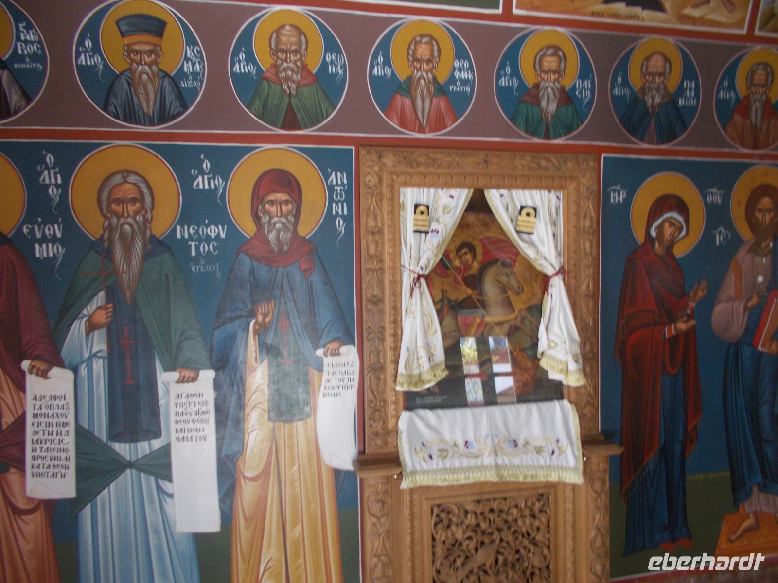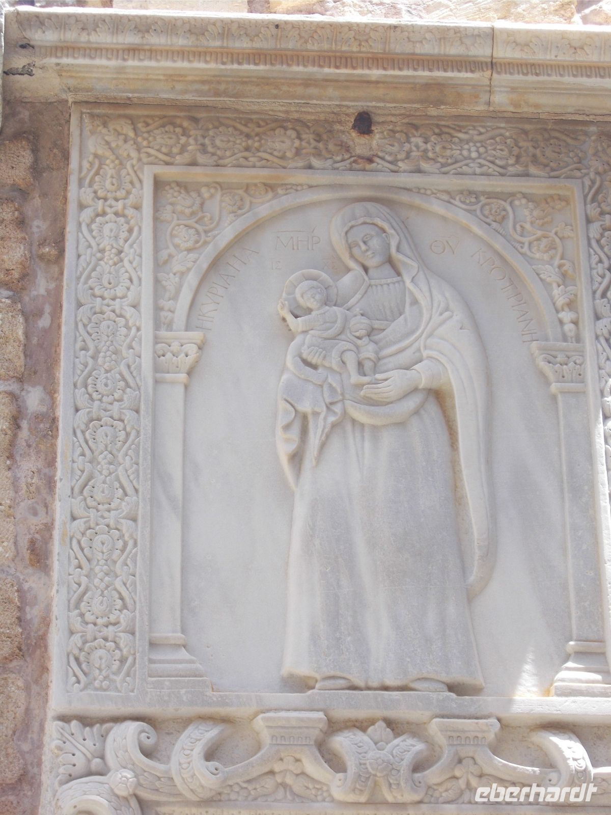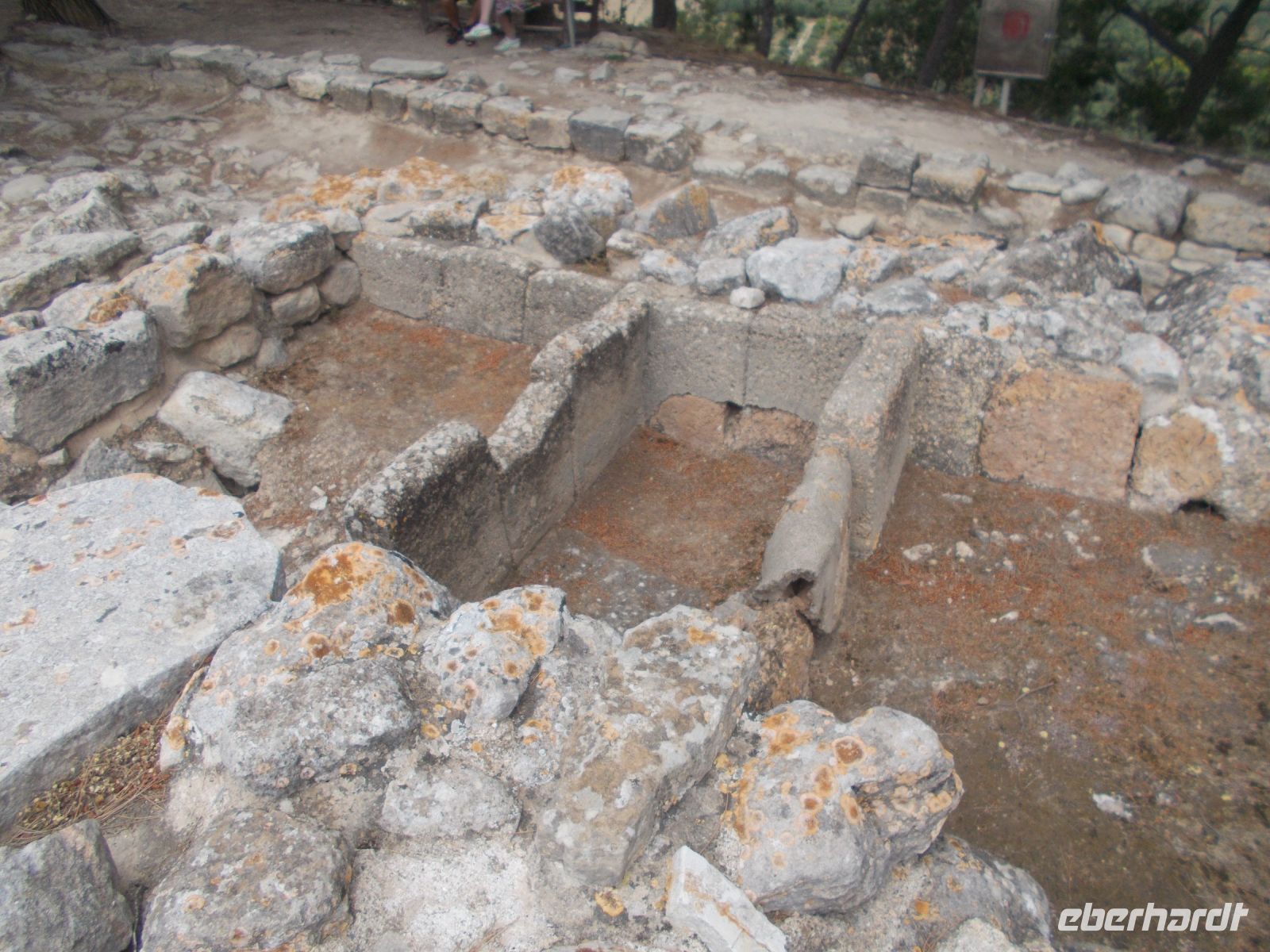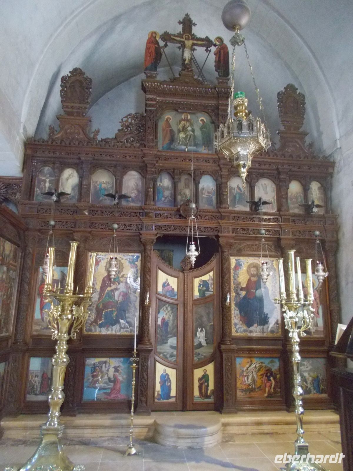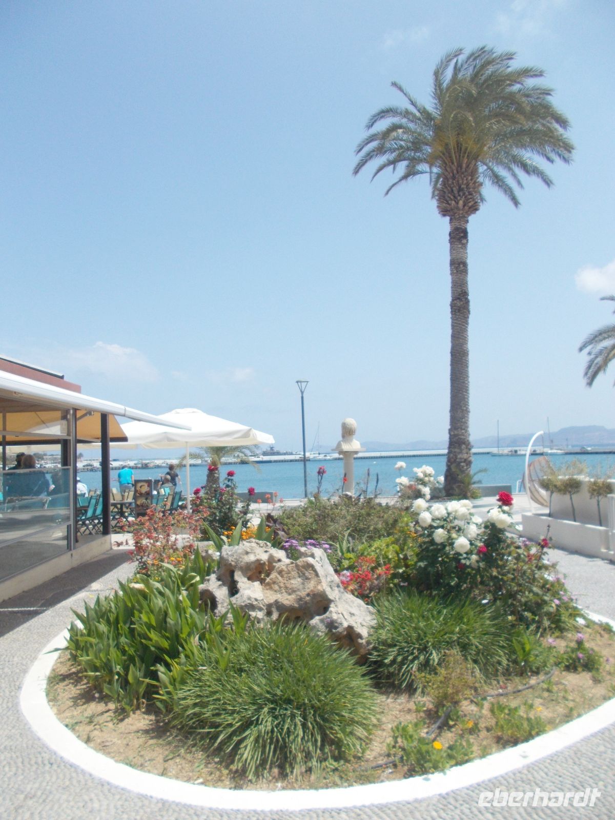 Von der Nordküste bis zum östlichsten Kap sollte unsere Reise heute gehen. Den ersten Stopp machten wir bei Gournia, der antiken Hafenstadt aus minorischer Zeit. Die Ausgrabungen wurden eingerahmt von der blühenden Mittelmeer-Fauna. Der Blick zur Laus- Insel ließ uns schon wieder die Fotoapparate zücken.Wir fuhren durch die ständig wechselnde Landschaft des Diktigebirges und hatten immer wieder mal einen tollen Blick aufs Meer. In Sitia unternahmen wir einen Bummel entlang der Strand- Promenade. Jetzt wussten wir warum sie „weiße Stadt am Meer“ genannt wird. Weiter hoch in die Berge führte unser Weg zu einem der reichsten und schönsten Klöster Kretas. Das Kloster Toplou, welches wie eine Festung gebaut wurde, faszinierte uns mit seiner Ikonen Sammlung. Hier gibt es auch ein vorzügliches Olivenöl zu kaufen. Irini unterrichtete uns, auf der Fahrt dorthin, zur Qualität und Herstellung des flüssigen Goldes. Untermalt wurde dies auch mit der dazugehörigen Göttersage, zum heiligen Olivenbaum und dem Musikinstrument Lyra. Selbst der Palmenstrand von Vai ,soll zum Kloster Toplou gehören und den besuchten wir im Anschluss. Hier genossen wir ein kühles Bad und fühlten uns wie in der Südsee. Auf der Heimfahrt lauschten wir griechischen Klängen und ließen den schönen Tag Revue passieren.