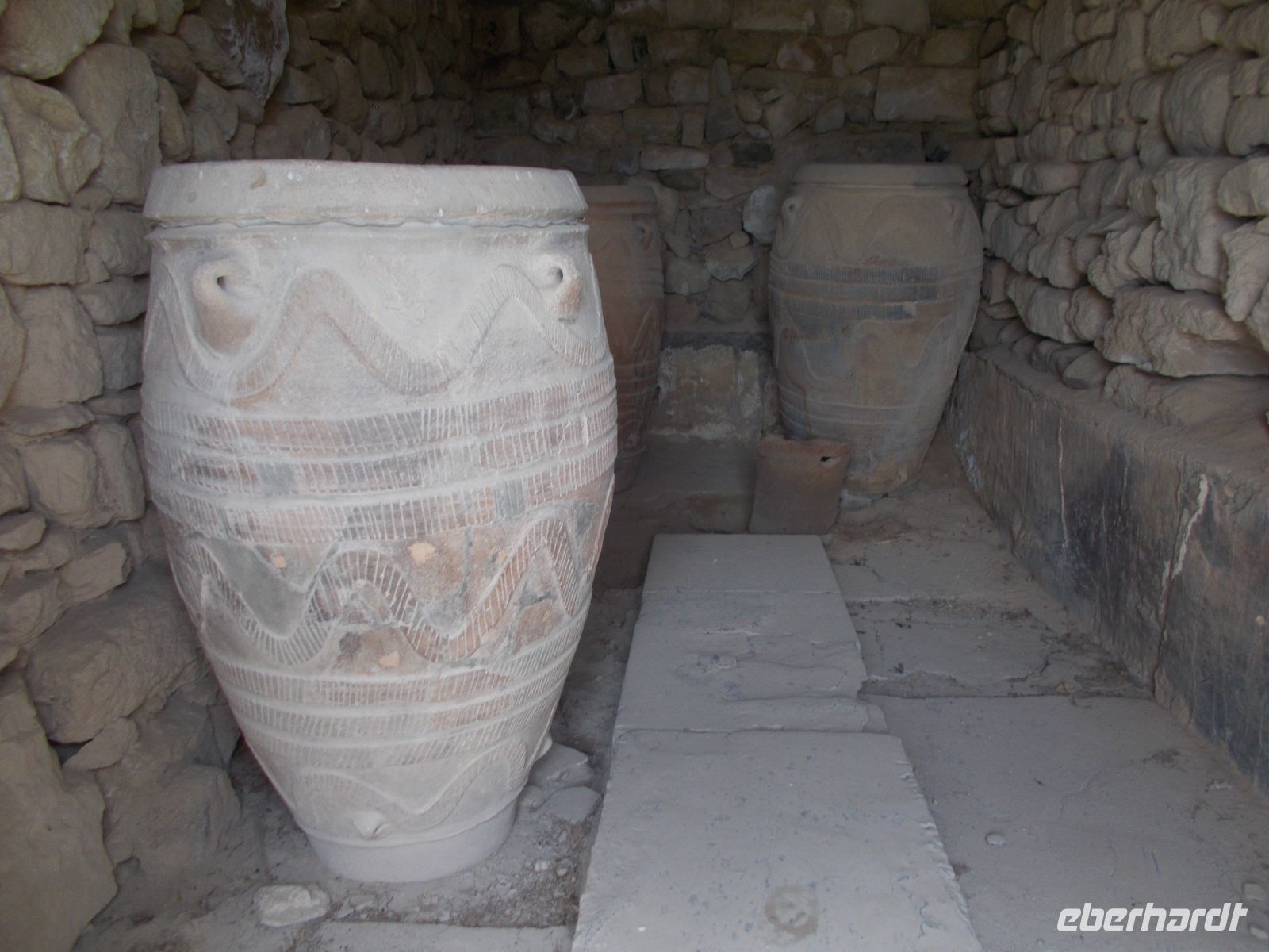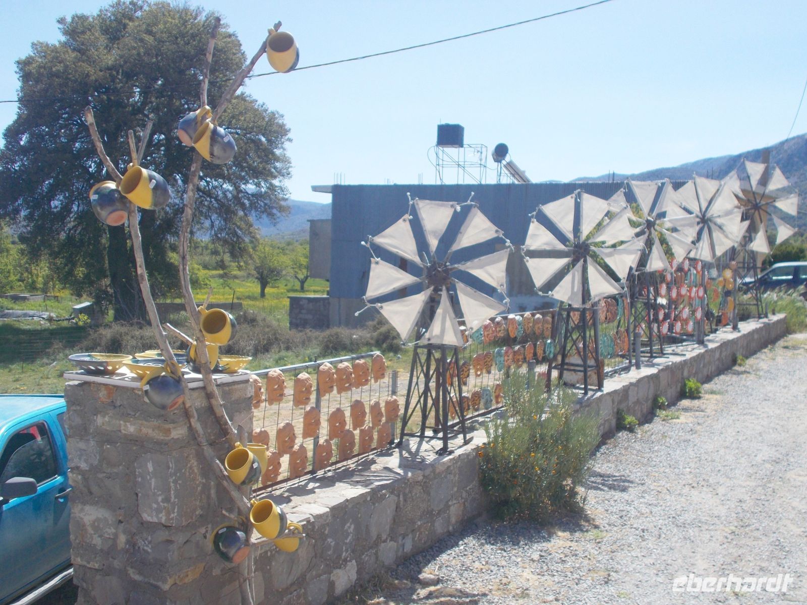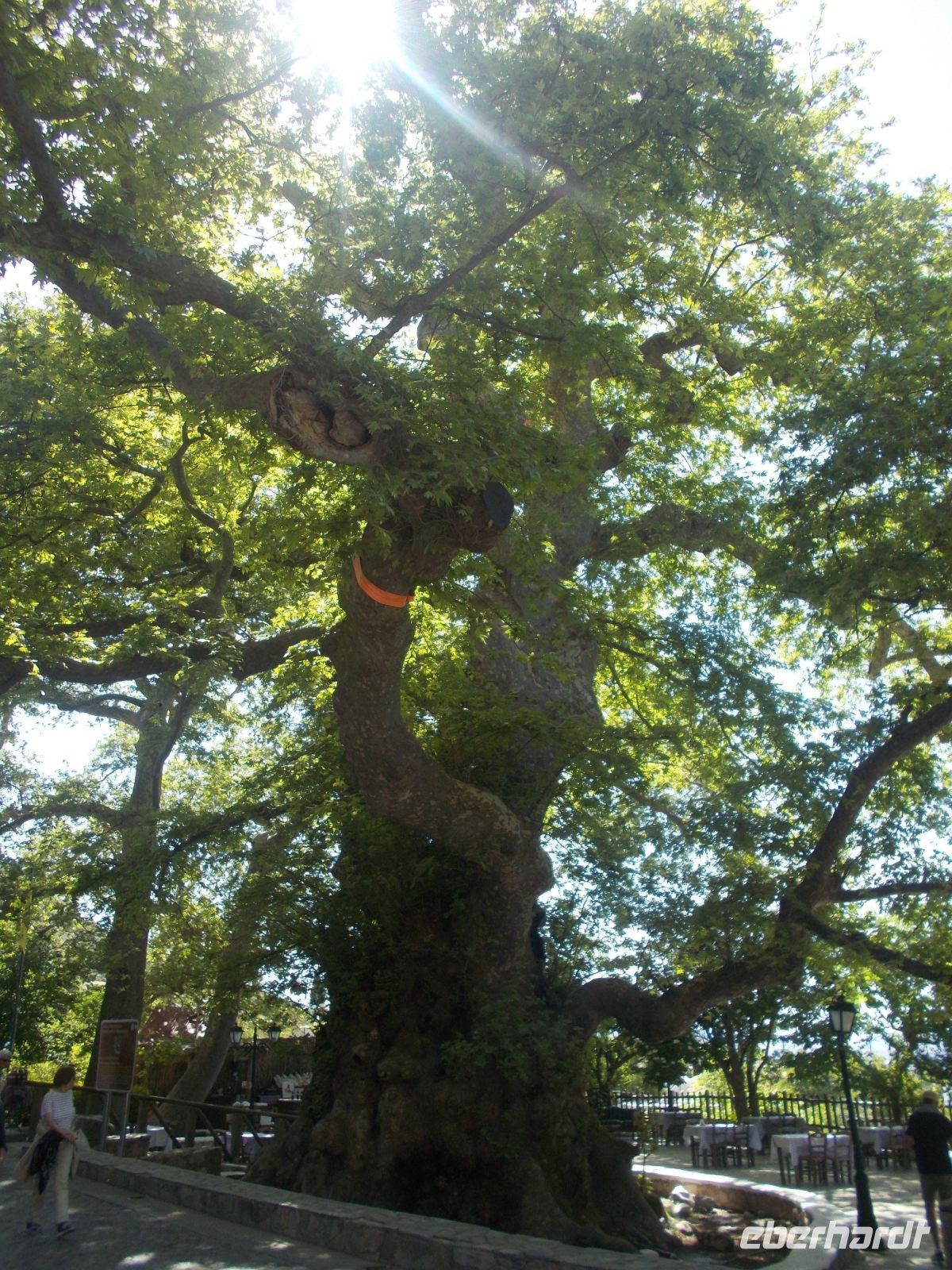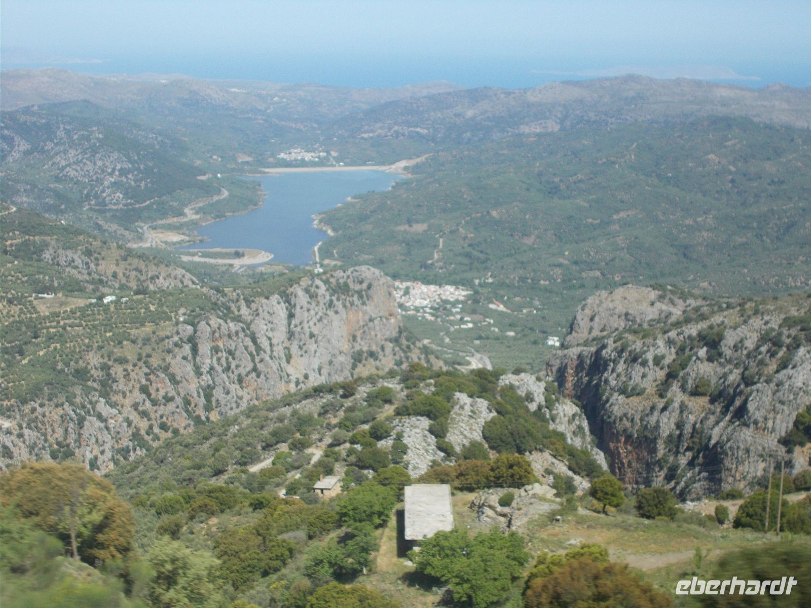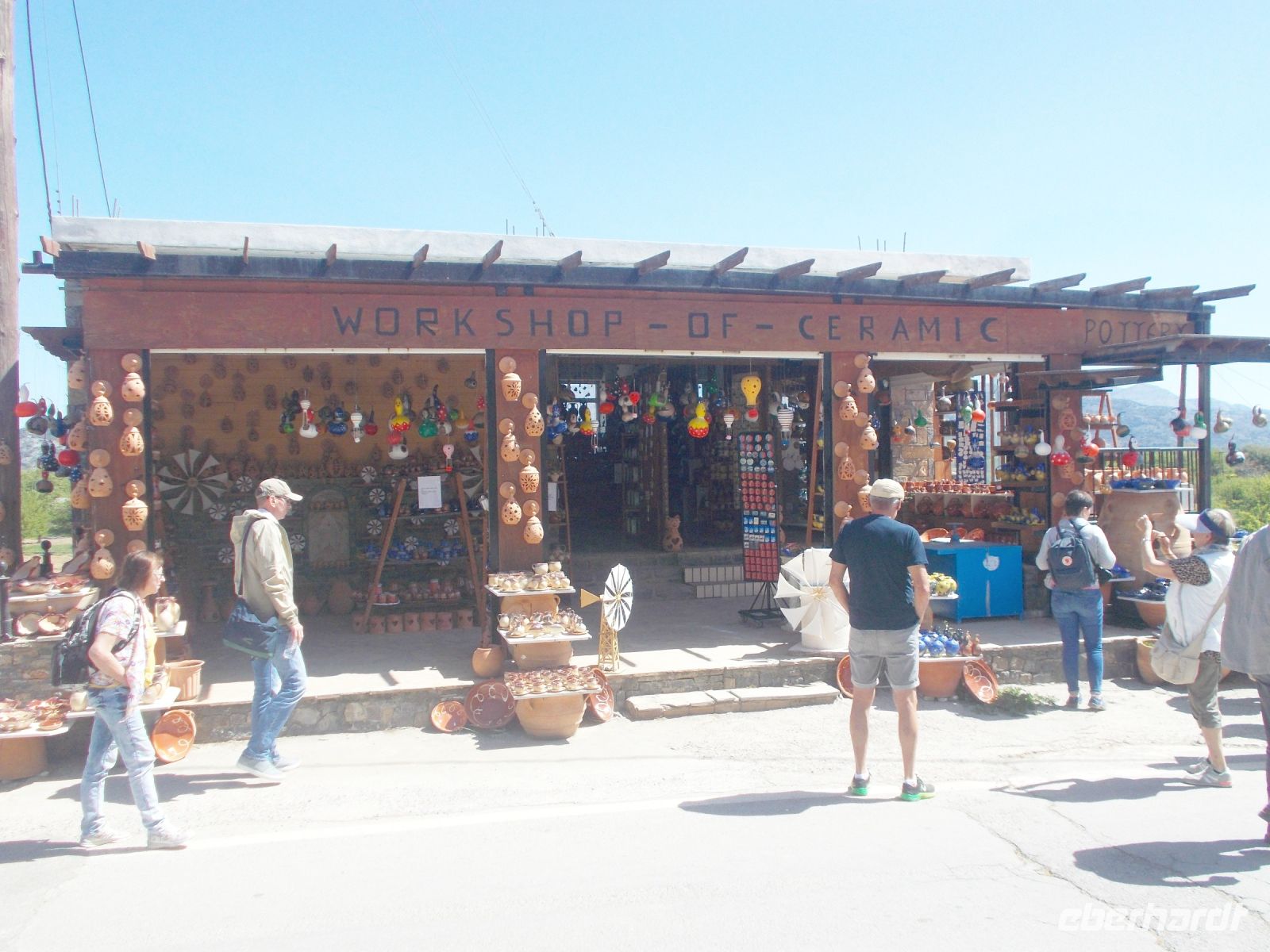 Die Lassithi Hochebene, in Süd – Ost Richtung, war diesmal unser Ziel.Von Stalas aus erklommen wir die atemberaubende Serpentinenstraße die uns in die Lassithi Hochebene führte.Das Nonnenkloster von Kera liegt idylisch, an einem Hang gelegen, eingebettet in eine bizarre Bergwelt. Man hat hier einen tollen Blick zum Stausee, der die Region mit Trinkwasser versorgt. In der Keramikwerkstatt von Psichro, sahen wir wie diese Kunststücke entstehen. Die Ausflugsziele lagen heute ziemlich beieinander und so konnten wir alles entspannt angehen. Natürlich wollten wir die Geburtshöhle vom „Göttervater“ Zeus besichtigen. Ein steiler Weg führte die „Wanderer“ dorthin. Die Genießer sitzen auf der Terrasse, mit Blick über die fruchtbare Ebene und lassen sich, frisch gepressten, O-Saft schmecken. Kleine ,abgelegene Dörfer säumten unseren Weg zu den Windmühlen von Seli Ambelou,am Lassithi Hauptpass. Dort gab es ein köstliches Mittagessen. Im Dorf Krasi steht eine der mächtigsten und ältesten Platanen Kretas.Auch hier machten wir einen Stopp. Zurück im Hotel, bereiteten wir uns auf den Abend, in einer Taverne der Altstadt, vor. Wir saßen am Marktplatz von Hersonissos und uns wurden kretische Spezialitäten serviert.