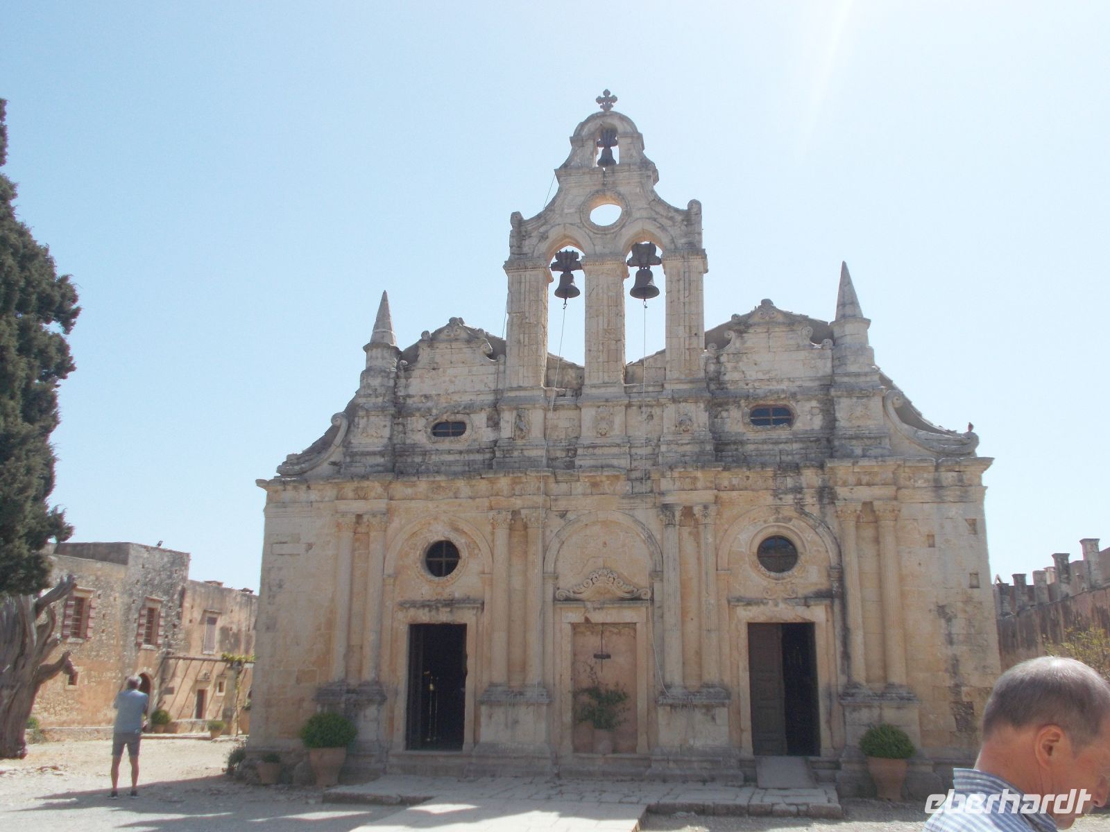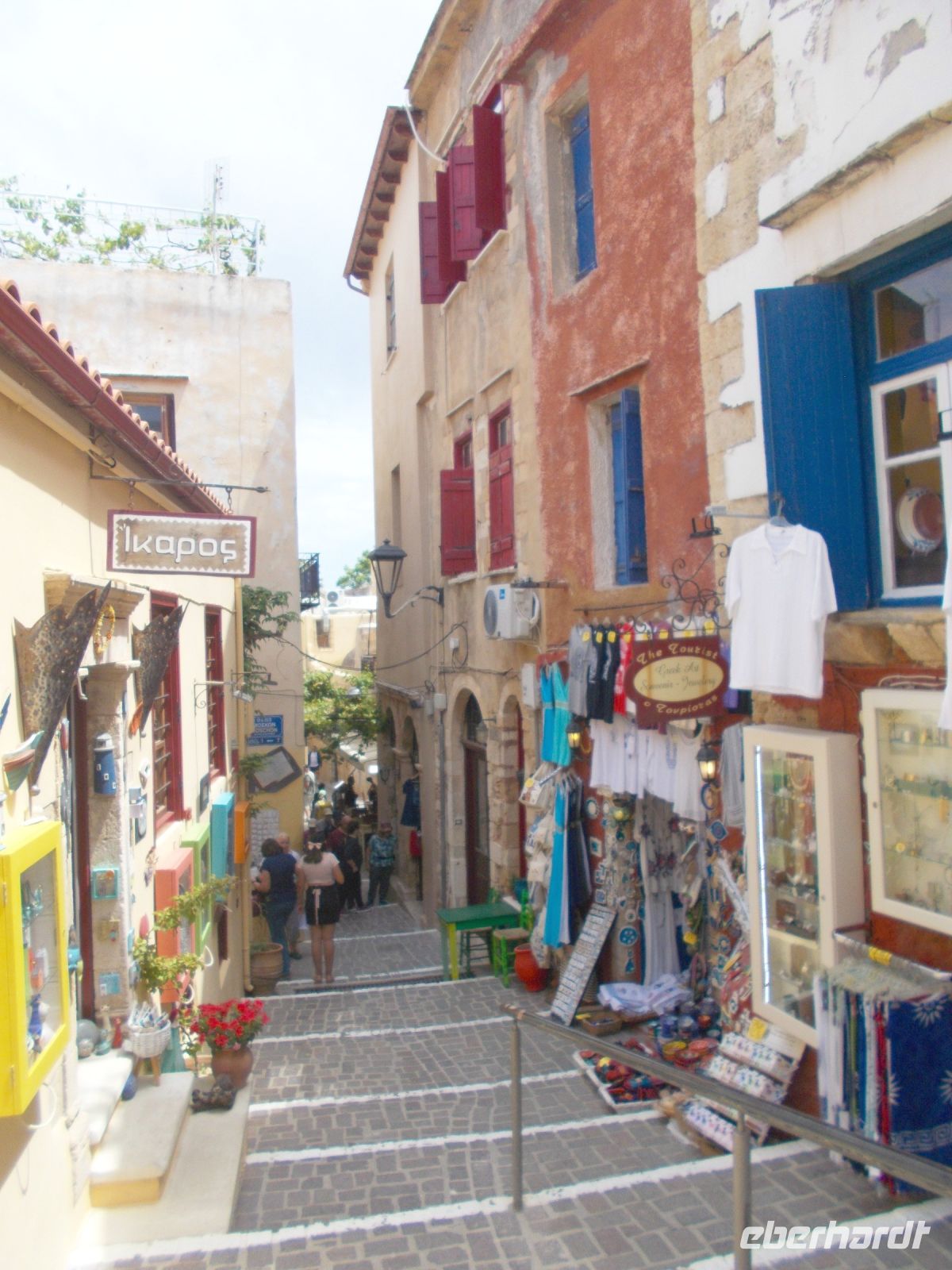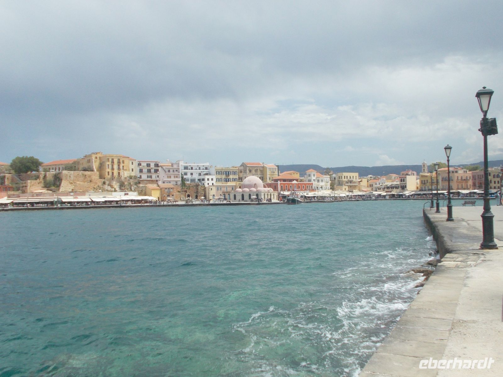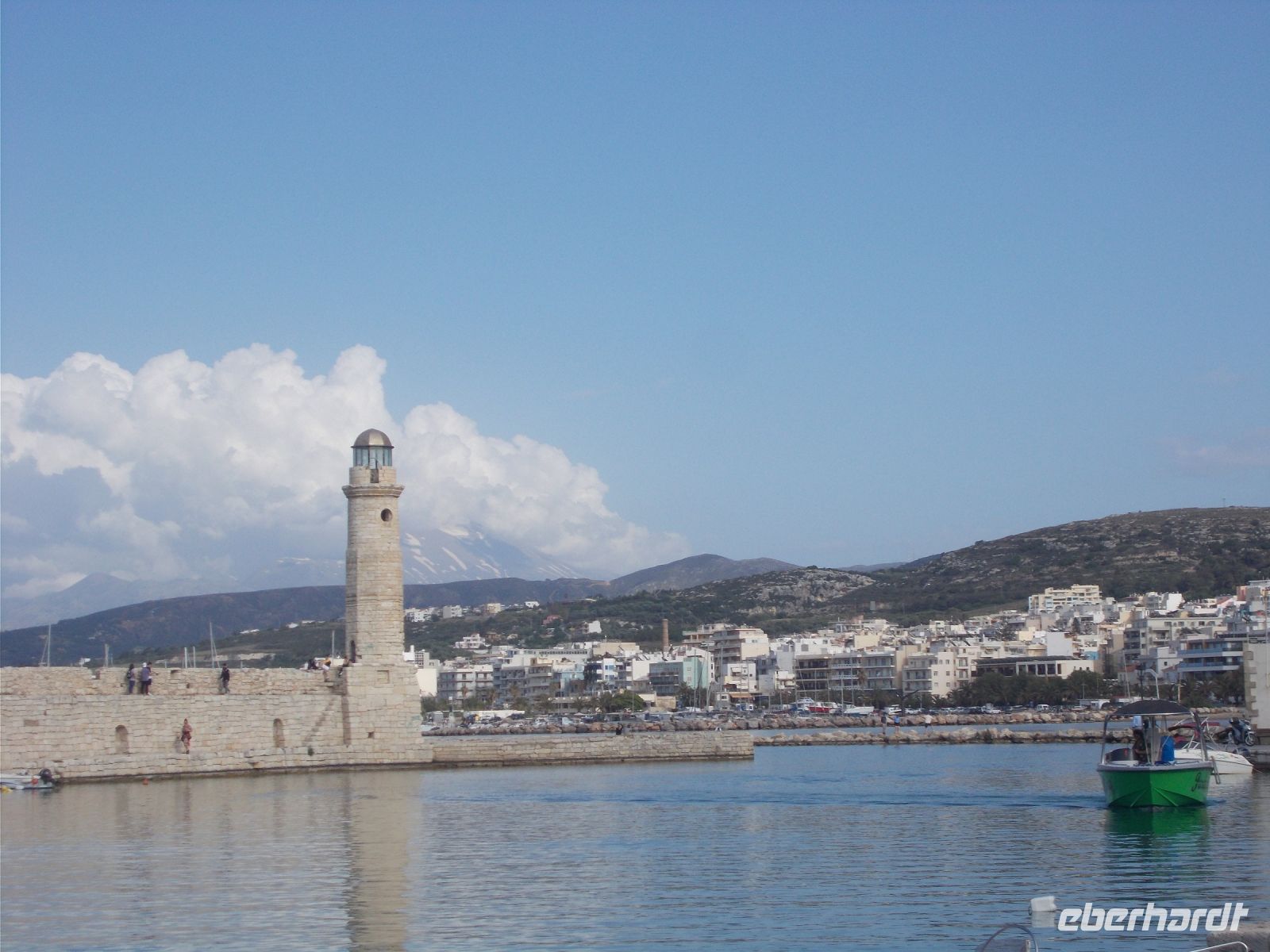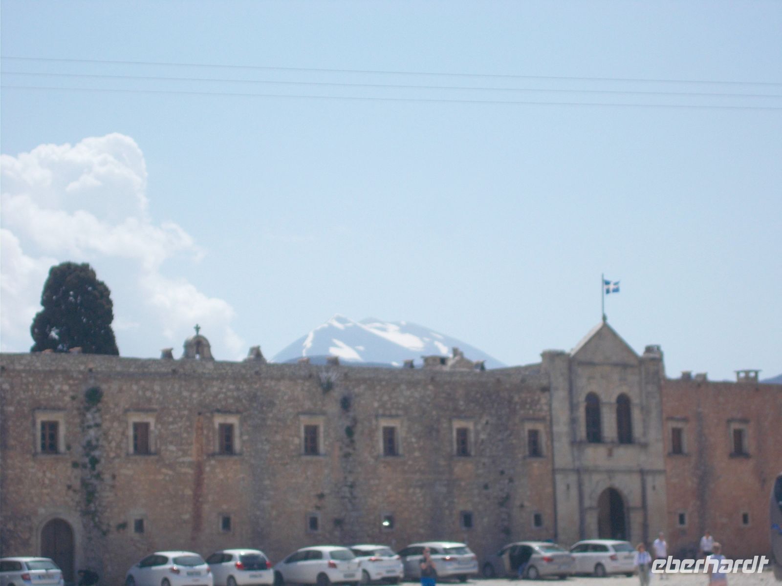 Zur Abwechslung führte uns unsere heutige Route in den West – Zipfel der Insel. Wir fuhren ins Kloster Arkadi. Immer die schneebedeckten Berge, des Ida Gebirges und das Blau des Meeres, im Blick. Das Kloster diente ebenfalls als Festung und wird seit dem Massenselbstmord, von 1866 , als Kriegsdenkmal verehrt. Der Arkadiotiko Schlucht folgten wir bis zur Küstenstraße hinunter. Am Fuße der weißen Berge liegt die Stadt Chania – Kretas Schöne. Es erwartete uns ein venezianischer Hafen und eine Stadt mit verschiedenen Kulturen. Eine Moschee ,eine Kirche und eine Synagoge, eng beieinander gebaut, zeugen heute noch davon. Der markante Leuchtturm, an der belebten Mole, versetzte uns fast nach Venedig. Noch so eine schöne Stadt, sollte uns heute verzücken – Rethimno – die Stadt der Künstler. Über dem Hafen thront die Festung Fortezza. Wir schlenderten über die Uferpromenade und tauchten in die Altstadtgassen, mit den vielfältigen Auslagen, ein. Wir wären gern noch etwas länger geblieben ,aber wir hatten eine längere Heimfahrt vor uns. Etwas erschöpft lauschten wir,nach dem Abendessen, einer griechischen Fokloregruppe und versuchten selbst ein paar Tanzschritte.