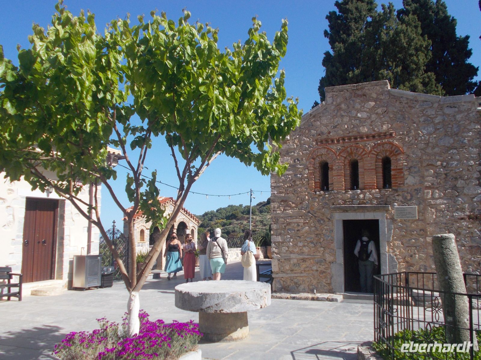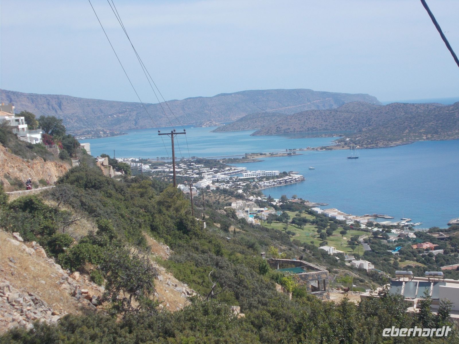 Wenn es schön ist, vergeht die Zeit viel zu schnell. Ein letzter gemeinsamer Ausflug führte uns zum hl.Georg. Das Kloster lag direkt an unserer Strecke. So machten wir einen kleinen Stopp, bevor es zur Insel Spinalonga ging. Wir haben ein Privatboot und der Kapitän umrundet mit uns zunächst die Insel und dann erst gehen wir an Land. Irini weiß wieder viel, zur einstigen Lebrainsel, zu erzählen.Im malerischen Küstendorf Plaka nahmen wir, direkt am Meer sitzend, unser Mittagessen ein. Der Verdauungsspaziergang durfte nicht fehlen. Weiter ging es nach Agios Nicolaos. Am Hafen steht die Skulptur, zur Legende, von Zeus und Europa. Mitten im Ort hat sich der“ See ohne Boden“ gebildet, seine Tiefe : 64 m. Auf der Fahrt zum Hotel besuchten wir noch eine Ölpresse. Wir bekamen einen kleinen Einblick in die Herstellung und Geschmacksrichtungen der verarbeiteten Oliven. Eine Verkostung rundete diesen Besuch ab. Im Hotel trafen wir uns zu einer Abschiedsrunde und stießen mit einem Raki, aus dem Kloster Arkadi, auf diese vergangenen, schönen Urlaubstage an.