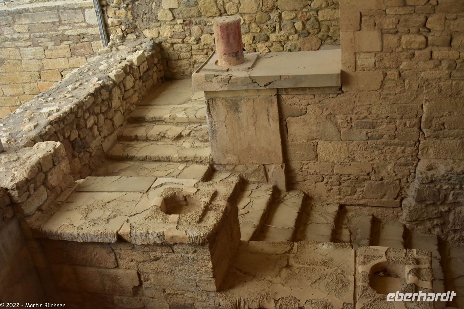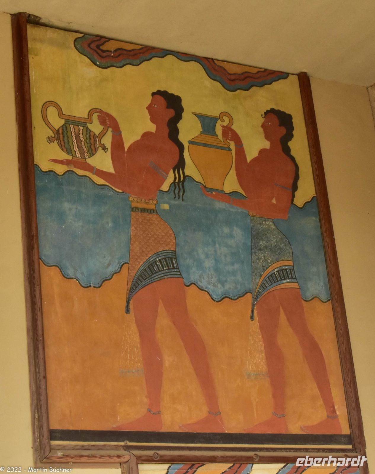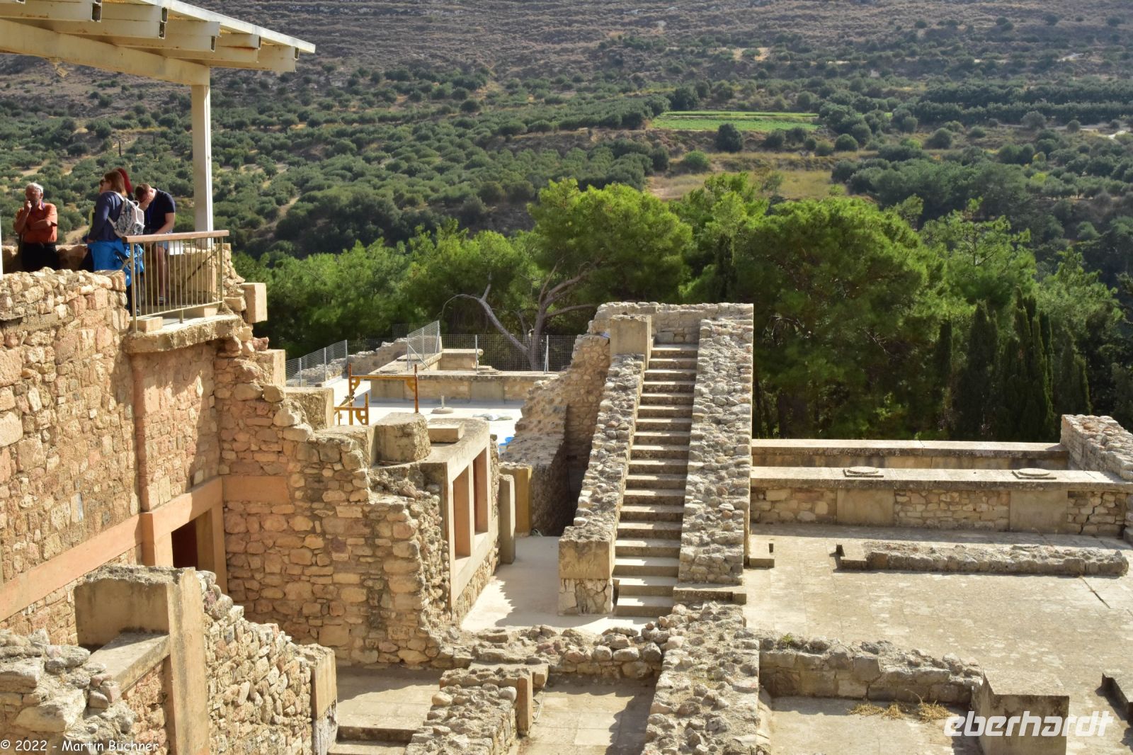 Genau, dass ist es, was man heute sieht. Trotz Phantasie lohnt sich ein Besuch dennoch, weil z. B. viele gefundene Fresken und Darstellungen aus Knossos und anderen minoischen Palästen eingeflossen sind. Aus dieser Perspektive bietet die Anlage einen guten Versuch sich die minoische Hochkultur anschaulicher vorstellen zu können. Man bedenke dabei, dass dies die erste nachgewiesene Hochkultur auf europäischem Boden darstellt. Die ältesten Funde stammen aus der sog. "Alten Palastzeit" die vor etwa 3.700 Jahren begann (ca. 1.700 Jahre v. Chr.) und etwa 200 Jahre andauerte. Die erste Phase wurde vermutlich durch eine Reihe verheerender Erdbeben beendet.