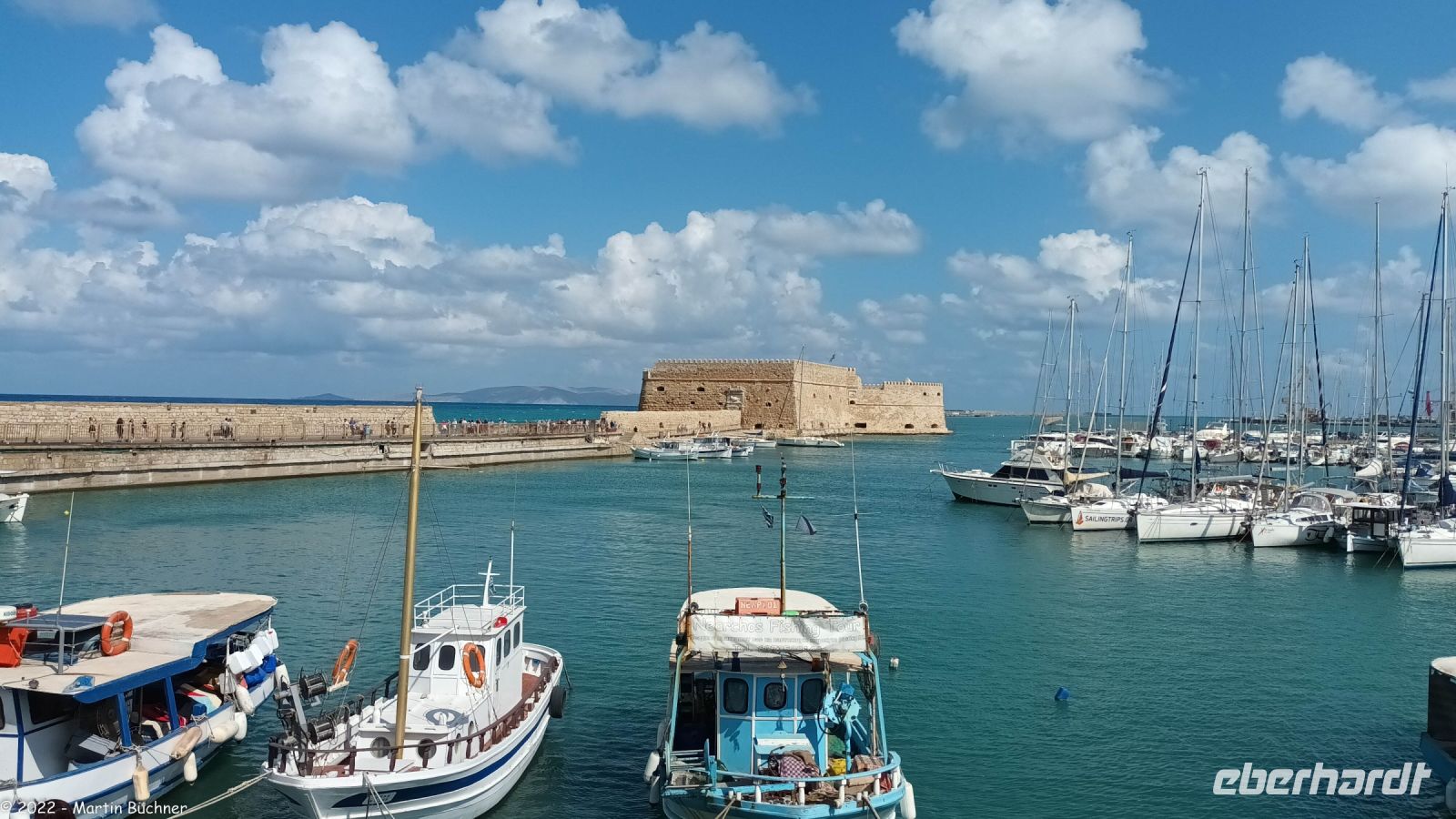 Gegen Mittag erreichen wir das nahegelegene Heraklion, heute Inselhauptstadt. Von Venezianern gegründet, später von Osmanen erobert, bildet sie heute ein Schmelztiegel vergangener und moderner Kulturen. Markant sind die venezianische Stadtmauer und der historische Hafen.