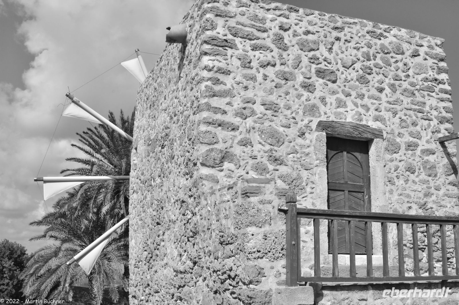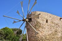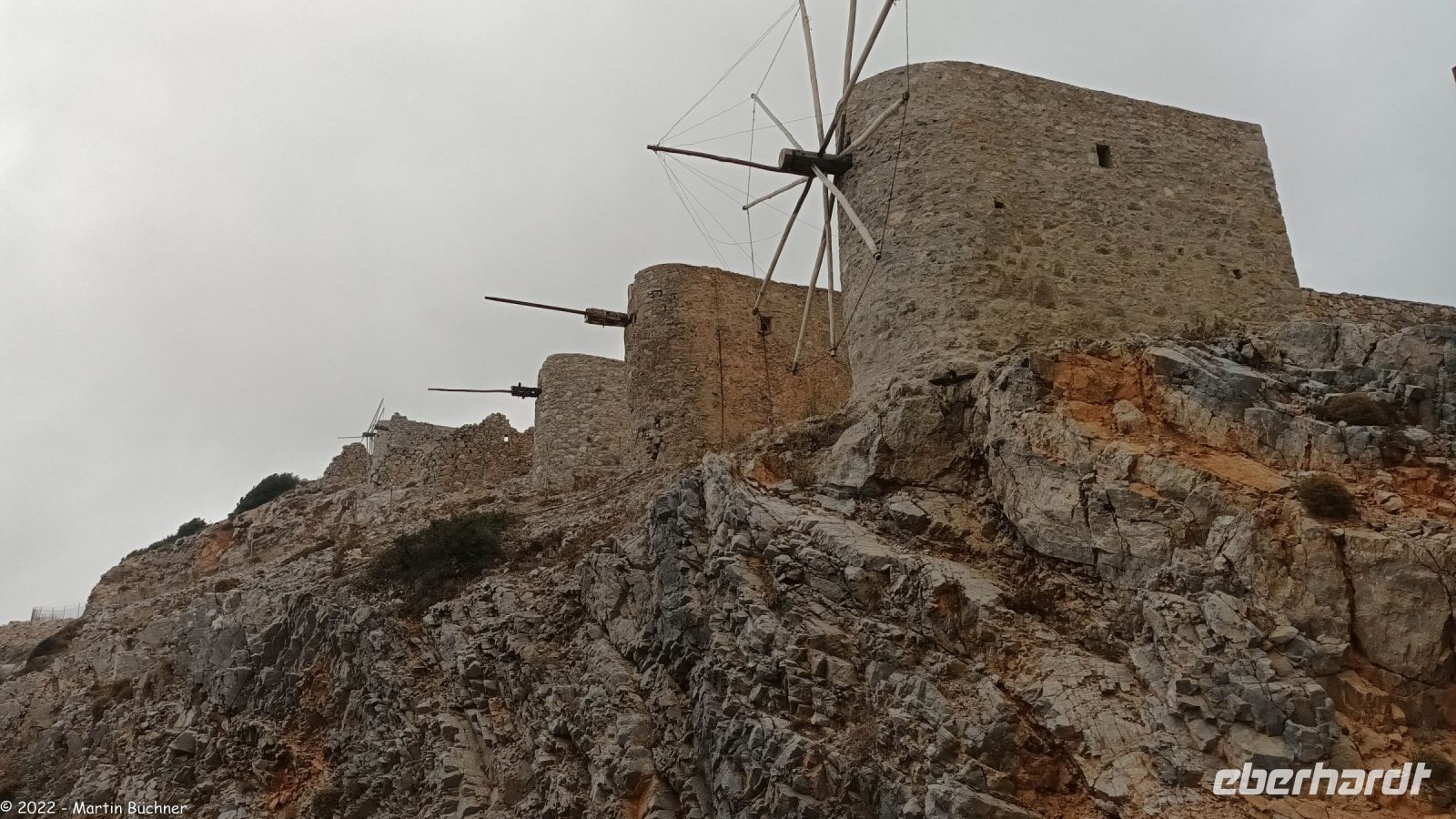 Am Empfang erwartet uns eine traditionelle venezianische Windmühle. Von außen wirken viele Klöster wie Festungen mit hohen Mauern und Verteidigungsanlagen und sogar Kanonen. Feinde gab es viele, algerische Piraten und Sklavenhändler, Osmanen u.v.m.