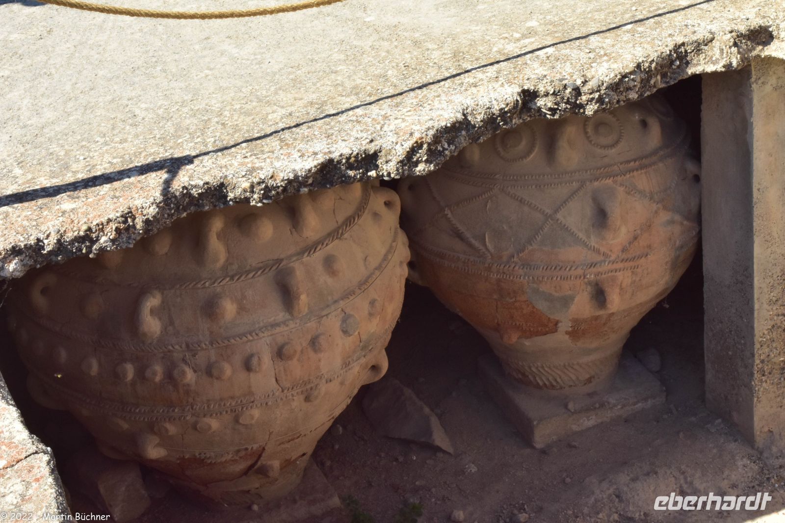 Besonders beeindruckend sind die bestens erhaltenen Vorratsräume. Die riesigen Amphoren stehen dort in den Lagerräumen, als hätten die Minoer erst kürzlich die Stadt verlassen.