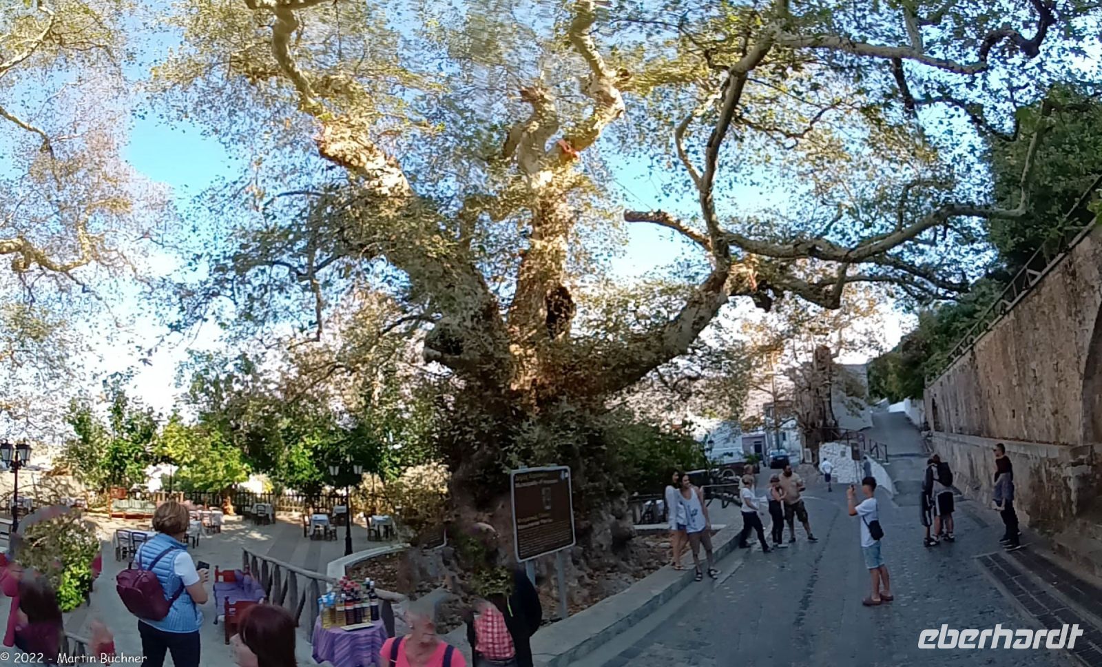Hier verwandelte er sich in einen Adler, um die Prinzessin nach Gortyn zu bringen, wo er sie heiratete und drei Kinder zeugte… wer erinnern uns an die Platane vom Vormittag.