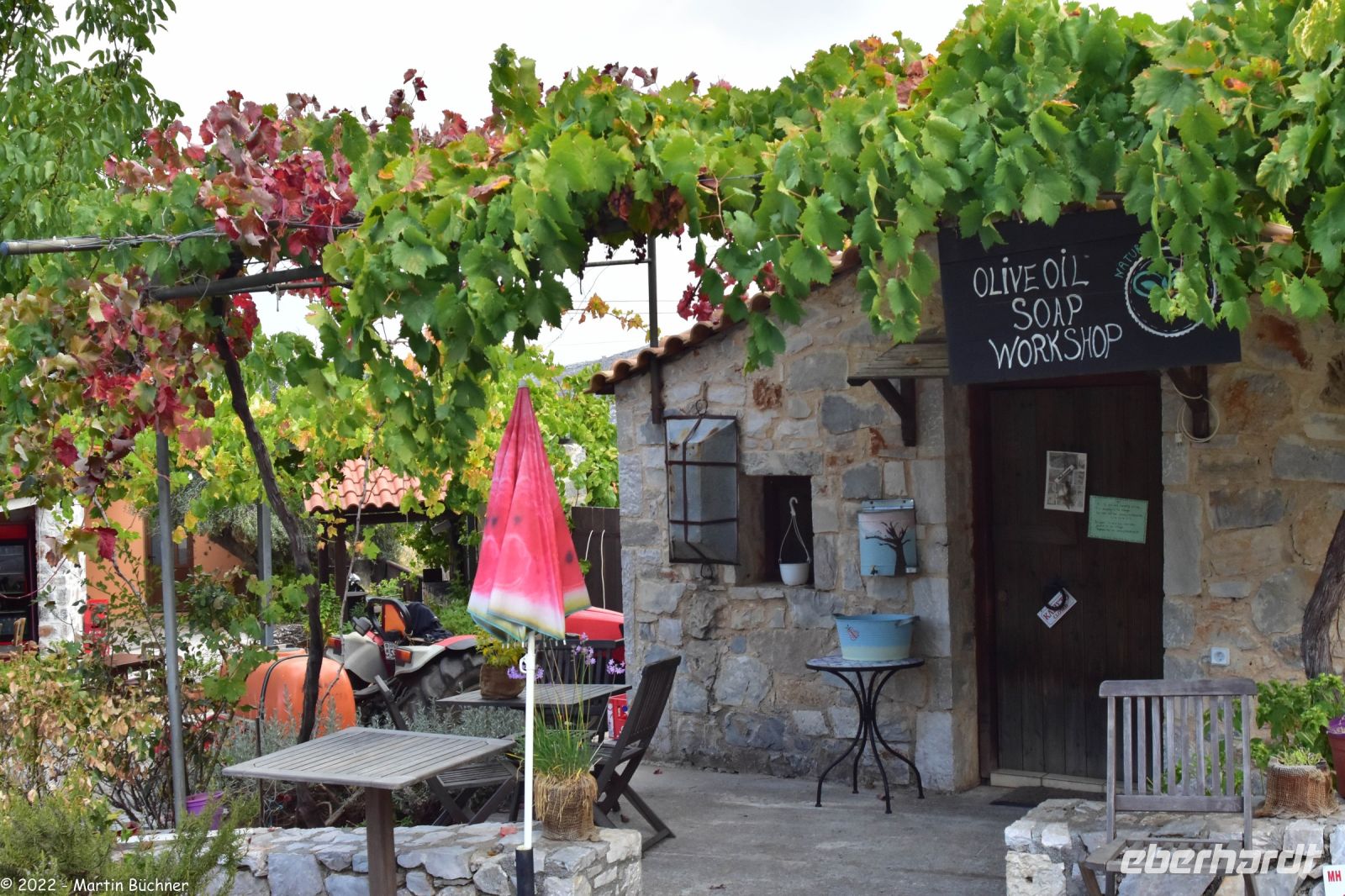 Am Nachmittag besuchen wir eine Ölmühle, in der zahlreiche Olivenprodukte produziert werden und natürlich kretisches Olivenöl auch verkostet wird. Interessante Erkenntnis: Es gibt zwei Olivenarten, von denen es jeweils diverse Sorten gibt. Im mitteleuropäischen Handel sind fast ausschließlich „die großen Oliven“ vorhanden, „die kleinen“ sind nahezu unbekannt. Genau diese kleinen Oliven liefern jedoch das weltberühmte Olivenöl.