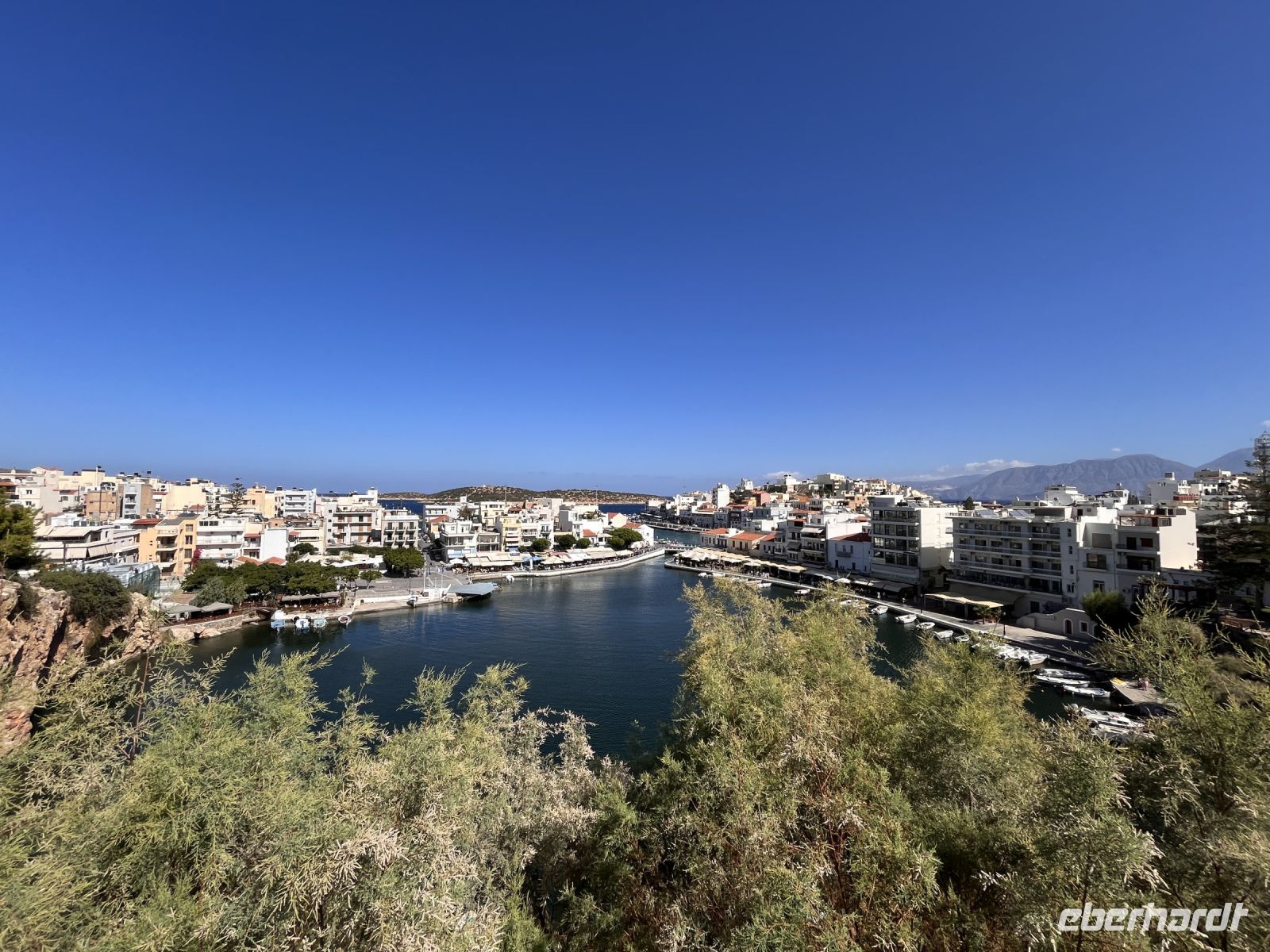 Wir besuchen Elounda, eingebettet zwischen den hohen, schroffen Bergen und dem klaren blauen Meer in der Nähe der Stadt Agios Nikolaos. Von Agios Nikolaos aus fährt man in Richtung Norden der Küstenstraße entlang und nach 6 km erreicht man den höchsten Punkt auf der Strecke. Von dort hatten wir bei der Fahrt nach Spinalonga einen unglaublichen Panorama-Blick auf Elounda und den Golf von Mirabello.