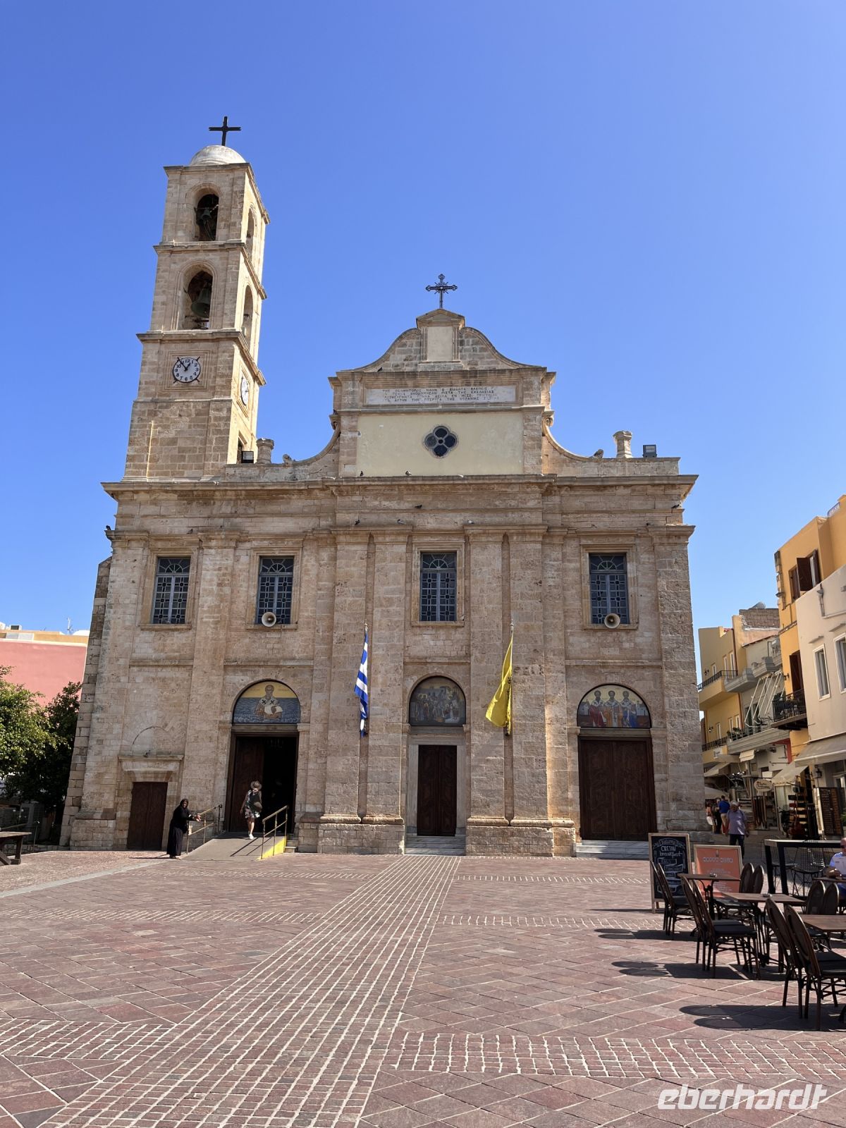 Wir sahen die Agios-Titos-Kirche, dem ersten Bischof von Kreta geweiht, wurde ab 1869 während der Osmanischen Zeit als Moschee errichtet und 1925 als orthodoxe Kirche geweiht. Sie beherbergt mit dem in Gold gefassten Schädel des Heiligen Titos eine hoch verehrte Reliquie.