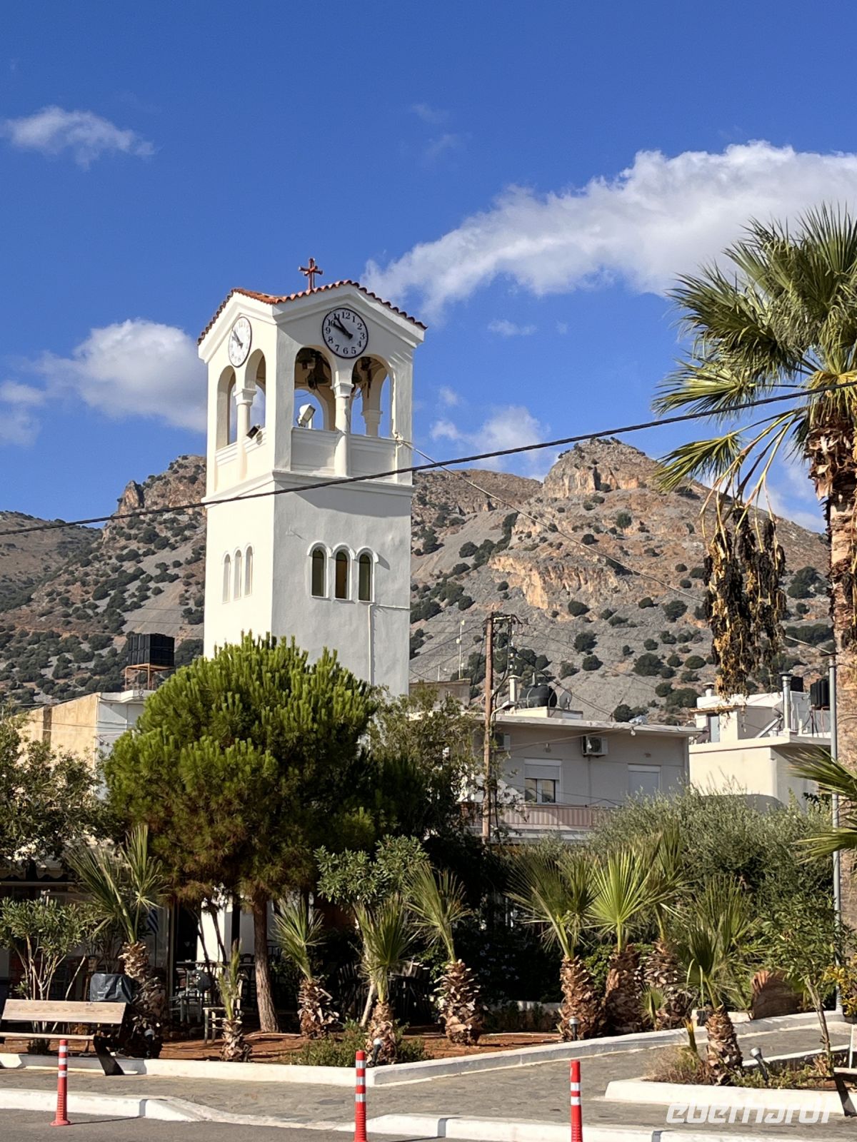 Von der Küste reicht die geschlossene Bebauung nahe dem Stadtzentrum nur bis zu 1,5 Kilometer nach Süden. Das Gemeindegebiet hingegen reicht bis 13 Kilometer ins Inselinnere. Vom südlichsten Punkt der Stadtgemeinde nahe dem 1310 Meter hohen Berg Kryoneritis zur Südküste Kretas am Koraka-Strand bei Rodakino sind es noch etwa fünf Kilometer.