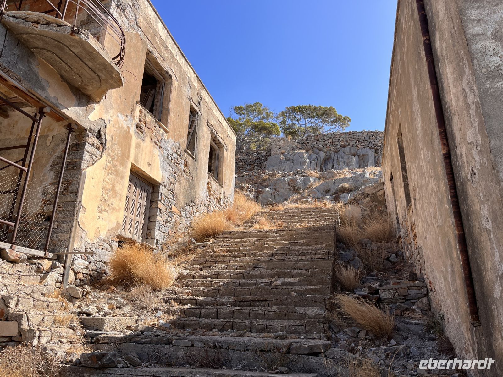 Der Kretische Staat beschloss eine Zwangsunterbringung aller Leprakranken Kretas auf Spinalonga. Die ersten 251 Leprakranken kamen am 13. Oktober 1904 auf die Insel. Nach der Vereinigung Kretas mit Griechenland 1913 folgten weitere aus allen Teilen des Landes. Die Leprakranken lebten zunächst unter schwierigsten Bedingungen auf der Insel und bewohnten die alten Häuser der muslimischen Siedlung. Erst in den 1930er Jahren verbesserte sich die Lage aufgrund verschiedener Initiativen. 1935 lebten etwa 300 Patienten auf Spinalonga. Pro Woche verstarb ungefähr ein Patient und ein neuer Patient erreichte die Insel. Mit staatlichen Mitteln wurden 1939 neue Gebäude errichtet und eine Ringstraße um die Insel angelegt. Dabei wurden Teile der Festungsmauer zerstört.[16] Ab 1948 führte die Anwendung neuer Medikamente auf Spinalonga zu erhöhten Heilungsraten. Ab diesem Zeitpunkt durften geheilte Patienten die Insel verlassen. Bis 1957 war Spinalonga Leprastation und damit eine der letzten Leprakolonien Europas. Der letzte Einwohner, ein Priester, verließ die Insel 1962.