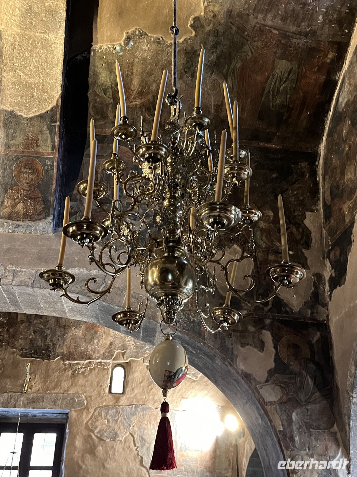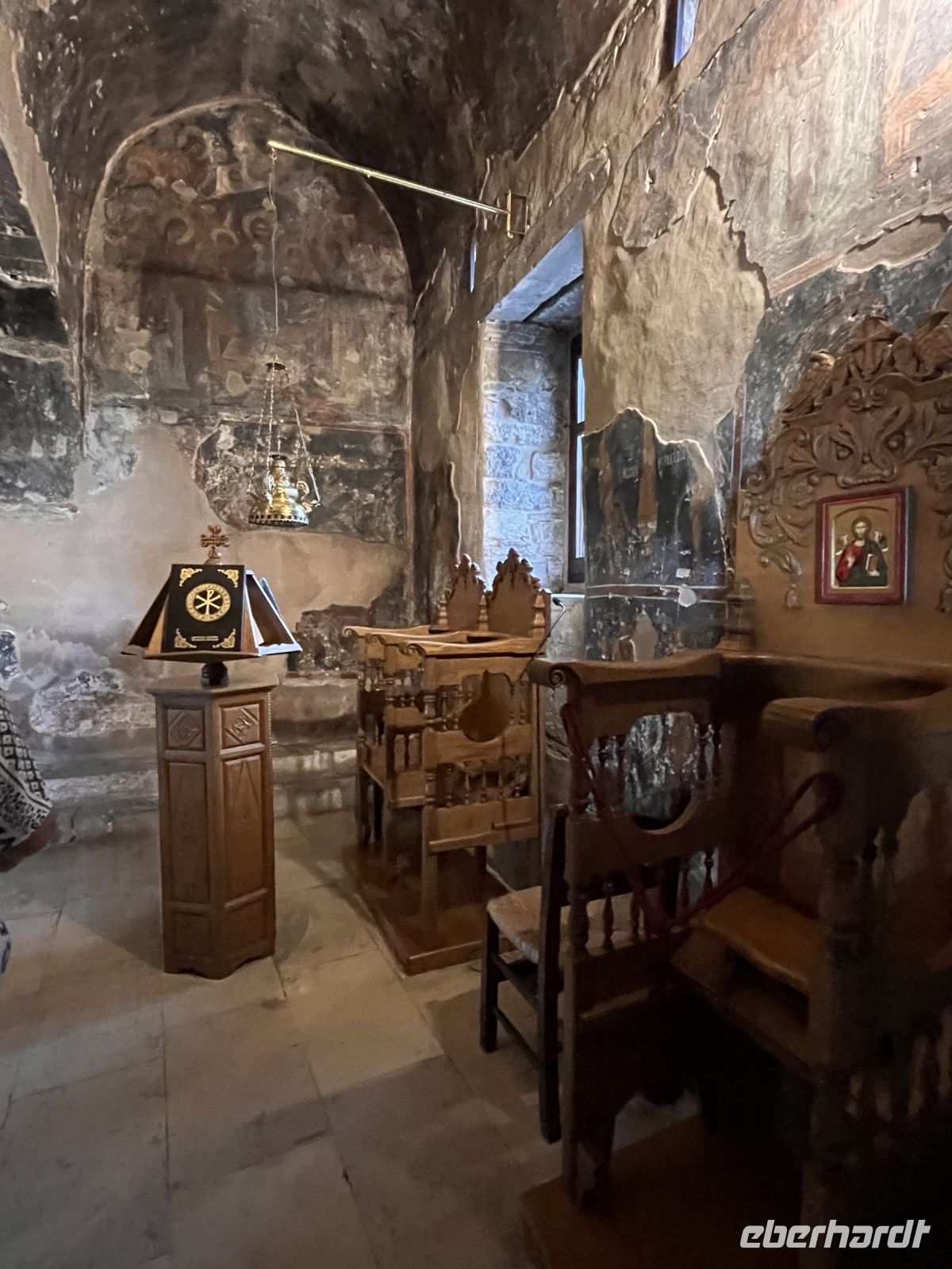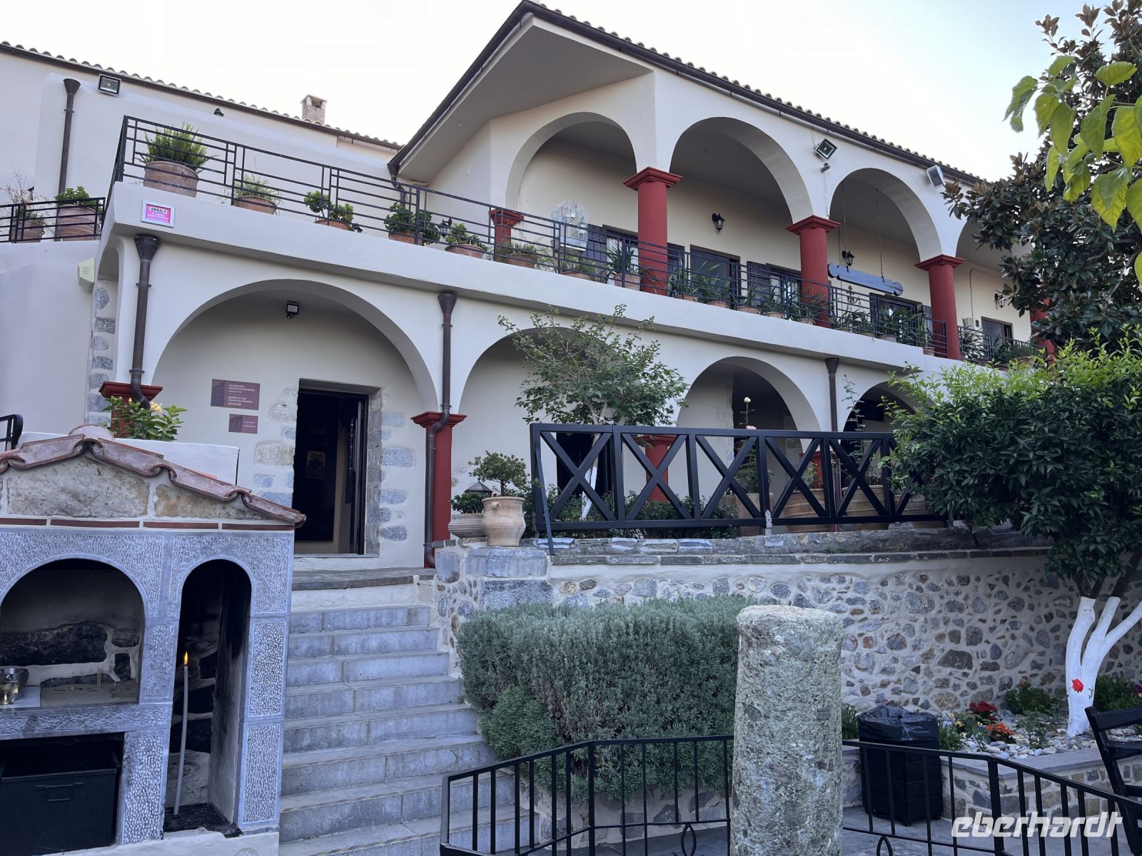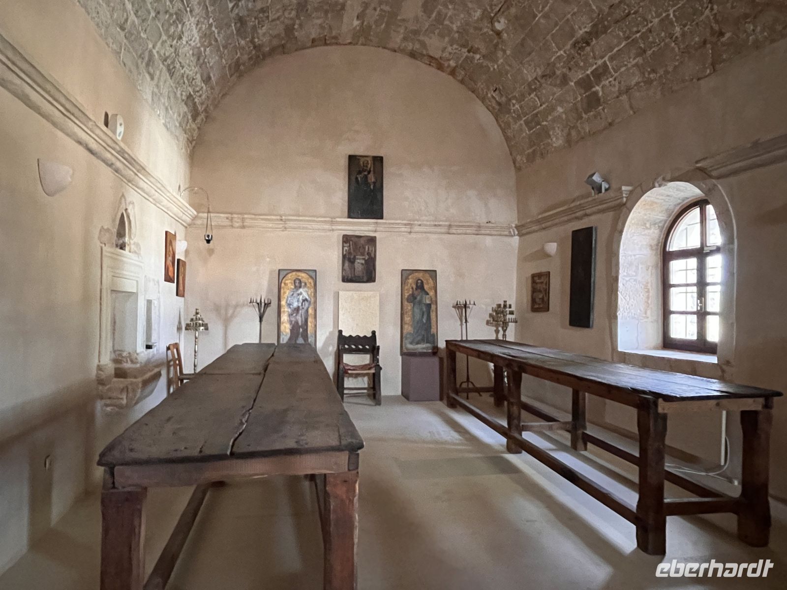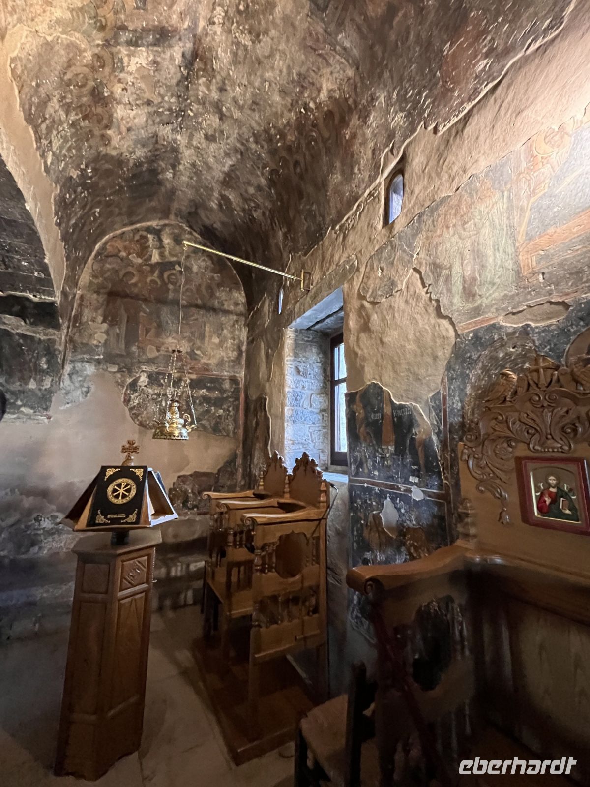 In den 1980er Jahren konnte der Abt des Klosters einen der wenigen Freskenmaler, die noch in Griechenland tätig sind, für das Kloster gewinnen. Der auf einen Rollstuhl angewiesene Manolis Betinakis fertigte bis 1997 verschiedene Fresken, welche die Apostelgeschichte darstellen, in kräftigen Farben und von höchster Kunstfertigkeit geprägt.