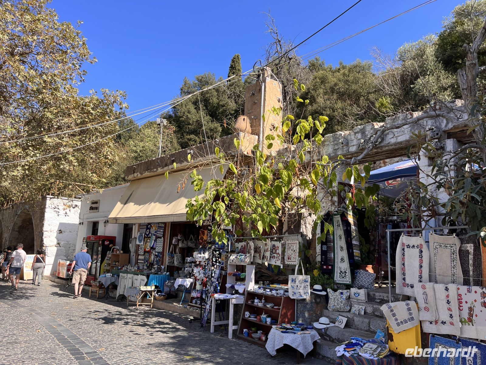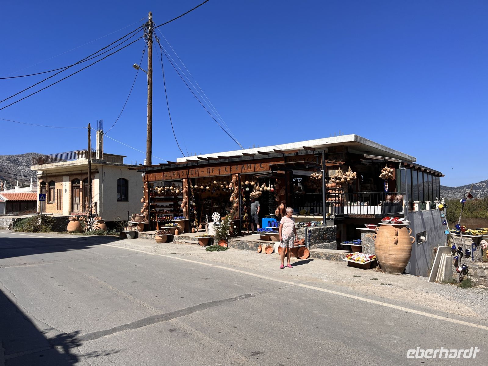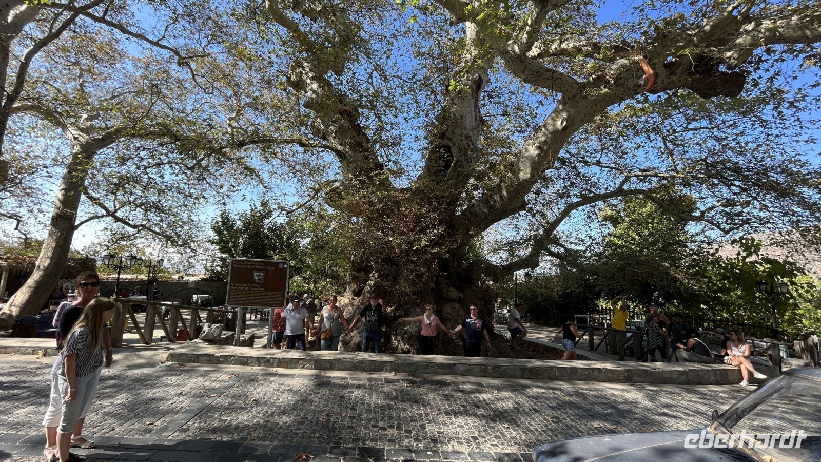 Auf der Rückfahrt zum Hotel besuchen wir in Psychro eine Keramikwerkstatt und sehen wie die typische Keramik der Region hergestellt wird. Hier können wir auch das in Manufaktur hergestellte Olivenöl kaufen. Wir bewundern die für die Region typischen Windmühlen und fahren weiter in den Ort Krasi, wo die größte Platane Kretas steht. Sie wird auf ein Alter von 1800 bis 2000 Jahren geschätzt und hat einen Stammumfang von etwa 20 m. Gegenüber der Platane ist ein Brunnen aus venezianischer Zeit mit zwei Becken erhalten. Dem Quellwasser wird heilende Wirkung nachgesagt.