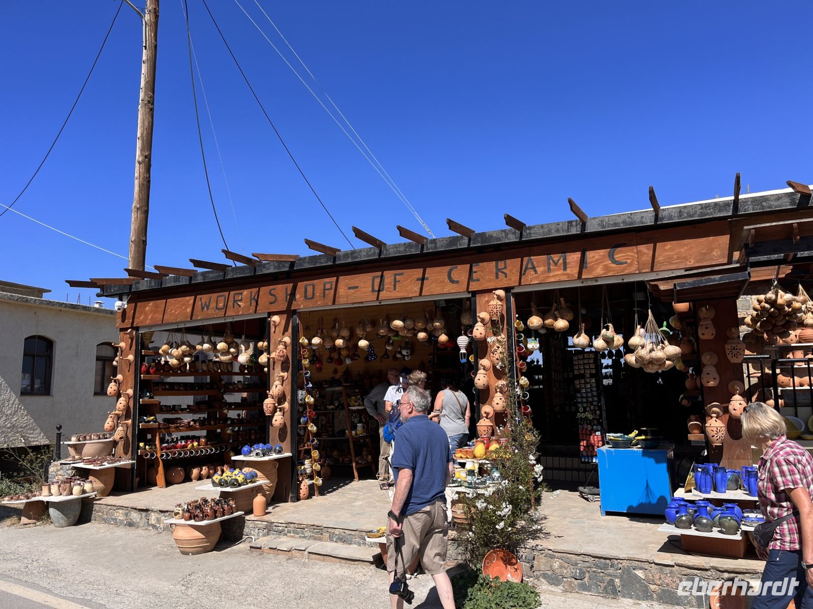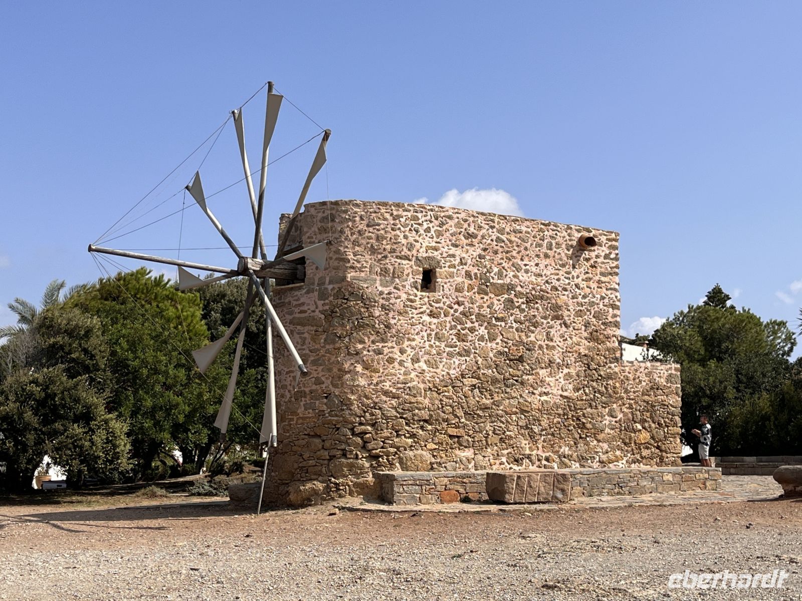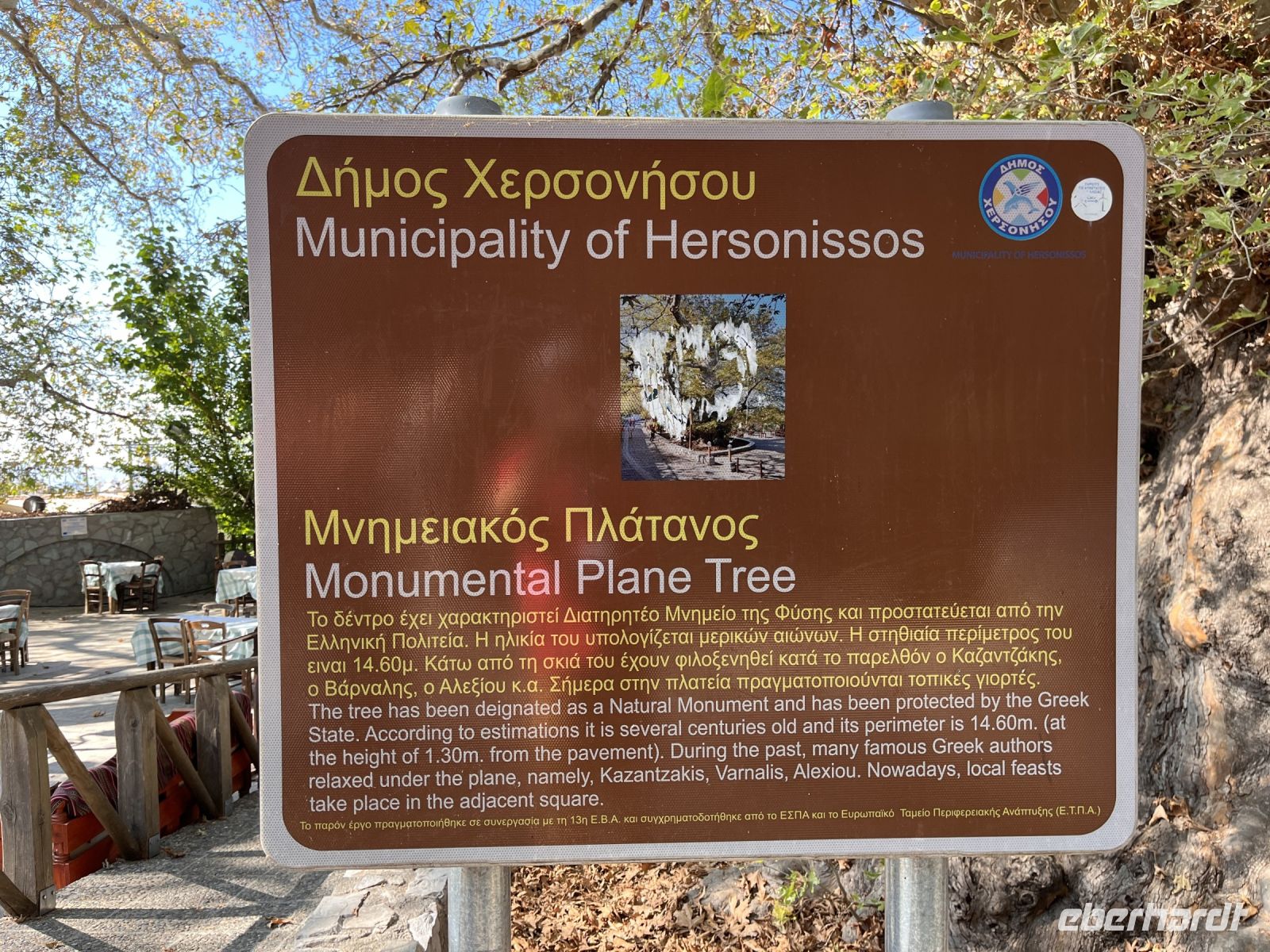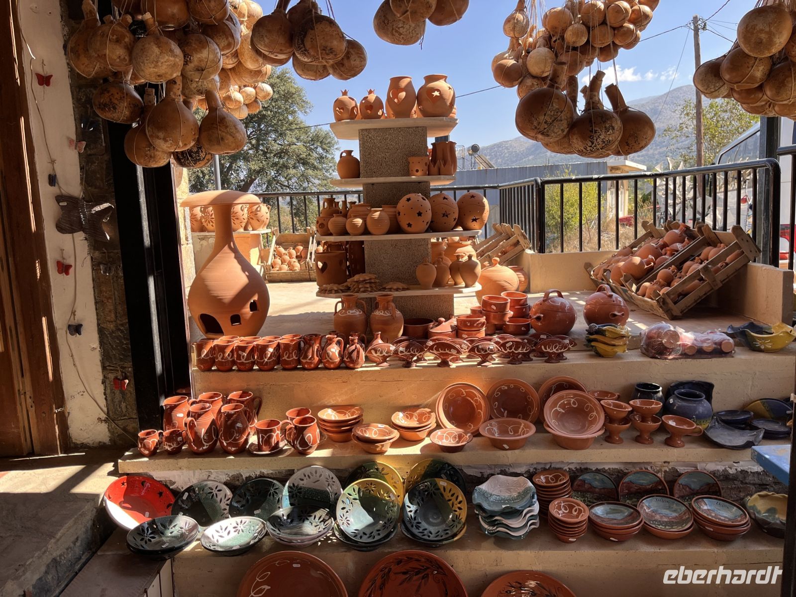 Auf der Rückfahrt zum Hotel besuchen wir in Psychro eine Keramikwerkstatt und sehen wie die typische Keramik der Region hergestellt wird. Hier können wir auch das in Manufaktur hergestellte Olivenöl kaufen. Wir bewundern die für die Region typischen Windmühlen und fahren weiter in den Ort Krasi, wo die größte Platane Kretas steht. Sie wird auf ein Alter von 1800 bis 2000 Jahren geschätzt und hat einen Stammumfang von etwa 20 m. Gegenüber der Platane ist ein Brunnen aus venezianischer Zeit mit zwei Becken erhalten. Dem Quellwasser wird heilende Wirkung nachgesagt.