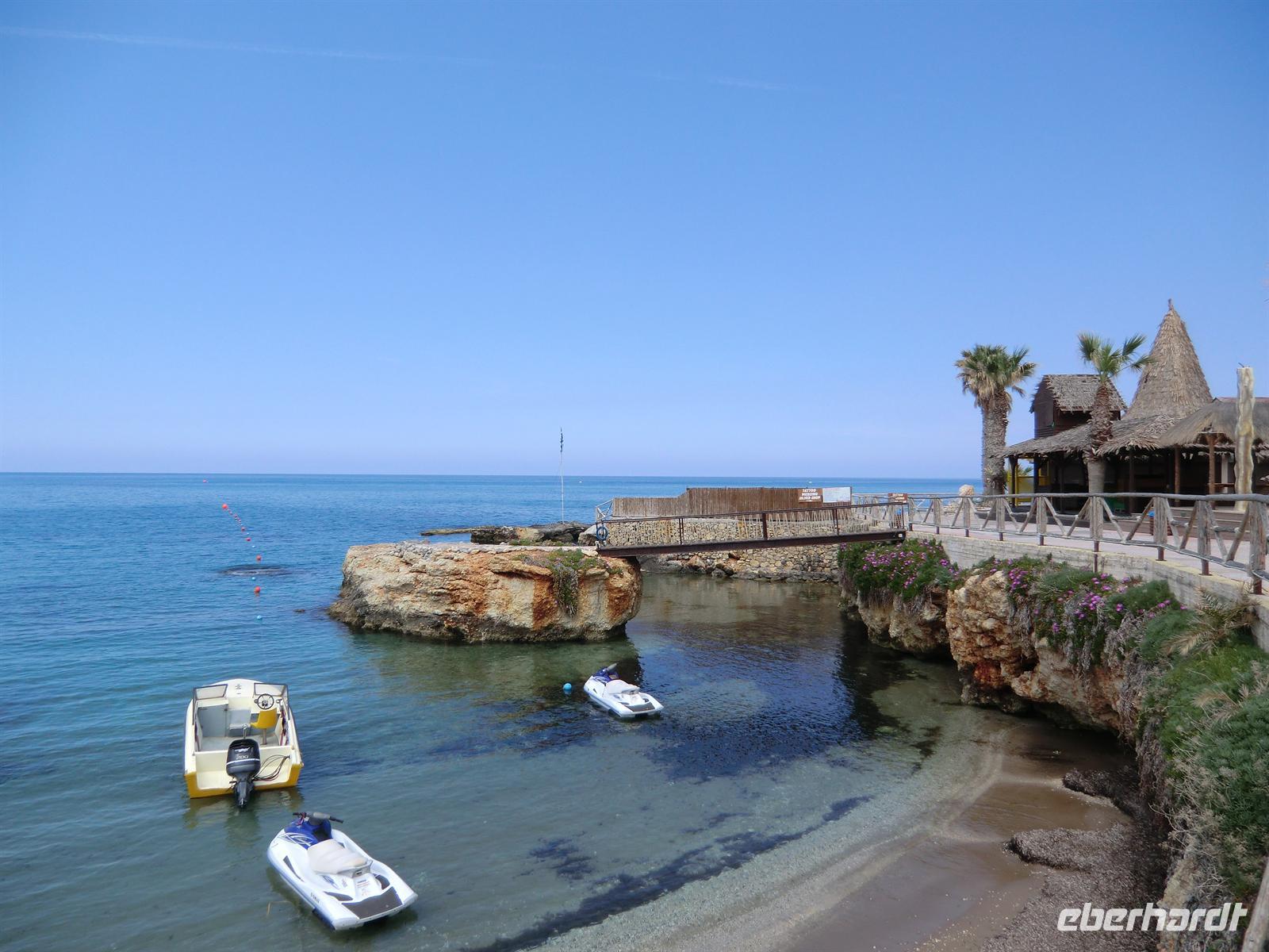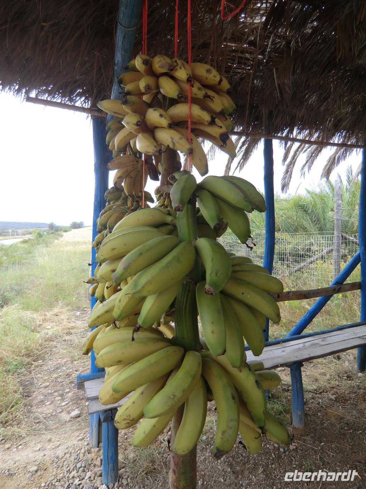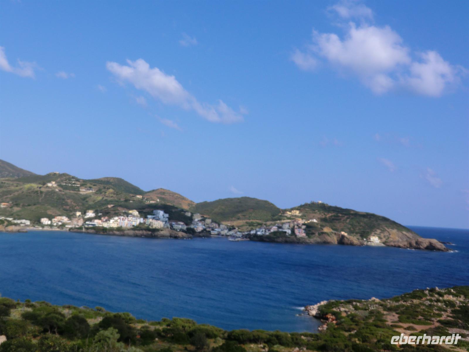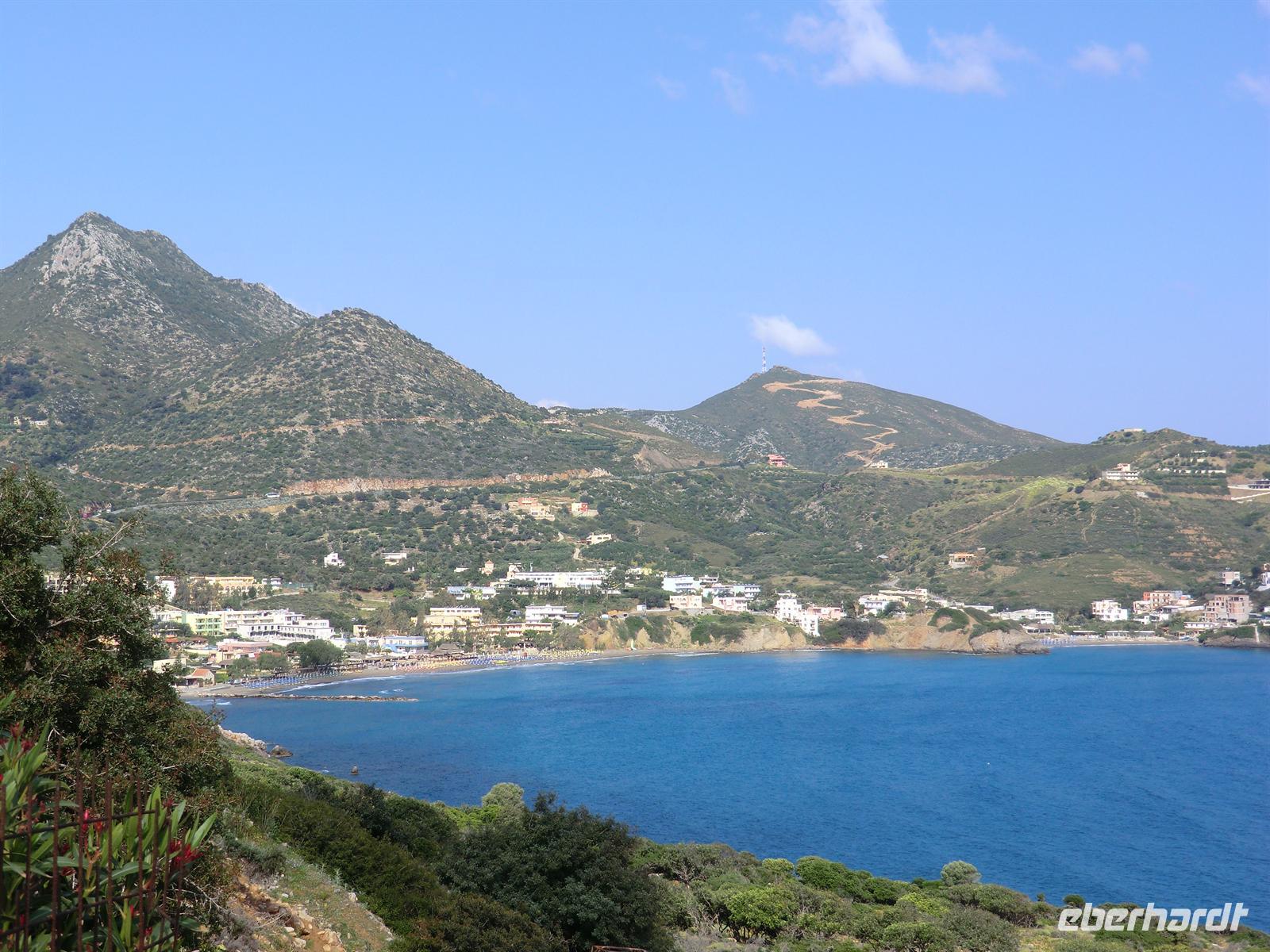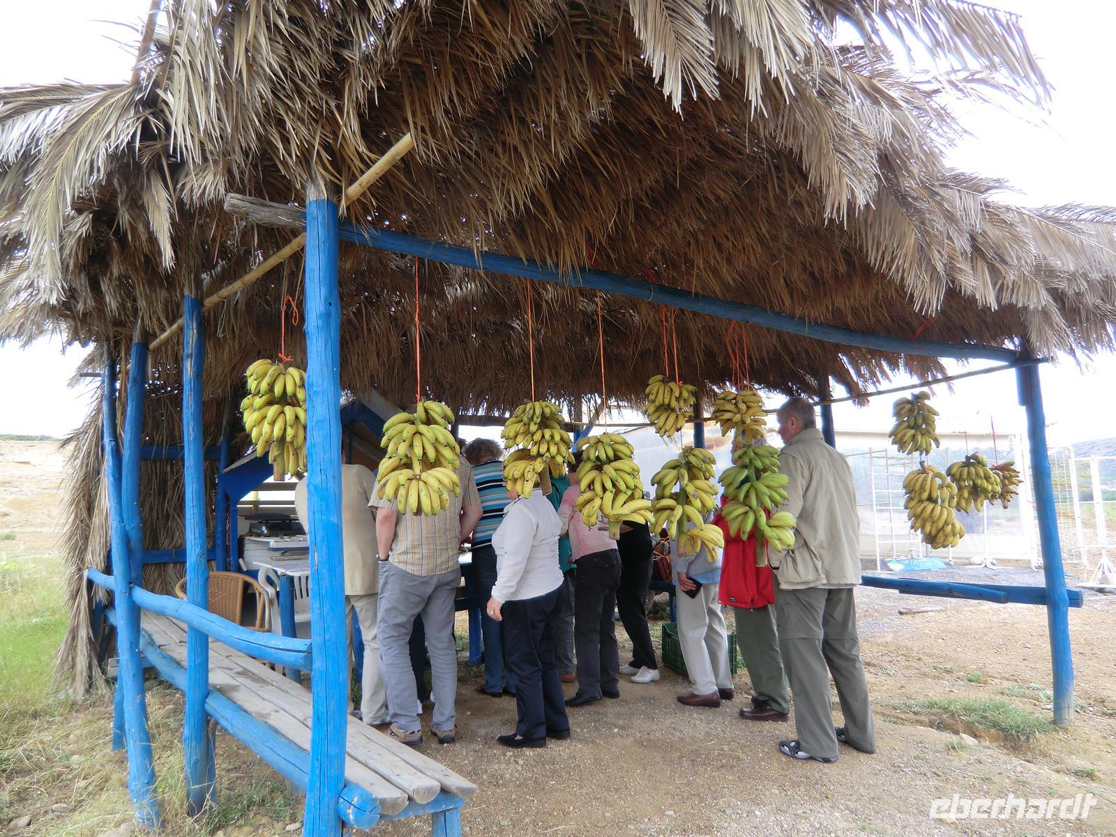 14:20 Uhr saßen wir wieder im Bus und machten kurz darauf Halt an einem Bananenstand. Verkauft wurden köstlich süße Bananen, die in den zahlreichen Gewächshäusern der Region angebaut werden. Gegen 15 Uhr erreichten wir dann erneut das Städtchen Sitia. Diesmal unternahmen wir einen kleinen Spaziergang entlang der Hafenpromenade mit ihren gemütlichen Restaurants, Cafés und Boutiquen. Auf der Rückfahrt zum Hotel machten wir einen kleinen Fotostopp am Berg, ehe wir erneut hinunter zur Küste fuhren. So konnten wir die kleinen vorgelagerten Inseln, die zahlreichen kleinen Buchten und die mit Olivenbäumen übersäten Hänge auf uns wirken lassen.