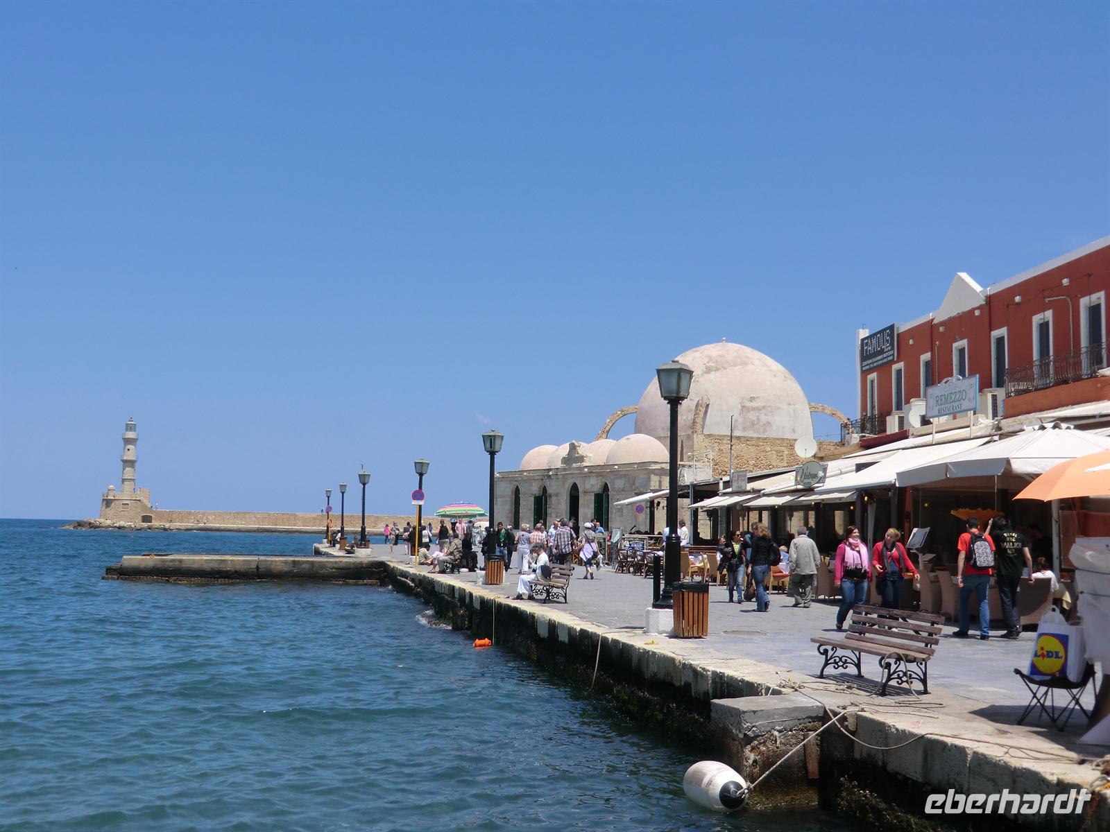 12:25 Uhr erreichten wir die Hafenstadt Chania. Mit ca. 60.000 Einwohnern ist Chania nach Heraklion die zweitgrößte Stadt der Insel. Unser Bus machte vor der städtischen Markthalle halt. Beim Durchlaufen durften wir bereits köstliche gebrannte Nüsse mit Sesam knabbern. Weiter liefen wir entlang der Hauptgeschäftsstraße vorbei an der Kathedrale bis zum Hafen. Zahlreiche Boutiquen, Restaurants und der Blick auf die Moschee machen das besondere Flair des Ortes aus. Im Restaurant „Lithos“ genossen wir ein leckeres griechisches Mittagessen, bevor wir auf individuelle Weise den schönen Ort auf uns wirken ließen. Sei es beim Kaffeetrinken, Bummeln oder Shoppen.