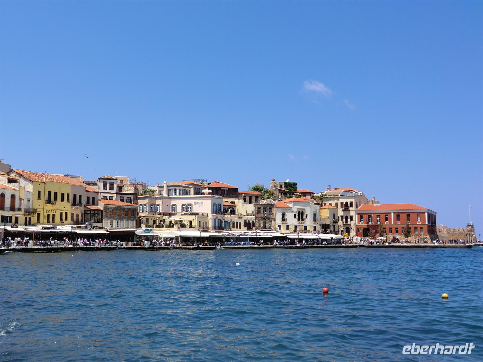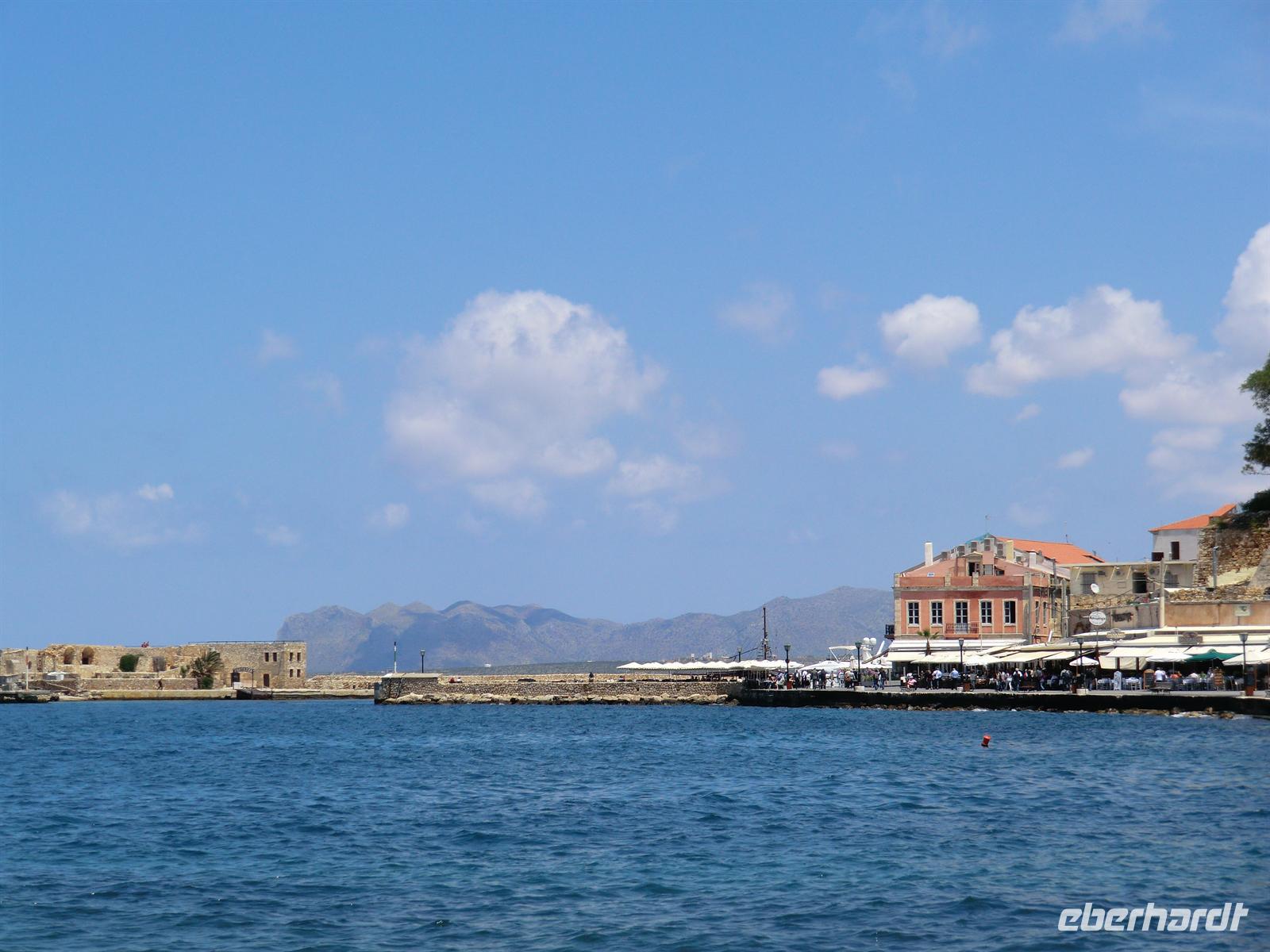 10 Uhr erreichten wir den Hafen von Elouda, von wo aus unser Boot ablegte, um uns auf die Insel Spinalonga zu bringen. Das ehemals unter dem Namen „Lepra-Insel“ bekannte Eiland hat einen Umfang von etwa einem Kilometer und ist daher bequem zu Fuß zu umrunden. Auch wir folgten Rena über diese Insel und lernten die beeindruckende Baukultur der ehemaligen Bewohner kennen. Bei wunderbarem Sonnenschein schipperten wir 11:45 Uhr zurück über das türkisblaue kristallklare Wasser zum Hafen, wo bereits Nektarius auf uns wartete, um uns zurück nach Hersonissos zu bringen. Im Hotel angekommen erwartete uns bereits ein reichhaltiges und gleichzeitig köstliches Mittagsbuffet. So waren wir gestärkt für unseren freien sommerlichen Nachmittag, den wir am Strand, am Pool oder auf der schattigen Terrasse unserer Zimmer genossen.
