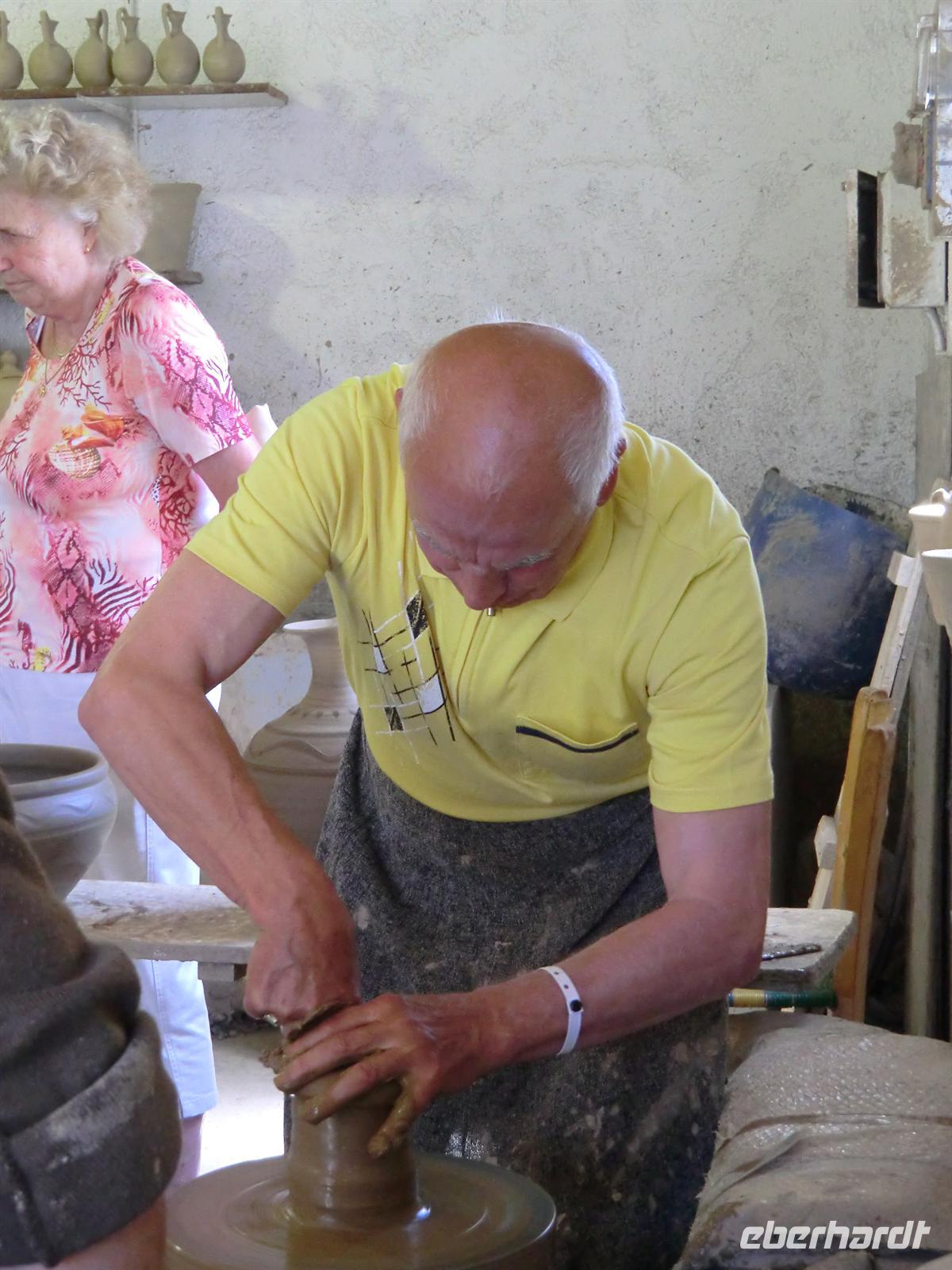 Bei schönstem Sonnenschein und blauem Himmel starteten wir heute zum zweiten fakultativen Ausflug der Reise, an dem zu meiner Freude wieder unsere ganze Gruppe teilnahm. 9 Uhr begann die Fahrt ins Inselinnere. Unser erster Halt folgte bereits nach einer halben Stunde Fahrt in Peza, wo uns die Herstellung von Wein und Olivenöl innerhalb der Region nähergebracht wurde. Anschließend probierten wir uns durch das Angebot an Weiß-, Rosé-, Rotwein, Ouzo und Raki, um frisch beschwingt die Tour fortzusetzen. Nach nur 15 Minuten folgte die nächste Attraktion in Form einer Töpferei. Nachdem uns der Töpfermeister mit flinken Handgriffen die Herstellung einer Vase und eines Blumentopfes demonstrierte, durfte Herr Bartsch sein Glück mit dem Ton versuchen. Auch wenn sein zylinderförmiger Topf am Ende keinen Boden hatte, so hat er doch eine gute Figur an der Drehscheibe gemacht.