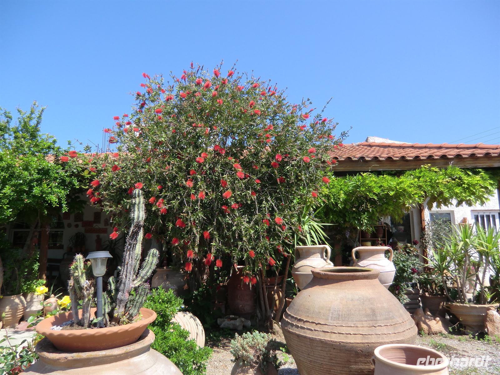 Erneut erwachten wir umgeben von herrlicher Seeluft und begrüßten den Tag bei einem köstlichen Frühstück im Hotelrestaurant. 8:15 Uhr starteten wir dann zusammen mit unserem Fahrer Nektarius am Hotel. Rena stieg in der Nähe ihres Wohnortes zu und begrüßte uns erneut mit dem bereits einstudierten griechischen Liedchen. Entlang der Küste ging es weiter Richtung Westen. Auf einer Anhöhe machten wir Halt an einem Aussichtspunkt, der umgeben von prachtvoll blühenden Rhododendronsträuchern einen wunderbaren Blick auf die Küste mit der Bucht von Bali und das tiefblaue Meer bot.