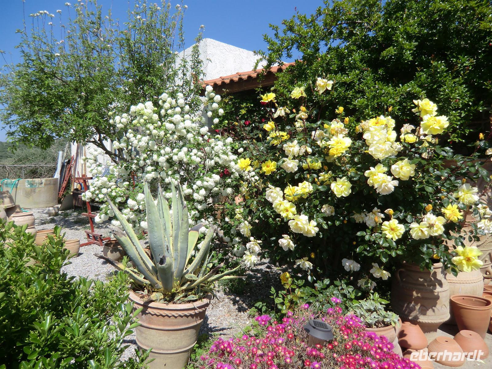 Auf unserer Weiterfahrt erzählte uns Rena einen Schwank aus dem griechischen Alltagsleben. Die Rolle der Frau ist in ländlichen Gegenden noch sehr konservativ behaftet. Während die Männer ihre freie Zeit in Cafés beim Kaffeetrinken und politischen Grunddiskussionen verbringen, hält die Frau mit den Nachbarinnen ein Schwätzchen bei Kaffee und Kuchen und sorgt daheim für die Erziehung der Kinder und den Haushalt. Stirbt der Mann einer kretischen Frau, so trägt sie den Rest ihres Lebens schwarz. In jungen Jahren ist es ihr erlaubt, 2 weitere Male zu heiraten. Dies trifft auch auf den Fall einer Scheidung zu.