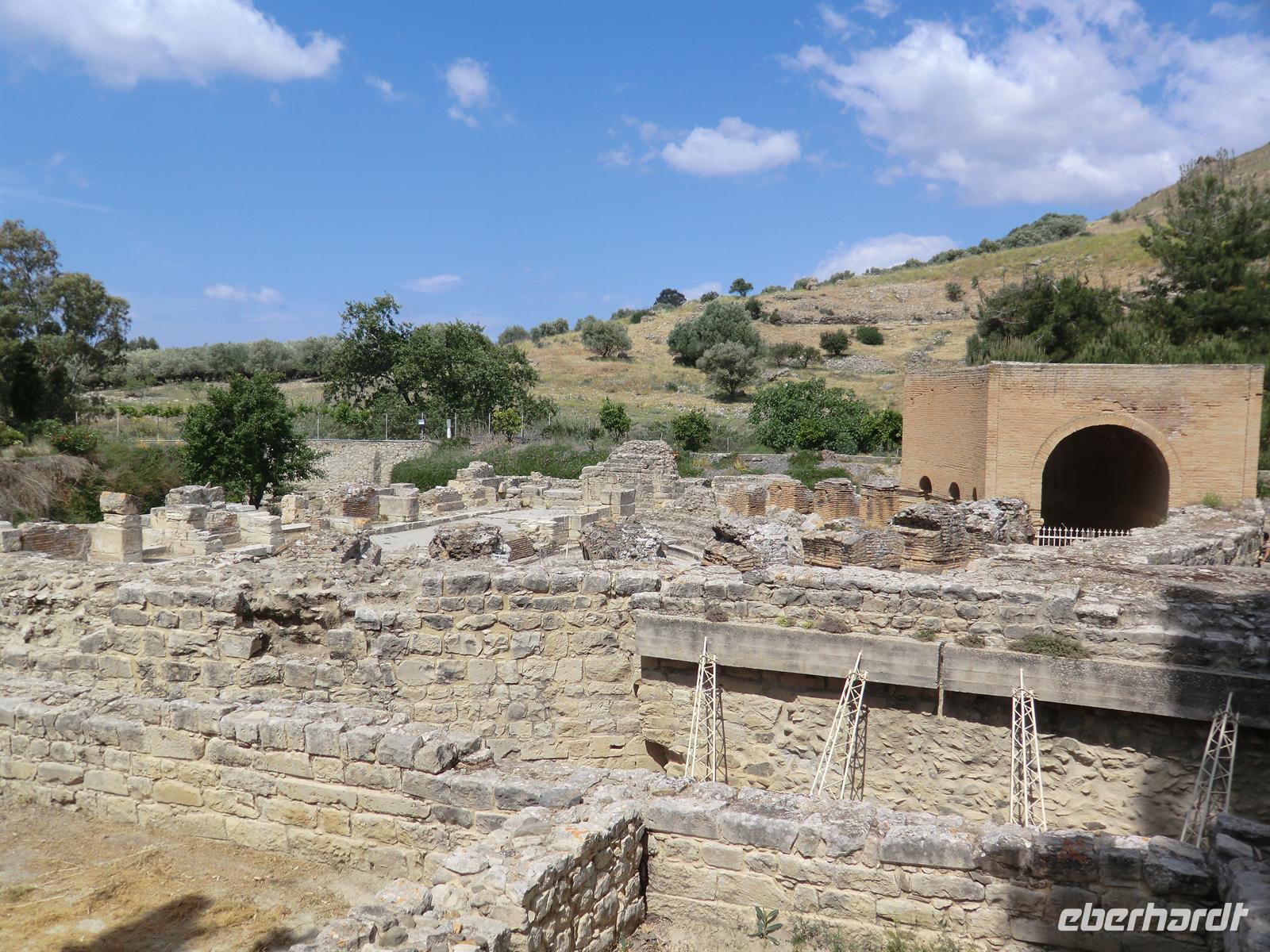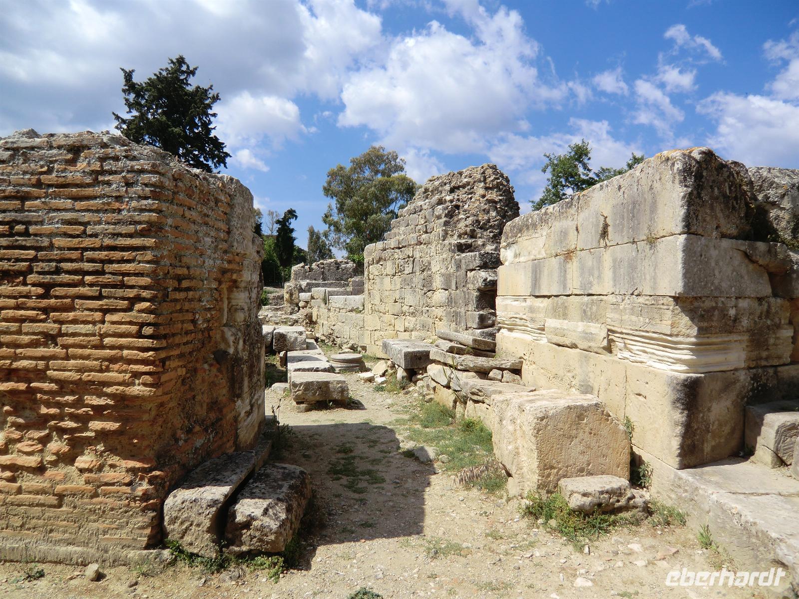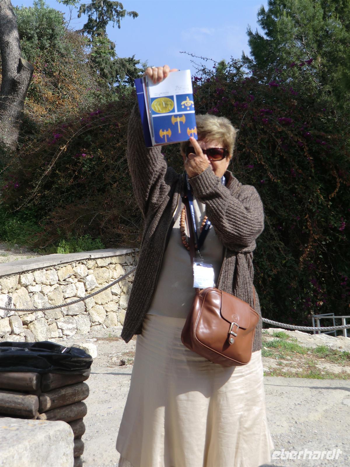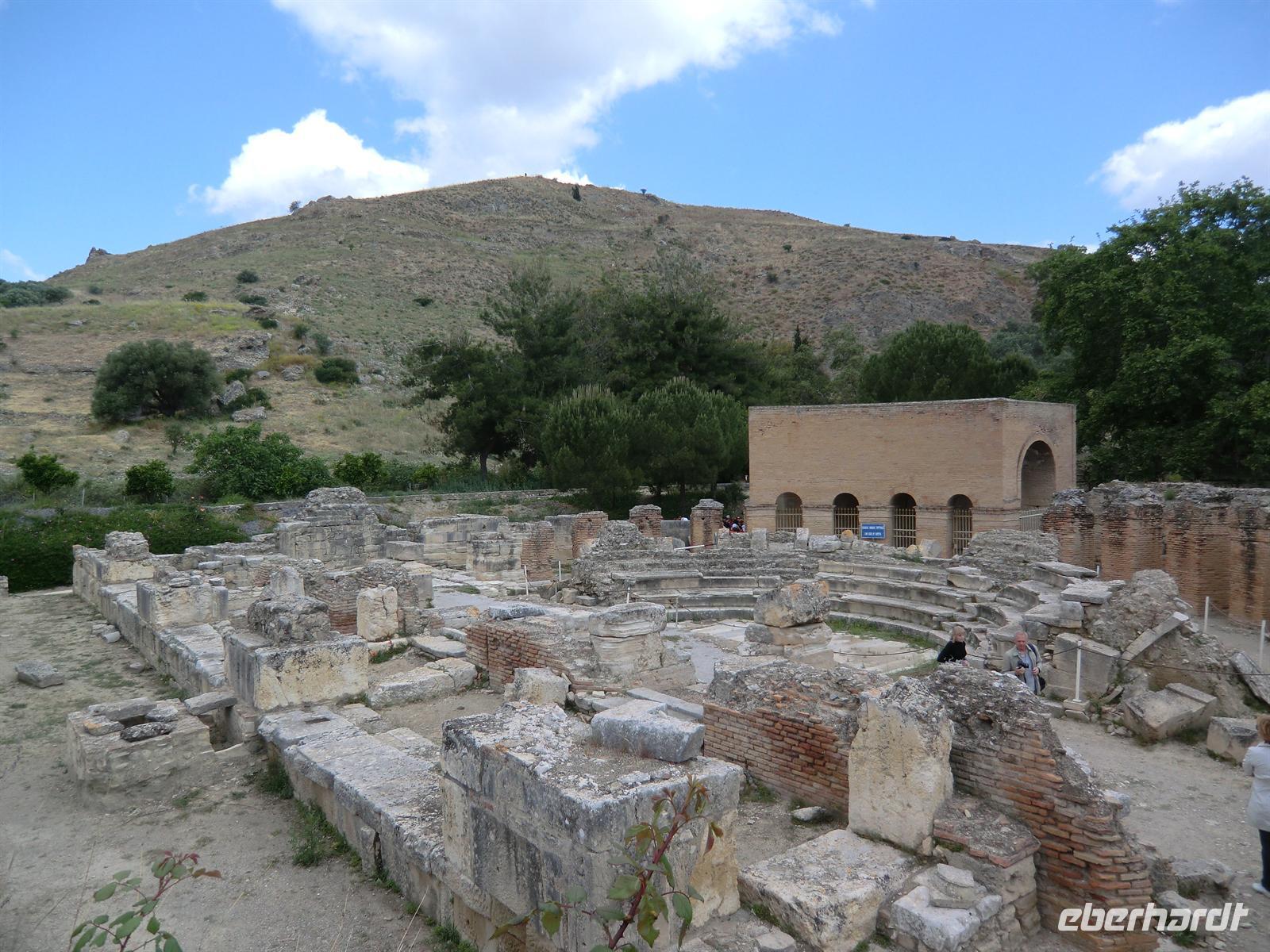 10:15 Uhr erreichten wir die Ausgrabungsstätte Gortys. Am Eingang wurden wir durch herrliche Rosensträucher und Mittagsblumen begrüßt. In der alten Kapelle begleitete ein fröhliches Gezwitscher der nistenden Vögel die Ausführungen unserer örtlichen Reiseleiterin Rena.