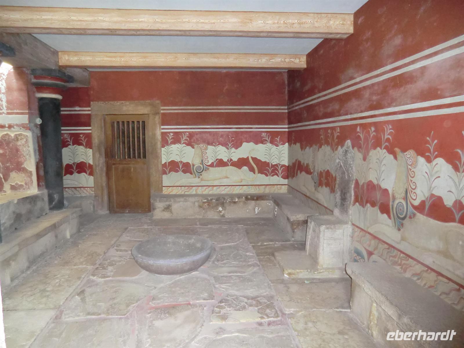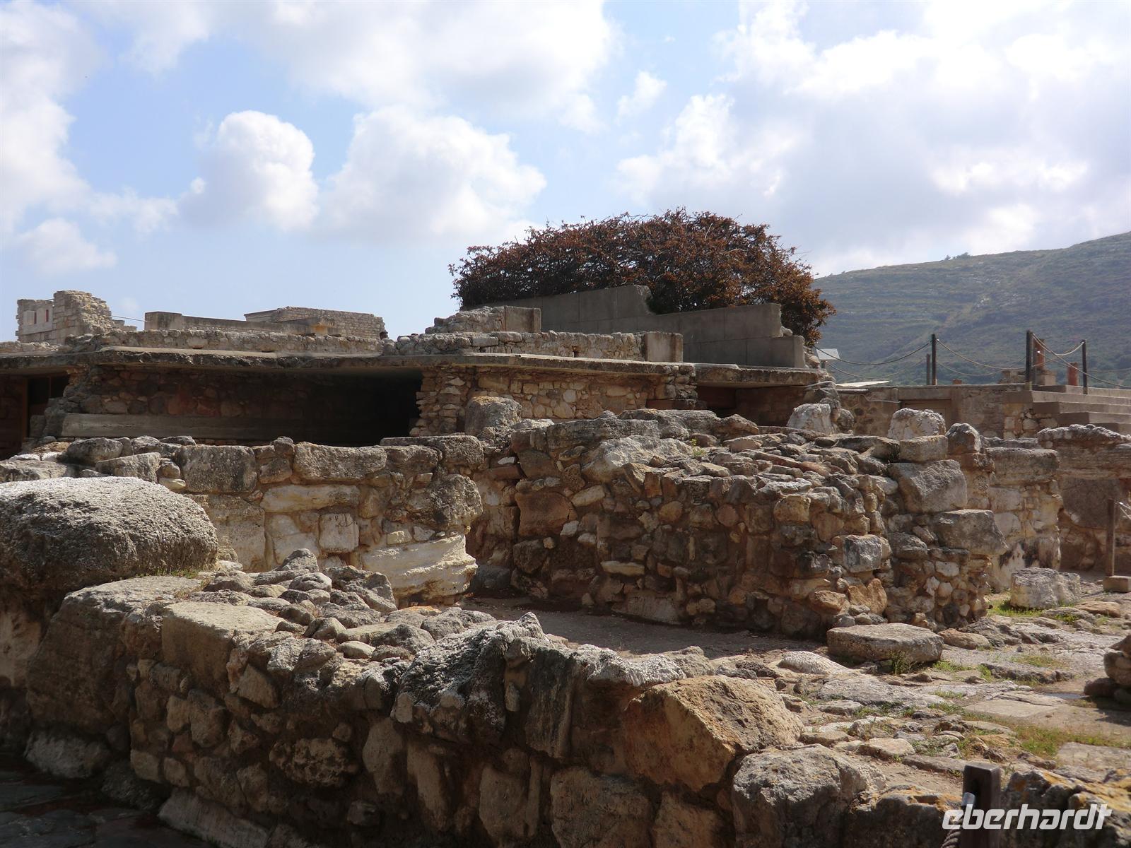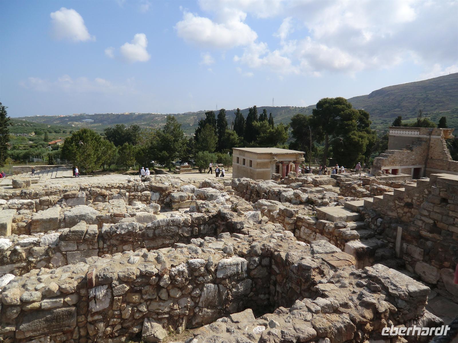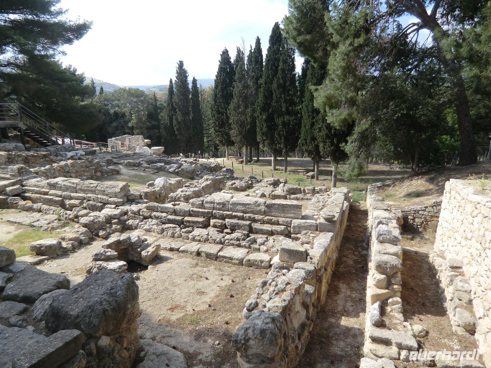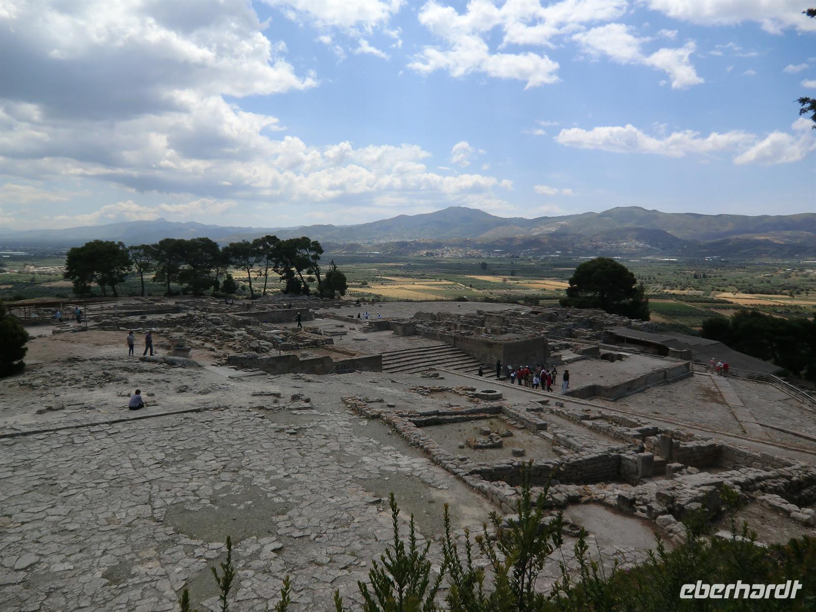 Im Anschluss führte uns die Fahrt nach Festos. Neben Malia und Knossos ist diese Palastanlage die dritte der Paläste minoischer Zeit. Die drei Herrscher dieser Paläste waren die Söhne der schönen Europa, die aus einer Nacht mit dem Zeus hervorgingen. Zeus, der die schöne Europa in Form eines weißen Stiers aus Lybien nach Kreta holte, verließ die Dame seiner Begierde nach dieser Nacht unter der sagenumwobenen Platane.