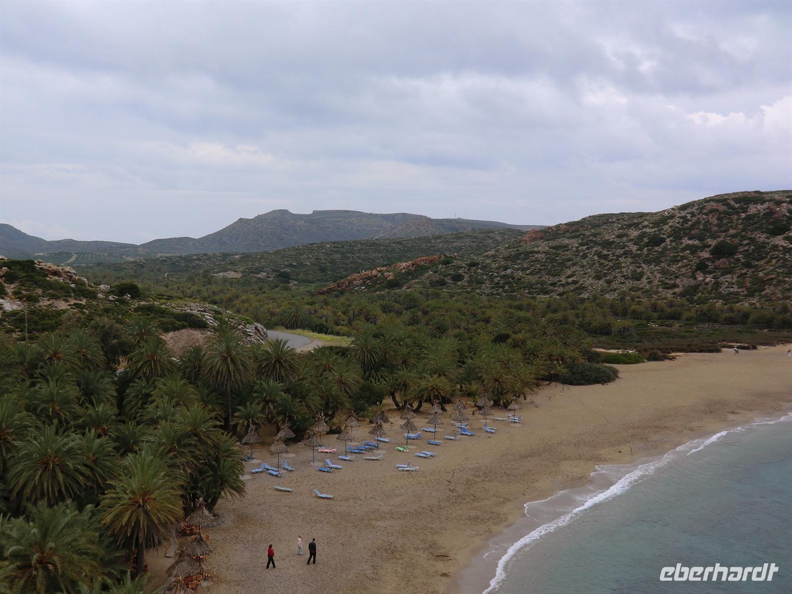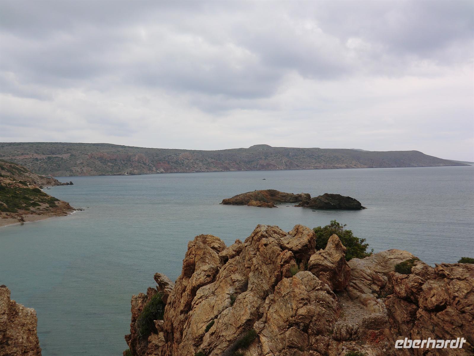 atemberaubend schönen Blick auf den Strand von Vai und die traumhaft gelegene Nachbarbucht.
