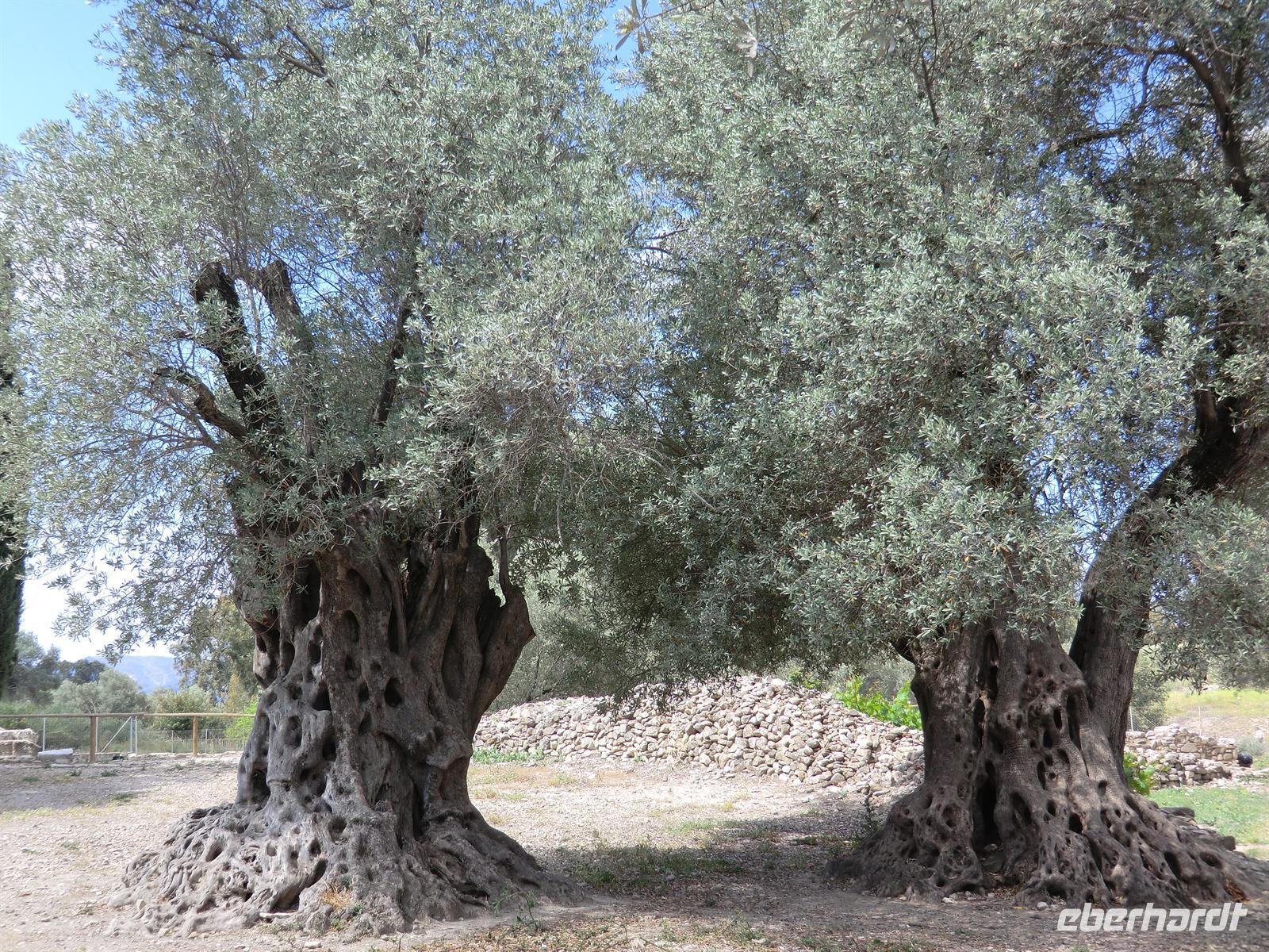 Weiter führte uns die Fahrt entlang großflächiger Olivenhaine, deren Früchte nach etwa 5 Jahren Reifezeit geerntet werden. Die Bäume können bis zu 6.000 Jahre alt werden, wobei deren Stämme sich wunderbar formen und zu Fantasiegebilden gestalten. Der Blick auf die Messara-Ebene war gigantisch. Die herrlich klare Luft bot eine wunderbare Weitsicht auf die umliegenden Gebirge. Hauptanbauprodukte in der Ebene sind neben den Oliven Getreide, Gemüse und Nelken.