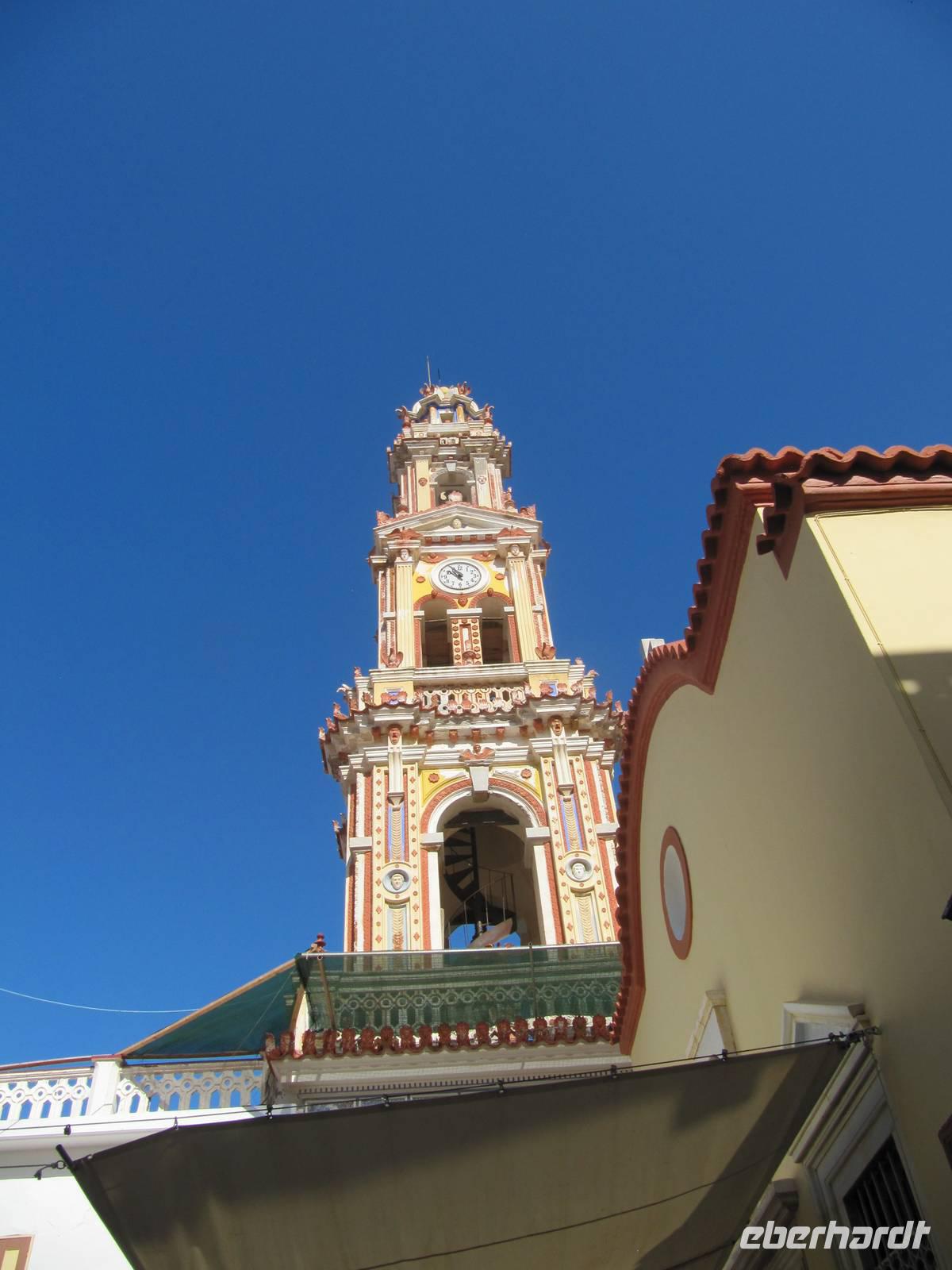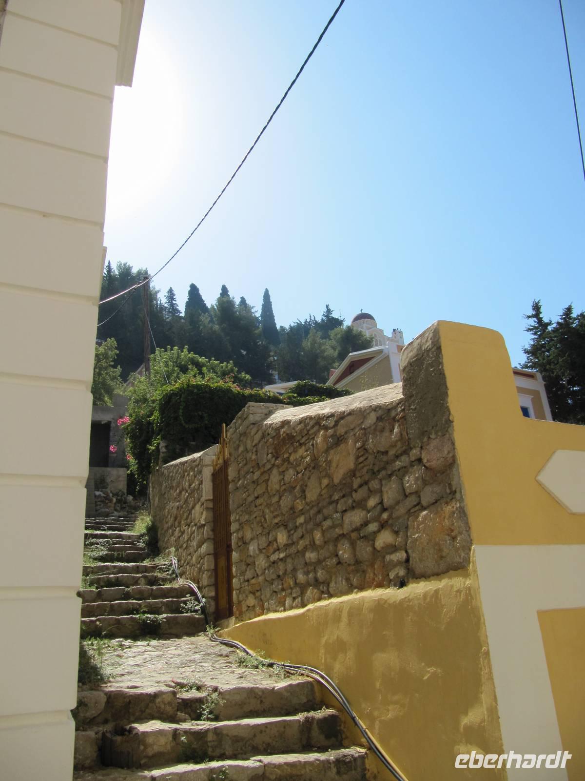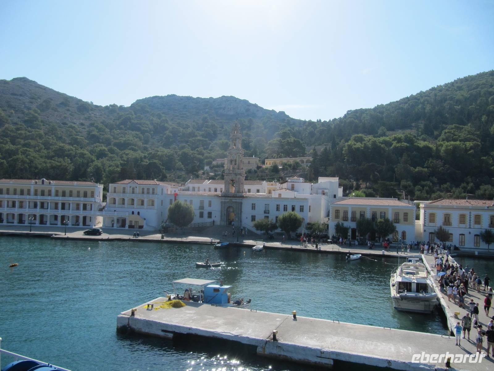 Wir trafen uns früh 7.45 Uhr in der Lobby und wurden mit drei Taxen zum Hafen von Rhodos Stadt gefahren. Dort wartete schon das Fährschiff nach Symi auf uns, die Insel der Schwammtaucher. An Bord suchte sich jeder eine geeignete Ecke für die Schifffahrt. Das Schiff fuhr los und wir genossen den Blick vom Meer auf Rhodos, den Hafen, auf Buchten und kleine inseln und den auf die türkische Küste. Leider sahen wir während der Fahrt keine Delfine. Unsere erste Station war das Kloster Panormitis. Es ist dem Erzengel Michael gewidmet und jeder konnte auf eigene Faust den kleinen bedeutenden Wallfahrtsort für die Griechen besichtigen. Nach einstündigem Aufenthalt ging unsere Schiffsfahrt weiter zum Hauptort der Insel, nach Simi. Es war ein wahres Erlenis, als sich Bucht der Inselhauptstadt mit ihren bunten Kapitänshäusern eröffnete und wir in den Hafen einfuhren. Wir verließen das Schiff, um erneut an Land zu gehen. Die Zeit bis zum Ablegen stand zur freien Verfügung und so erkundeten wir die Stadt auf eigene Faust. Einige stiegen bis zur Oberstadt und genossen einen herrlichen Blick auf den Hafen, andere ginge bis zu den drei Kirchen, die aber leider geschlossen waren und wiederrum andere schlenderten durch den gemütöichen Hafen, der zu den schönsten der ganzen Ägäis zählt. Am Nachmittag trafen wir uns wieder am Schiff und traten die Heimreise nach Rhodos an.