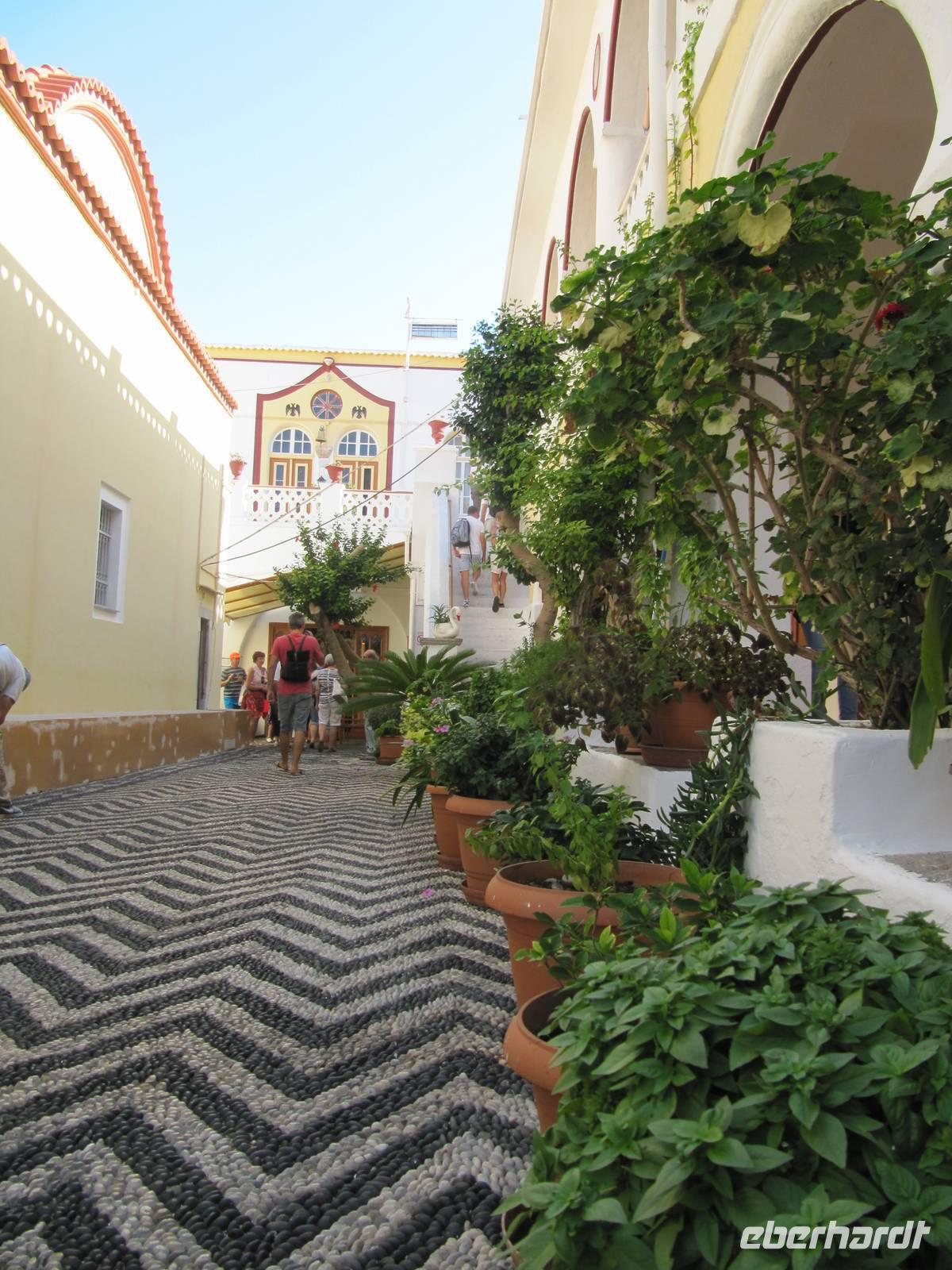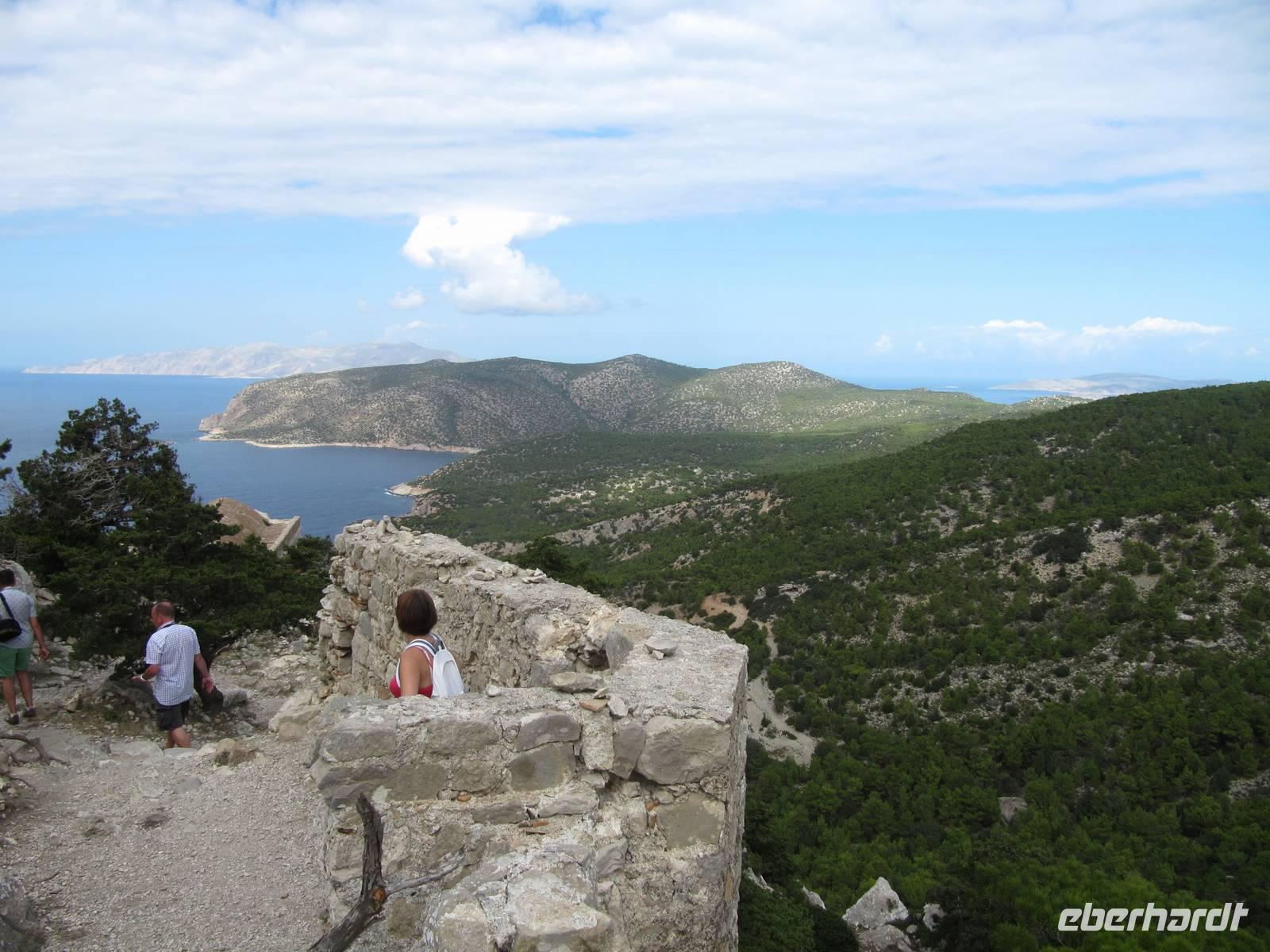 Nach dem gemeinsamen Frühstück brachen wir um 9 Uhr auf nach Filerimos. Den Fahrtweg im Bus versüßte uns Maria mit ihren interessanten Erläuterungen der griechischen Lebensweise, Traditionen und vielem mehr. In Filerimos angekommen begrüßten uns Pfauen mit lauten Schreien. Gemeinsam gingen wir hinauf zur antiken Kirche und besichtigten es. Im Anschluss hatten wir Zeit, auf eigene Faust das Gelände zu erkunden und hatten vom höchsten Punkt einen herrlichen Blick auf die See. Maria erwartete uns bereits mit einem Kräuterlikör der im Kloster lebenden Mönche, den wir sehr genossen. Mittags fuhren wir zum Tal der Schmetterlinge, in dem man in den Sommermonaten dutzende Schmetterlinge zu besichtigen sind. Herrlich dieses grüne Tal! Leider war zu unserer Reisezeit die Zeit der Schmetterlinge vorüber. Einige von uns liefen bis zum obersten Punkt über Stufen und Treppen bei plätschernden Bächen und sahen dabei doch einen einzigen Schmetterling. Der andere Teil der Gruppe beschritt den unteren Weg des Tales oder genoss einen Kaffee. Nachdem wir das Tal erkundet hatten, trafen wir uns am Eingang und bedankten uns bei Maria mit einem "Jamas" und fuhren weiter nach Kamiros zu den antiken Ausgrabungsstätten, die wir gemeinsam durchschritten und die Überreste der Stadt bewunderten. Maria erklärte uns, wie die Menschen in der Antike lebten, welche Gebäude die Stadt beinhaltete und vieles mehr. Einen herrlichen Abschluss des Programms fanden wir bei einem frisch gepressten Orangensaft. Wir fuhren zurück in unser Hotel und nun hieß es Abschied nehmen von Maria. Wir genossen die letzten Stunden mit einem Sprung ins Meer oder bereiteten uns bereits auf die Heimreise vor. Eine wunderschöne Woche voller Emotionen und Eindrücke neigt sich dem Ende zu. Wie schnell die Zeit vergeht. Gern würden wir noch bleiben ...