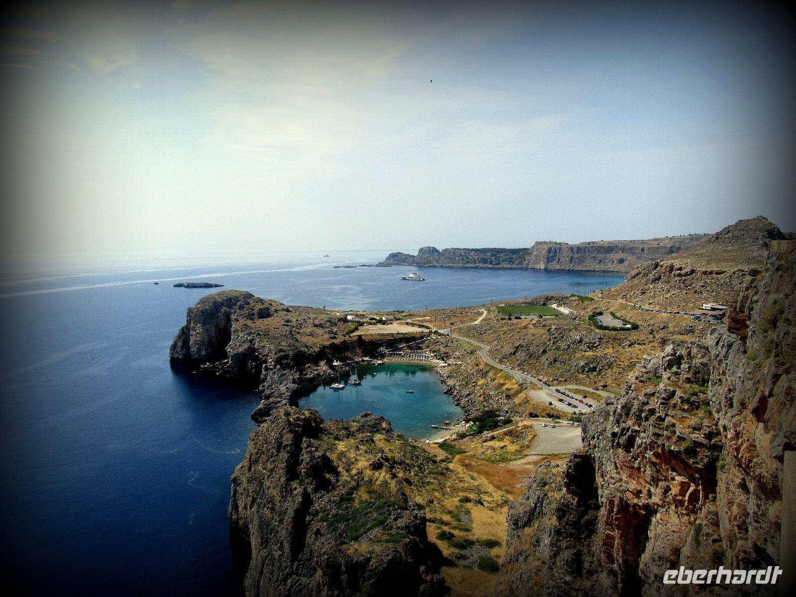 Lindos ist bekannt für die wunderschöne Altstadt mit den Kapitänshäusern, den verwinkelten Gässchen und der Akropolis hoch oben über der Stadt. Die Akropolis ist nach der Akropolis von Athen die am meisten besuchte in Griechenland. Von oben hat man einen wunderbaren Blick zum schönen Sandstrand und früheren Handelshafen und zur Apostel Paulus Bucht, sowie über Lindos mit den vielen weiß getünchten Häusern.