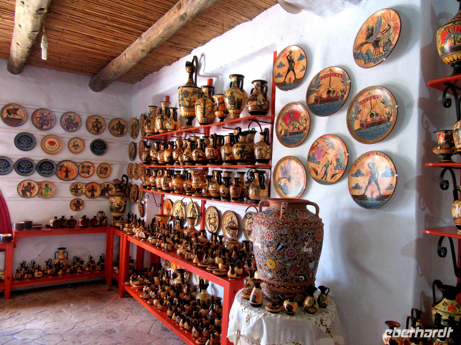Gegen Mittag geht unsere Fahrt weiter nach Archangelos, wo wir eine Töpferei besichtigen. Hier erhält dieses Handwerk noch Anerkennung, welches leider durch den Export günstiger Produkte aus China in den Hintergrund geraten ist.
