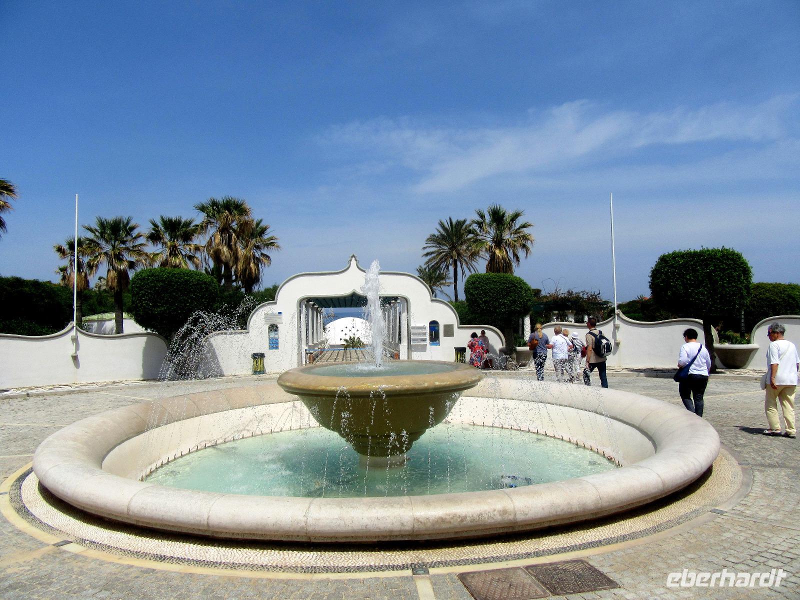Vorbei am Tsambika Beach, dem längsten und populärsten Strand der Insel, an Afandou, genannt das unsichtbare Dorf mit einer recht jungen Touristenregion und der Anthony Quinn Bucht, wo Ende der 1960ger Jahre ein bekannter Film gedreht wurde ist unser nächstes Ziel die Kalithea Therme. Kalithea ist schon seit der Antike bekannt für seine Thermen. Die schwefelhaltigen Quellen, bekannt auch als die roten Quellen, hatten eine positive Wirkung auf Hauterkrankungen, Rheuma, Arthritis und weitere Krankheiten. Mittlerweile ist die Quelle versiegt, allerdings können wir das restaurierte Gebäude im orientalischen Stil besichtigen. Heute lädt die Therme zum Relaxen an der kleinen Badebucht oder auch zu kulinarischen Spezialitäten in den schönen Restaurants ein.