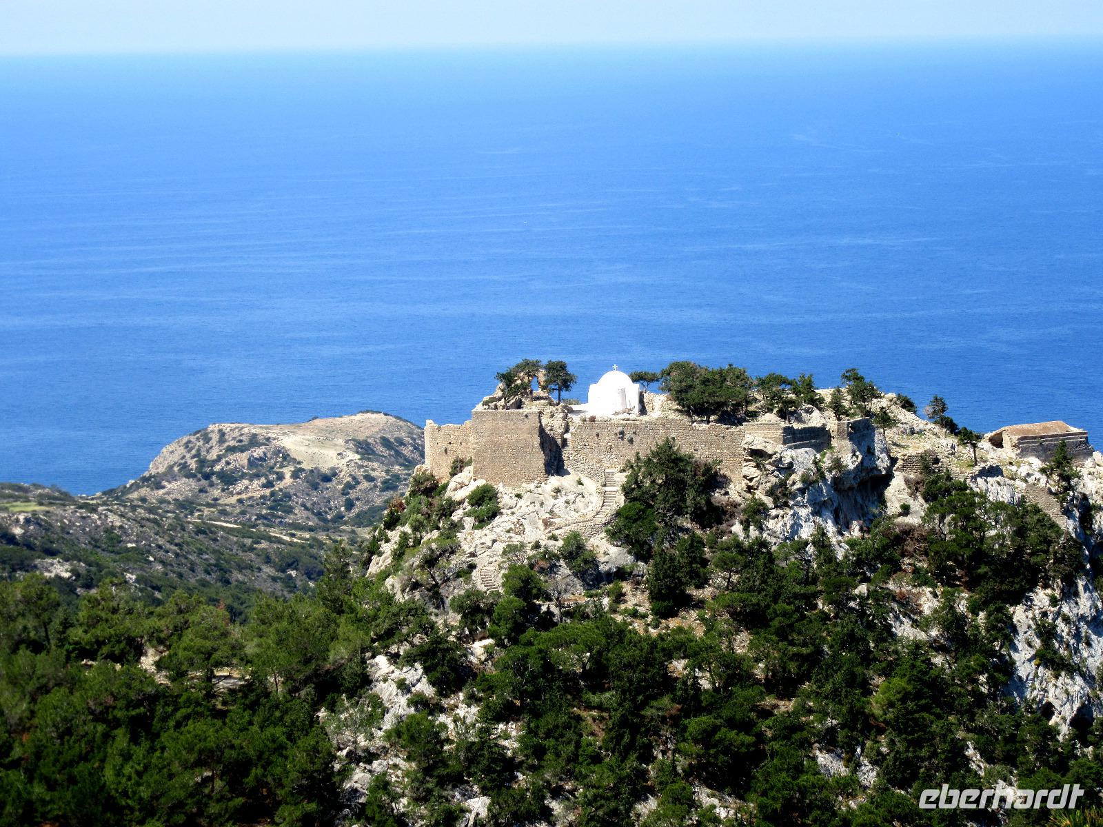 Weiter geht unsere Fahrt nach Monolithos, wo wir von der Hauptstraße aus einen schönen Blick auf die Festung haben. Es ist eine der besterhaltenen Festungen aus der byzantinischen Zeit, die nach der Zerstörung von den Johannitern wieder aufgebaut wurde.