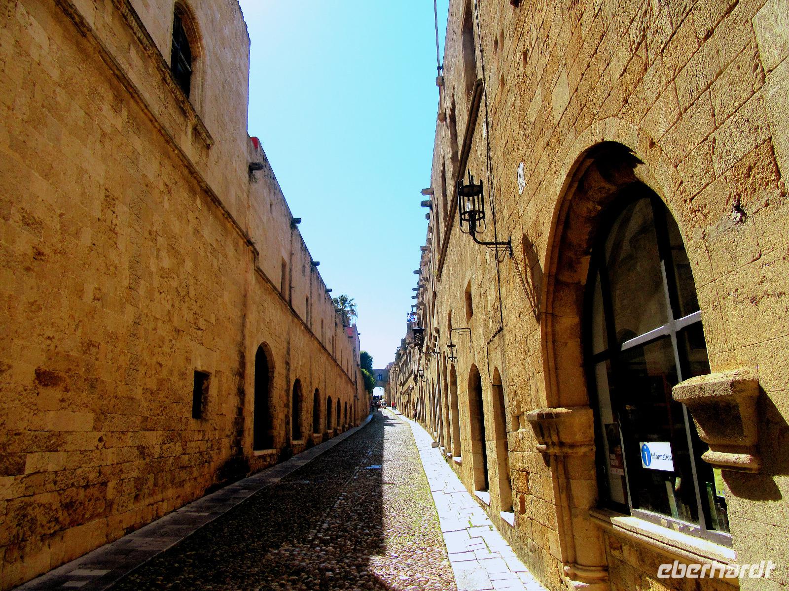 Über die bekannte Ritterstraße gelangen wir in die Altstadt, wo wir noch etwas Freizeit genießen können. Uns erwarten interessante griechische Tavernen oder der eine oder andere nutzt die Zeit um schon die ersten Mitbringsel für Daheimgebliebene zu erwerben.
