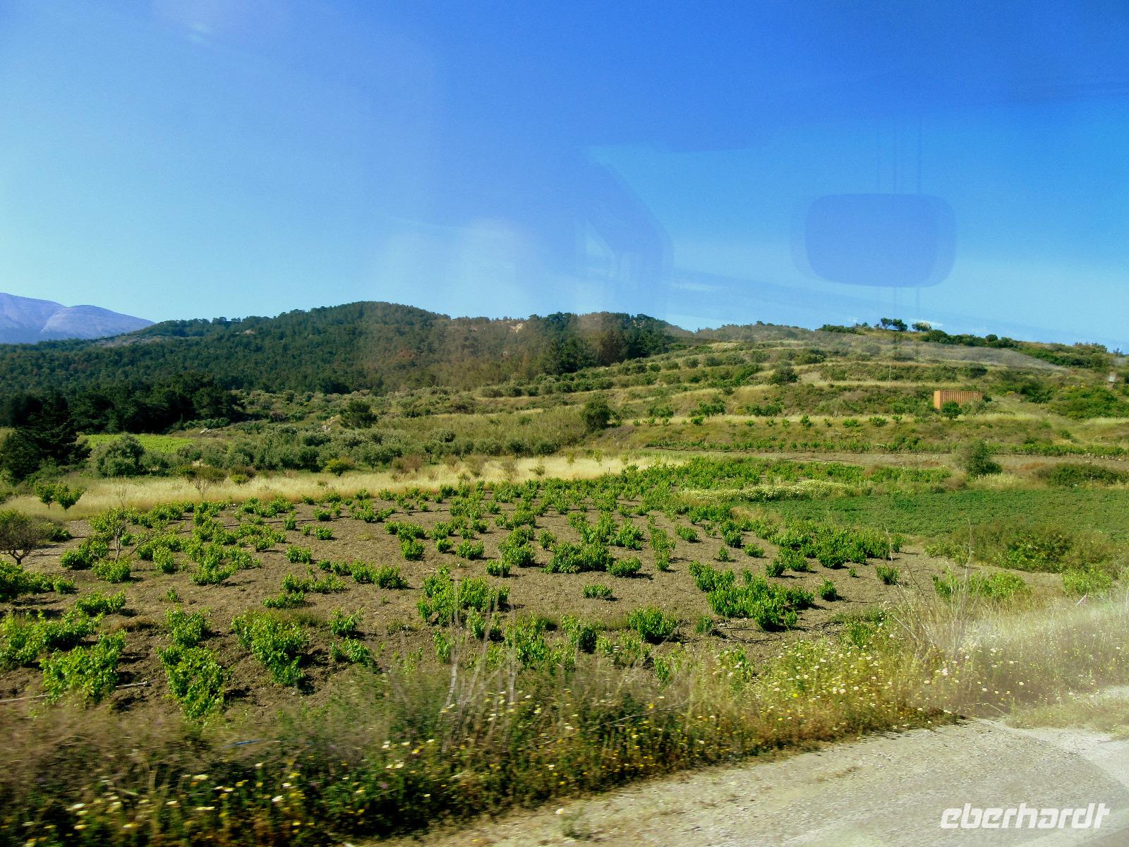 Das nächste Ziel ist das Weindorf Embona, wo wir nach einer zünftigen Weinverkostung in der Taverne Savvas unser Mittagessen einnehmen. Serviert wird uns griechische Küche mit Salat, Kicherebsenfrikadelle, Lammfleisch und einheimischen Obst. Ein griechischer Wein als Beilage durfte natürlich nicht fehlen.