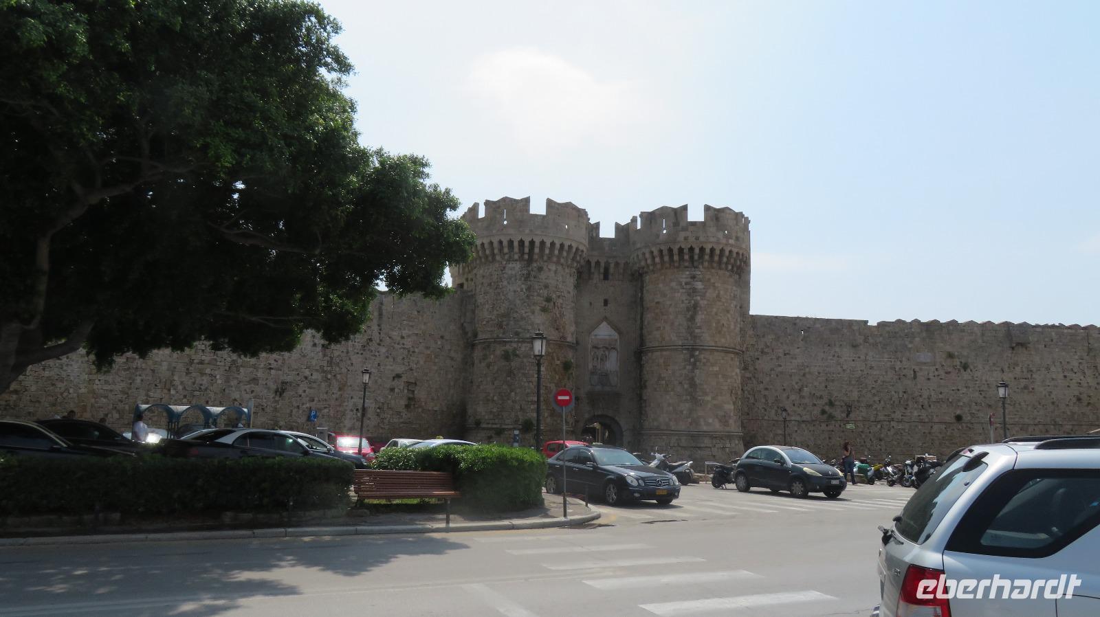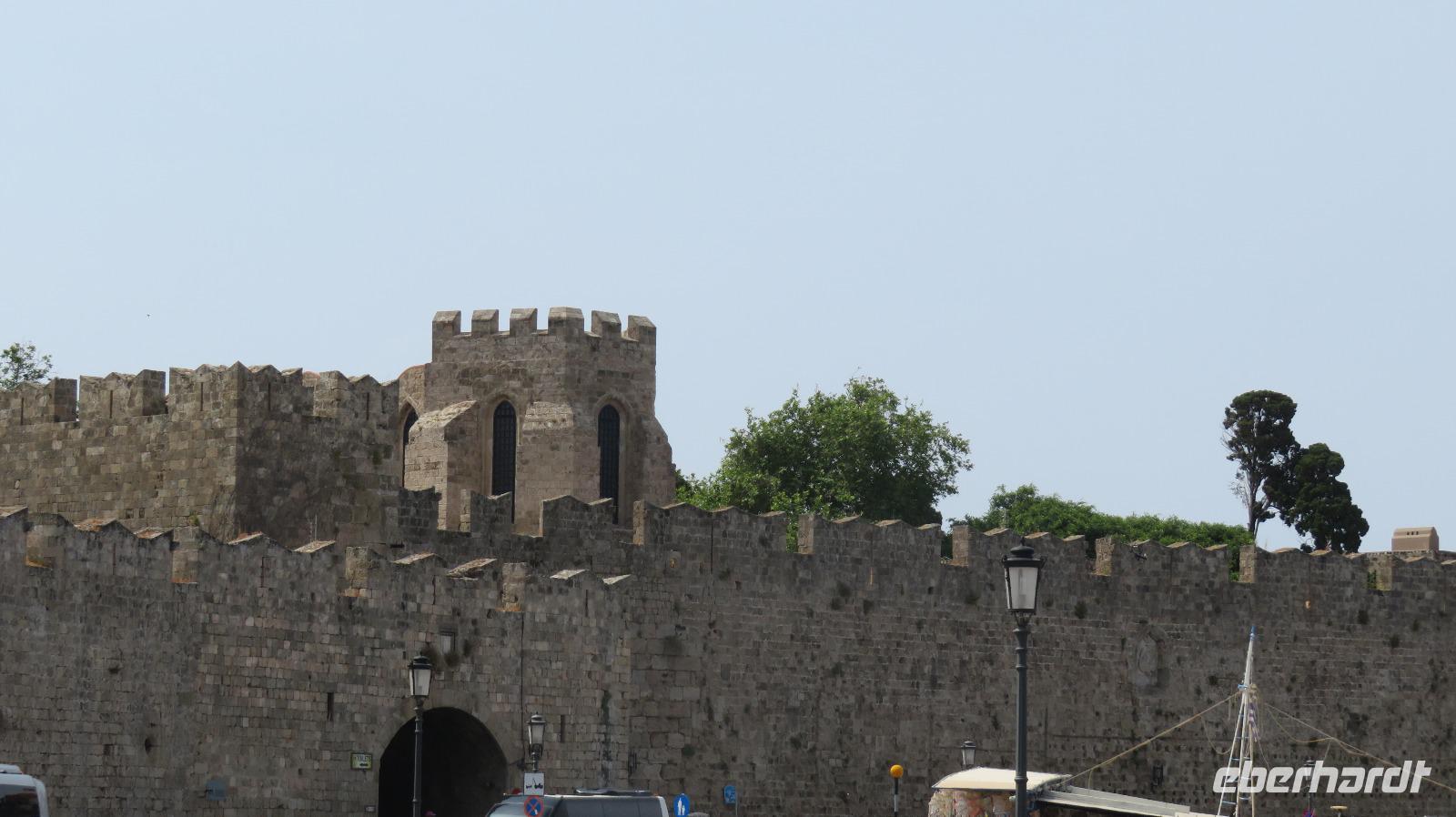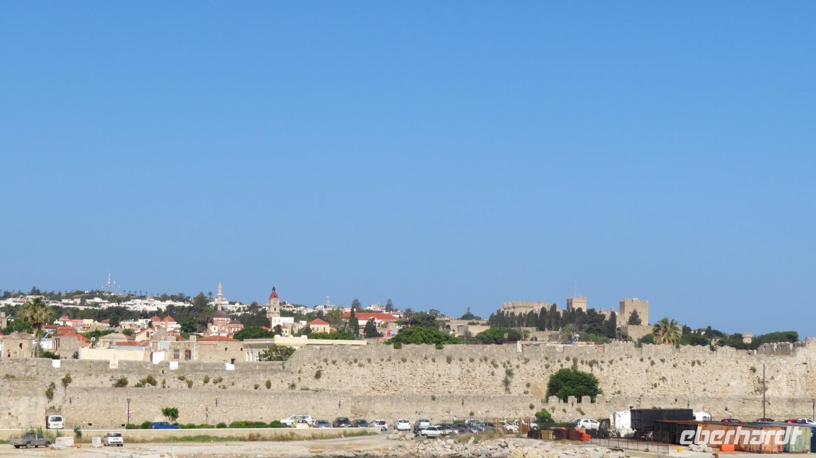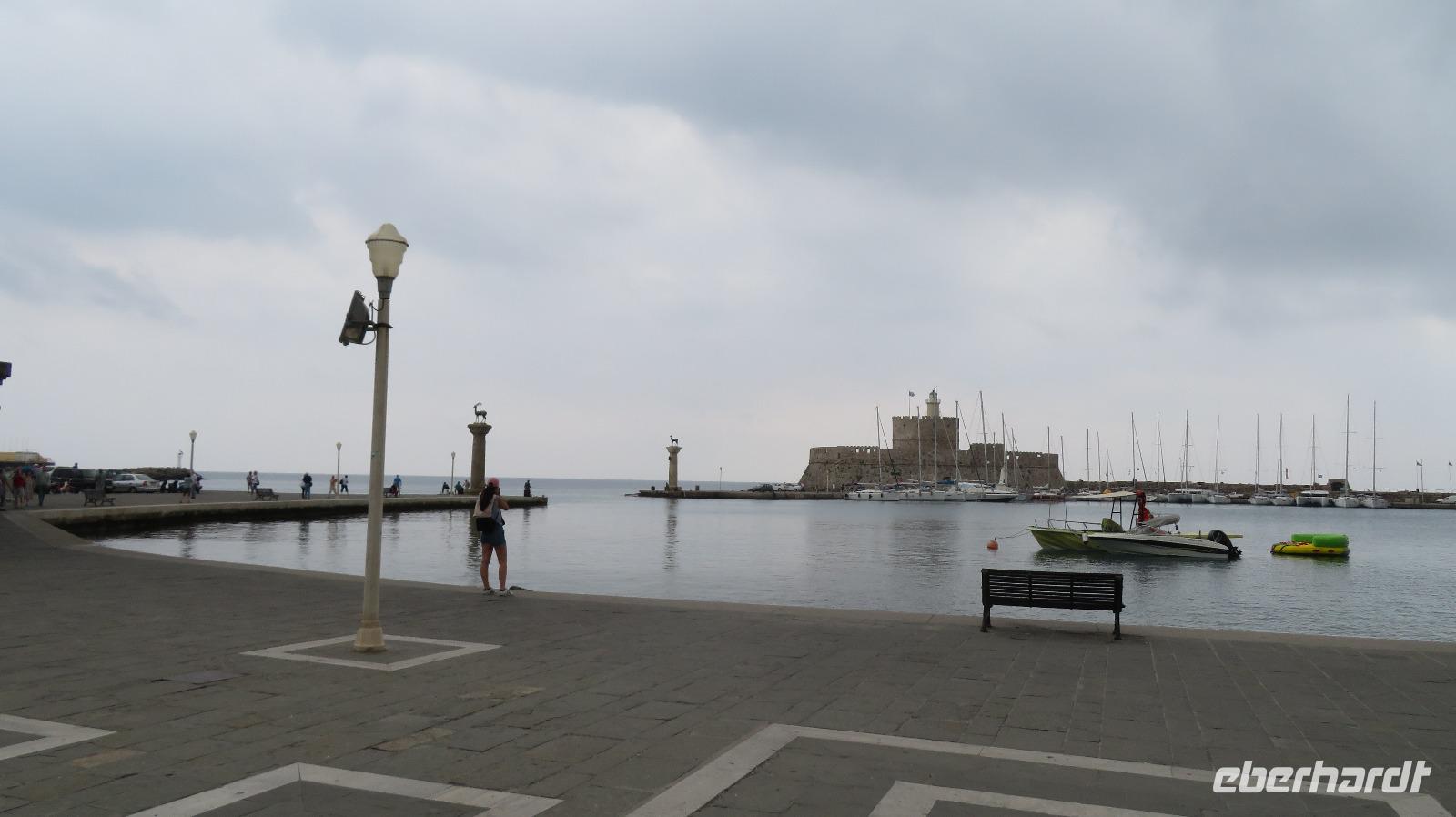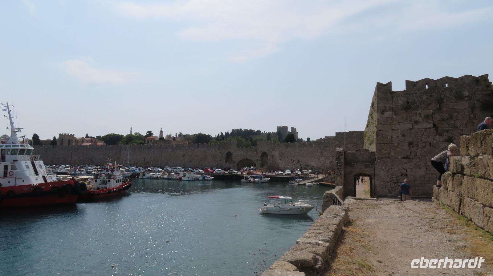 Nach einem guten Frühstück starteten wir um 9 Uhr mit unserem Reiseleiter nach Rhodos. Entlang der großen Hafenmauer gelangten wir zum Hafen Mandraki, wo wir unseren ersten Stopp machten. Von hier konnte man den Hirsch und die Hirschkuh an der Hafeneinfahrt gut sehen. An dieser Stelle soll früher auch der Koloss von Rhodos gestanden haben, die riesige Bronzestatue des Sonnengottes Helios, die zu den 7 Weltwundern der Antike zählt. Aber ob das wirklich wahr ist, oder doch nur eine Sage, kann Niemand sagen. Dann ging es weiter zur Akropolis, wo wir die Säulen des Apollo Tempel sahen, leider ist nur noch wenig übrig von der großen Tempelanlage. Dafür ist das Stadion noch gut erhalten. Hier wurden schon olympische Spiele durchgeführt.