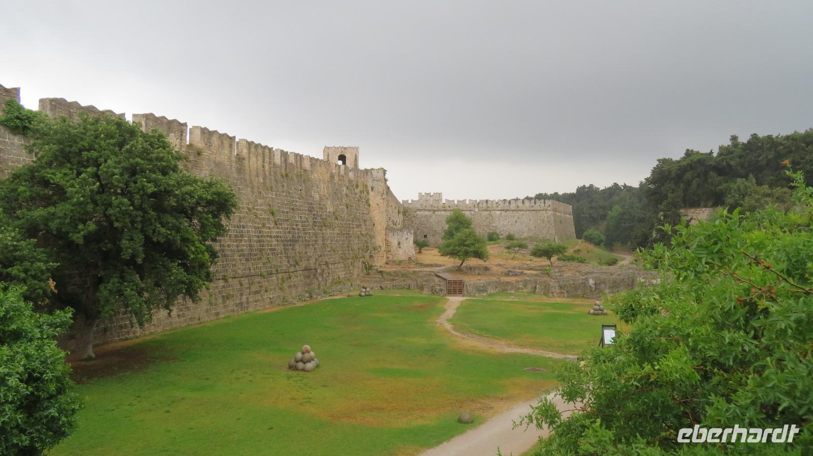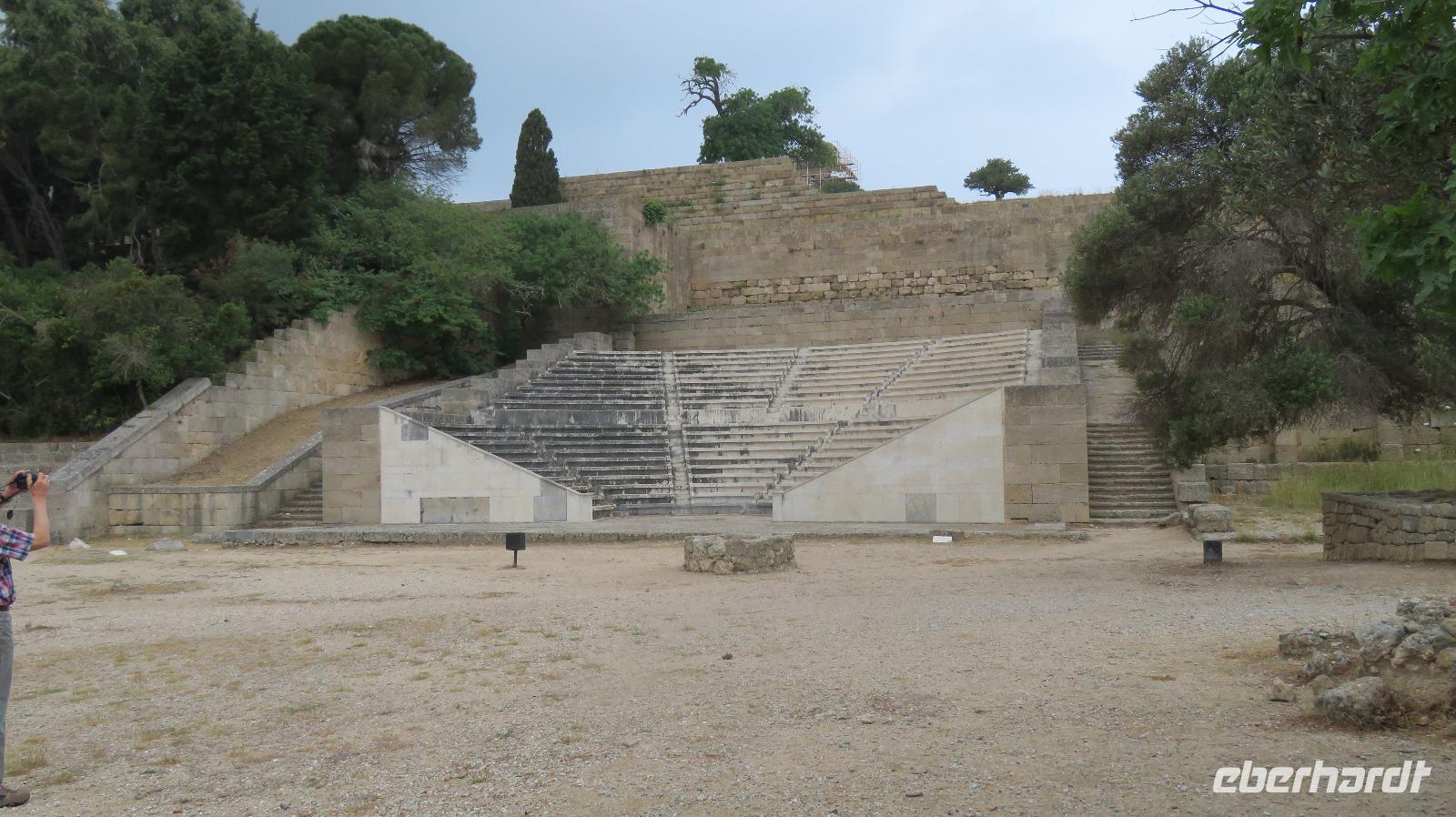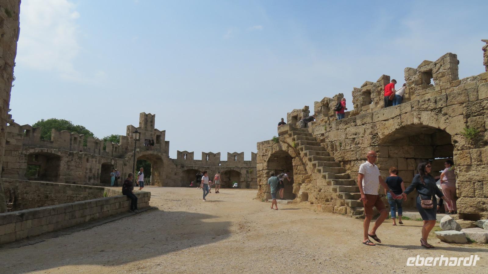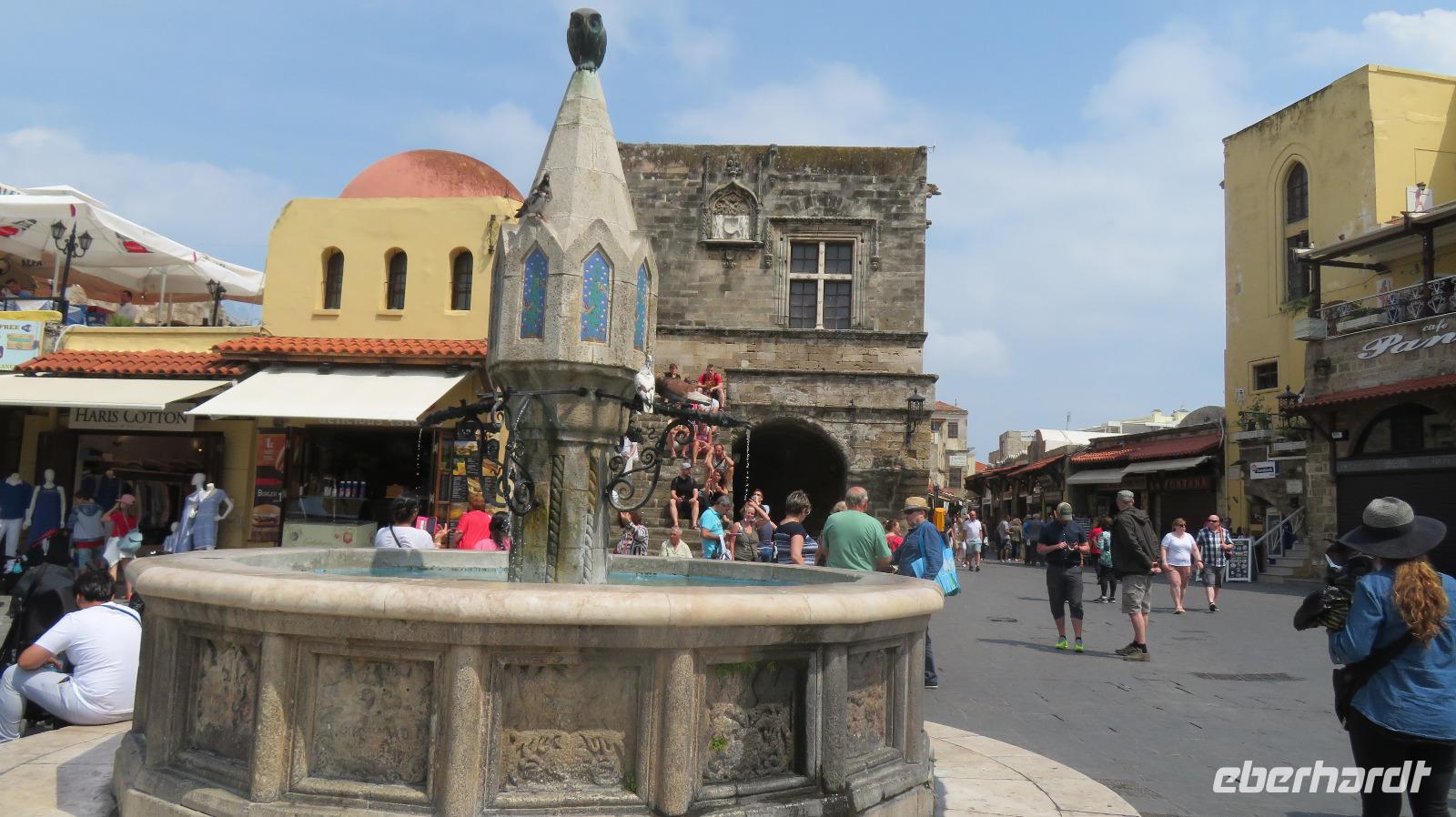 Nach einem guten Frühstück starteten wir um 9 Uhr mit unserem Reiseleiter nach Rhodos. Entlang der großen Hafenmauer gelangten wir zum Hafen Mandraki, wo wir unseren ersten Stopp machten. Von hier konnte man den Hirsch und die Hirschkuh an der Hafeneinfahrt gut sehen. An dieser Stelle soll früher auch der Koloss von Rhodos gestanden haben, die riesige Bronzestatue des Sonnengottes Helios, die zu den 7 Weltwundern der Antike zählt. Aber ob das wirklich wahr ist, oder doch nur eine Sage, kann Niemand sagen. Dann ging es weiter zur Akropolis, wo wir die Säulen des Apollo Tempel sahen, leider ist nur noch wenig übrig von der großen Tempelanlage. Dafür ist das Stadion noch gut erhalten. Hier wurden schon olympische Spiele durchgeführt.