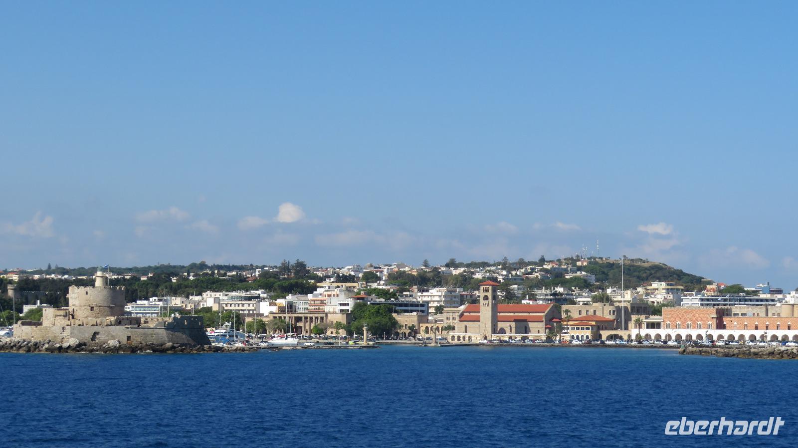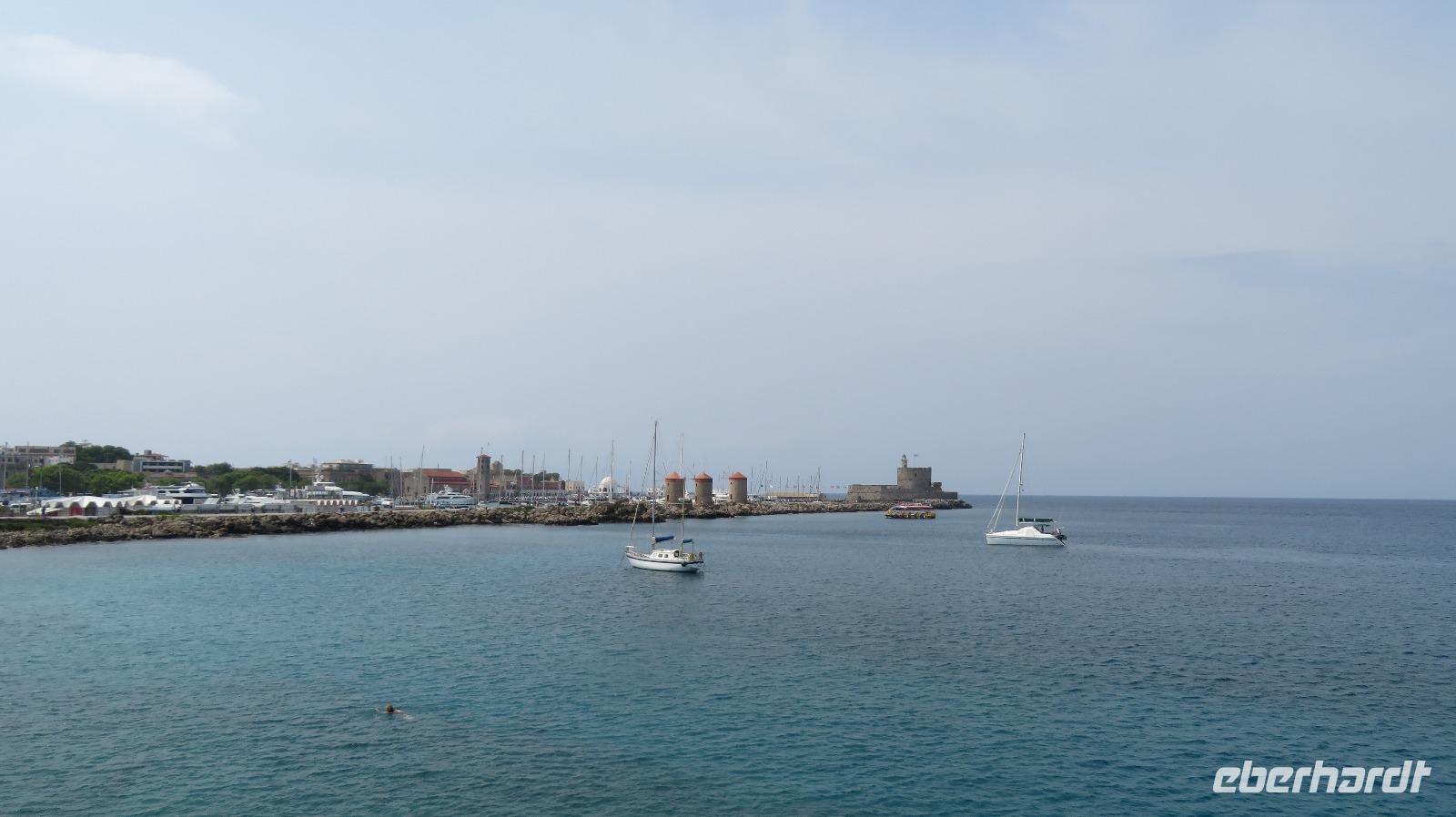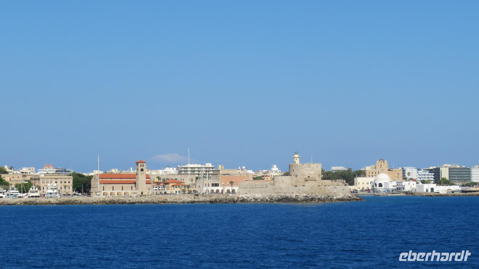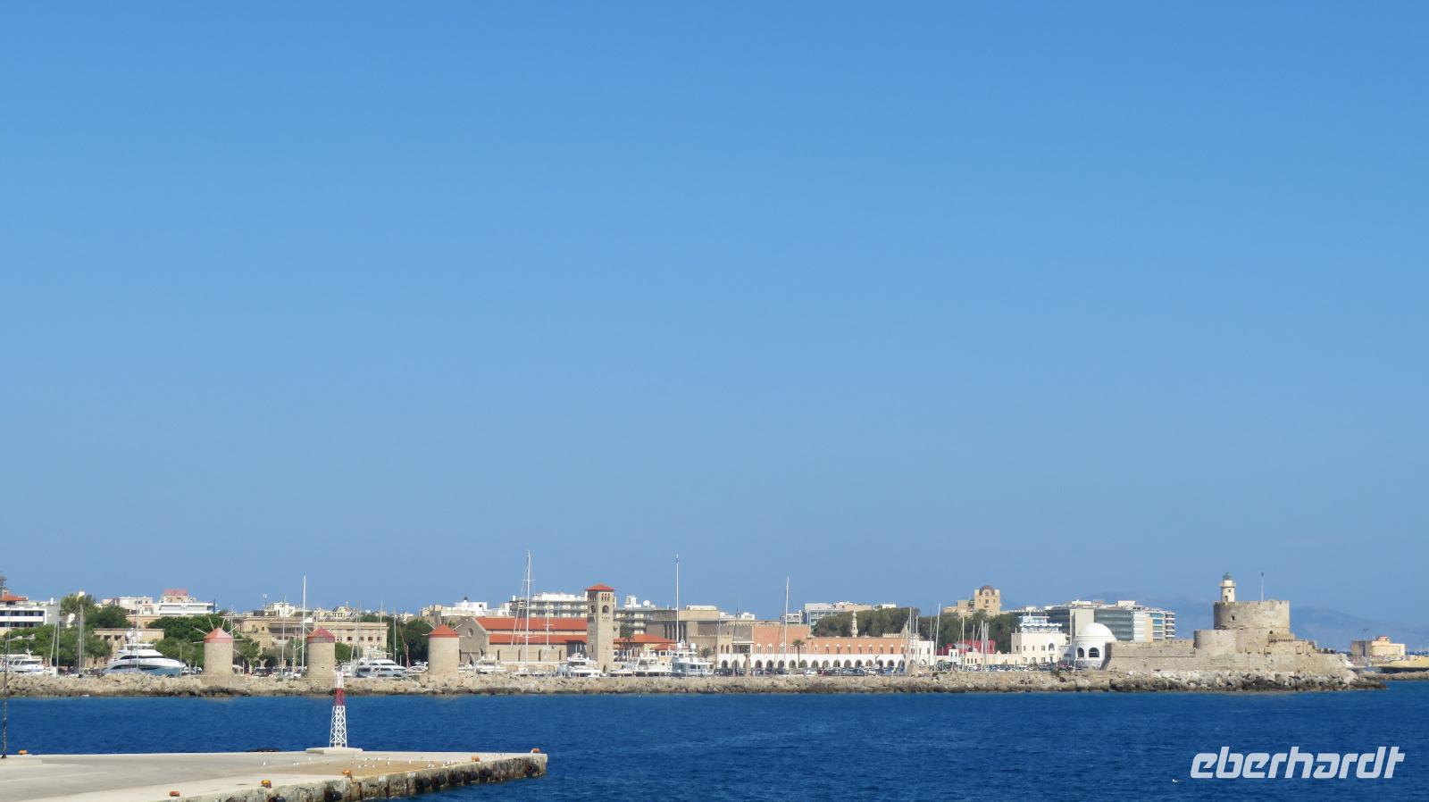 Pünktlich 16.30 Uhr legt die Fähre wieder ab und wir fahren zurück nach Rhodos. Am Hafen wartet bereits der Bus der uns zum Hotel bringt.