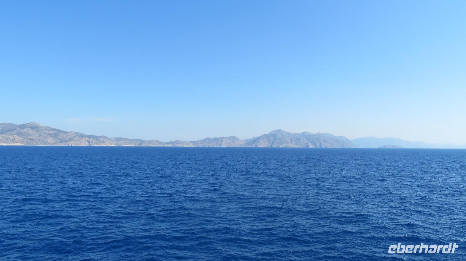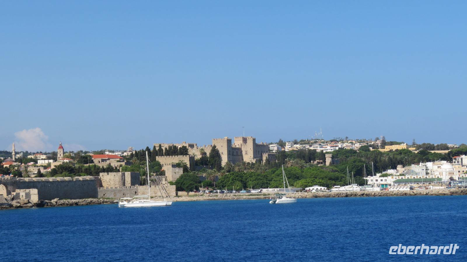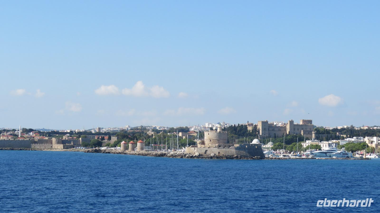 Pünktlich 16.30 Uhr legt die Fähre wieder ab und wir fahren zurück nach Rhodos. Am Hafen wartet bereits der Bus der uns zum Hotel bringt.
